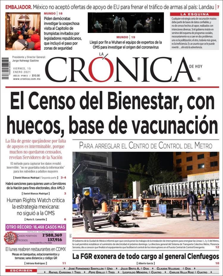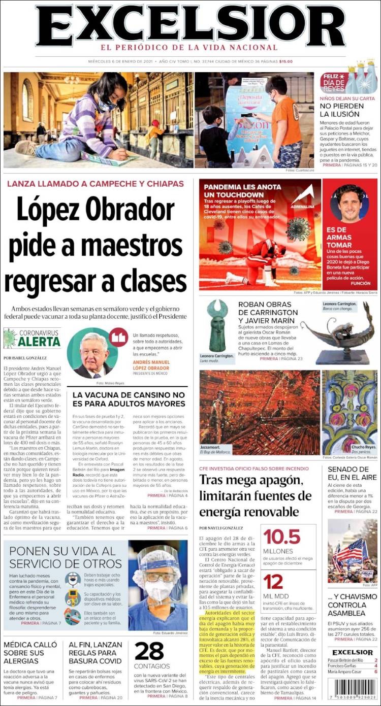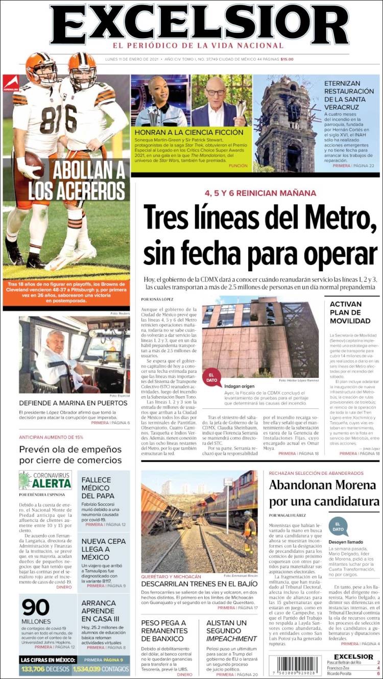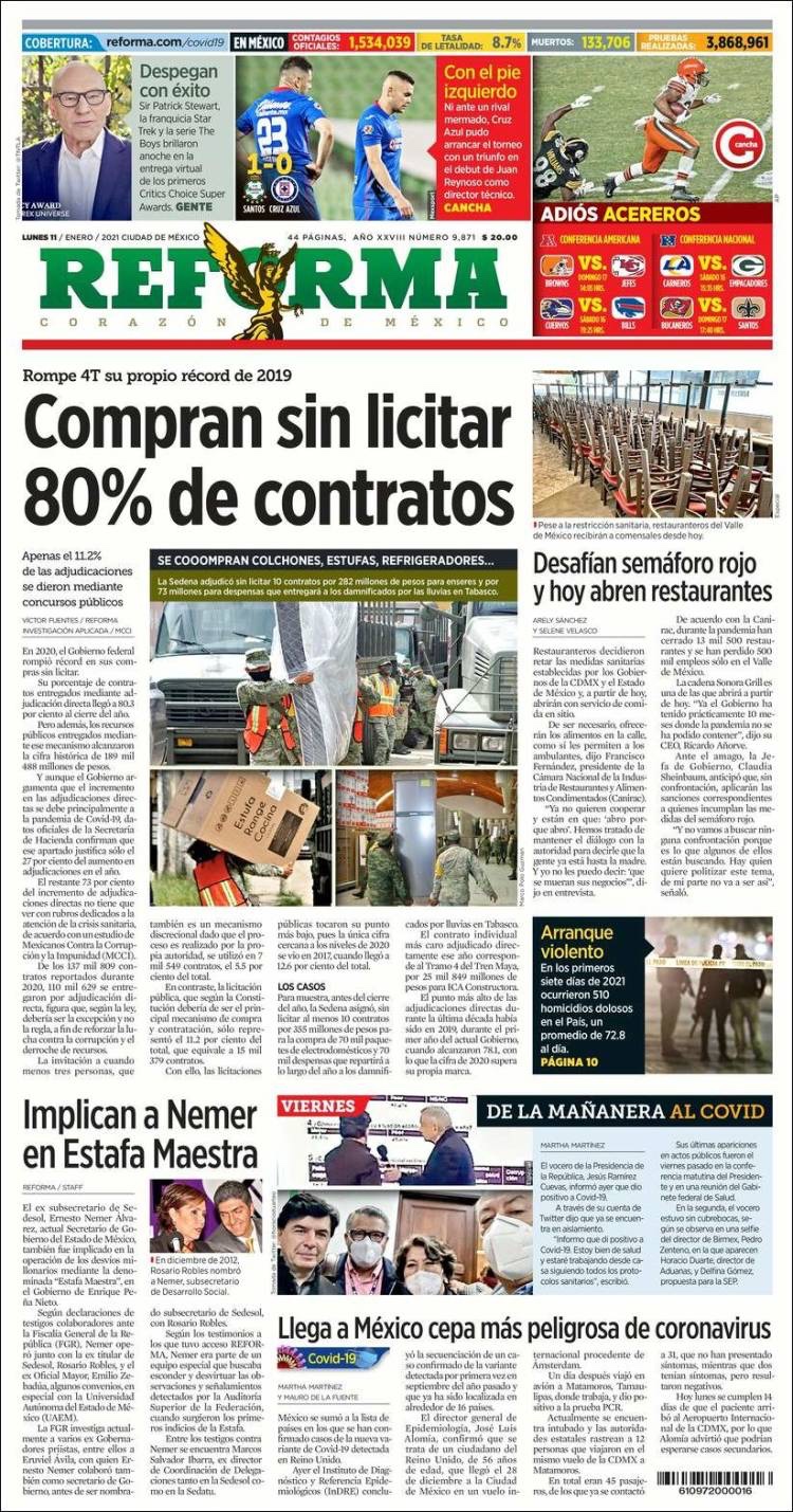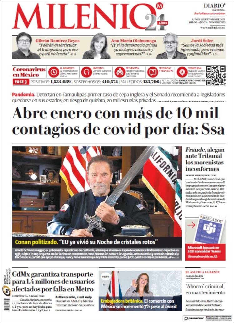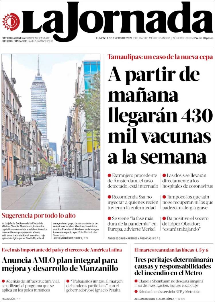 PRIMERAS PLANAS EN MEXICO Y EL MUNDO DEL 11 DE ENERO DE 2021