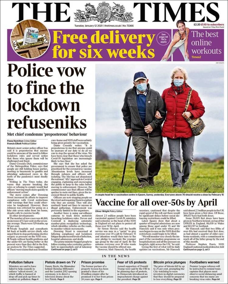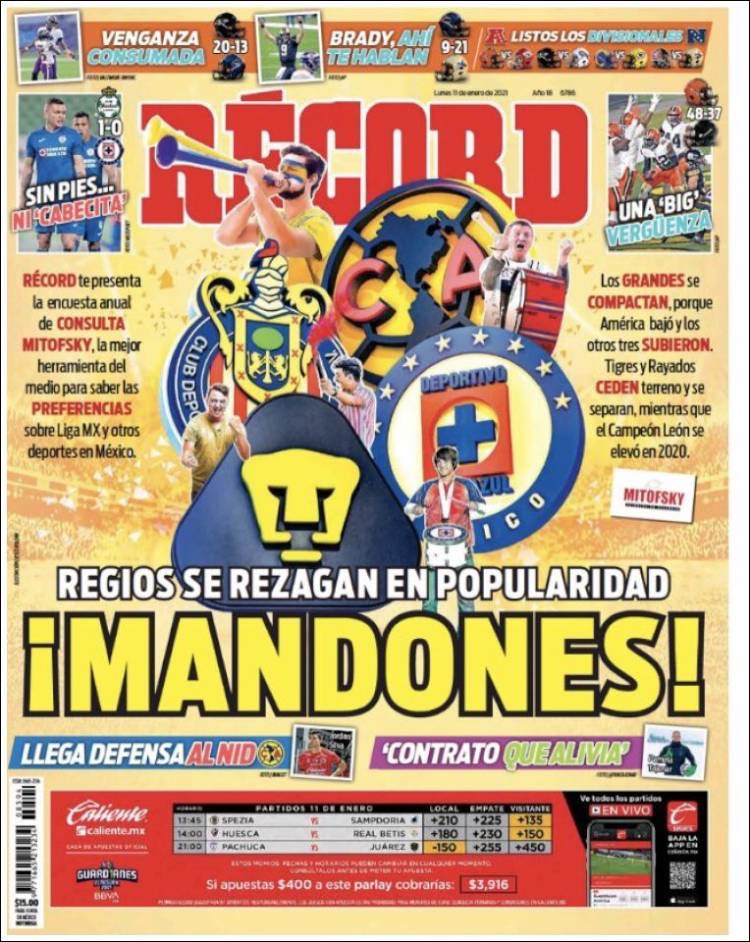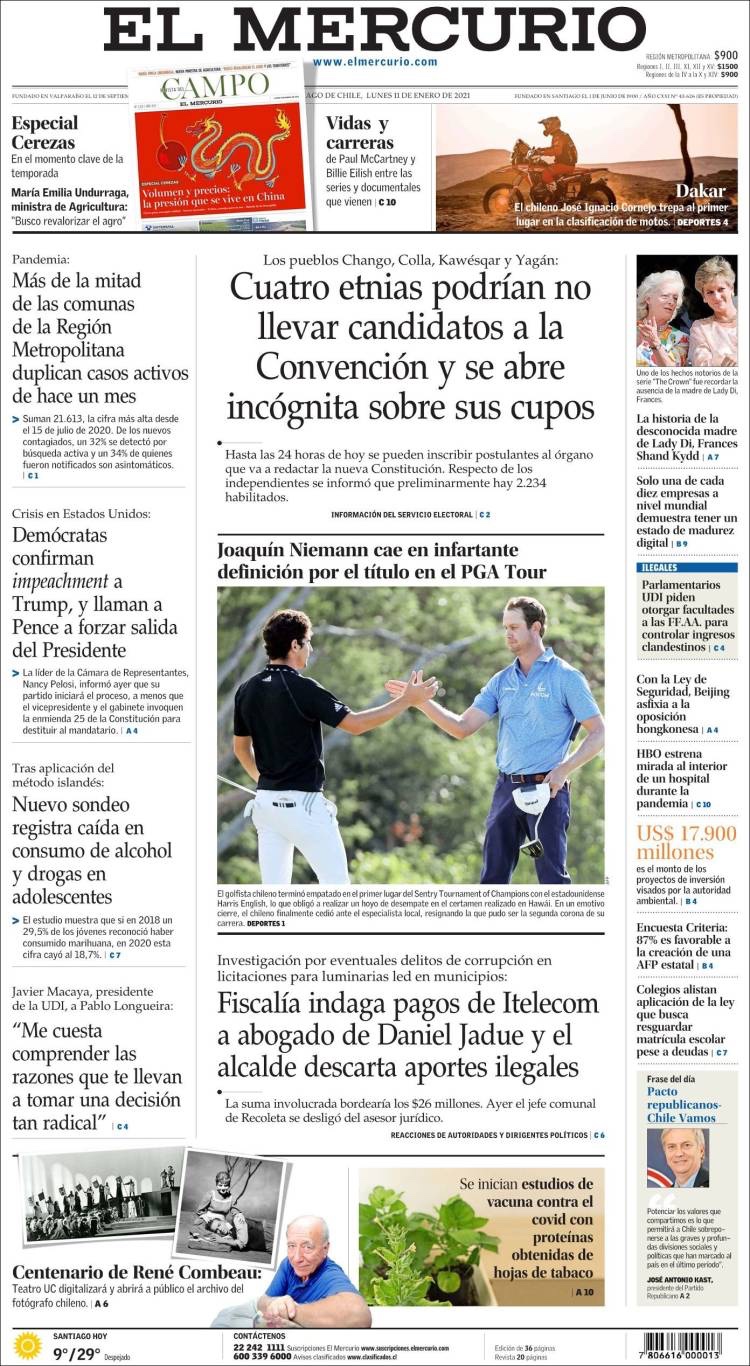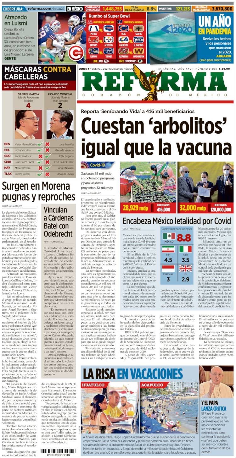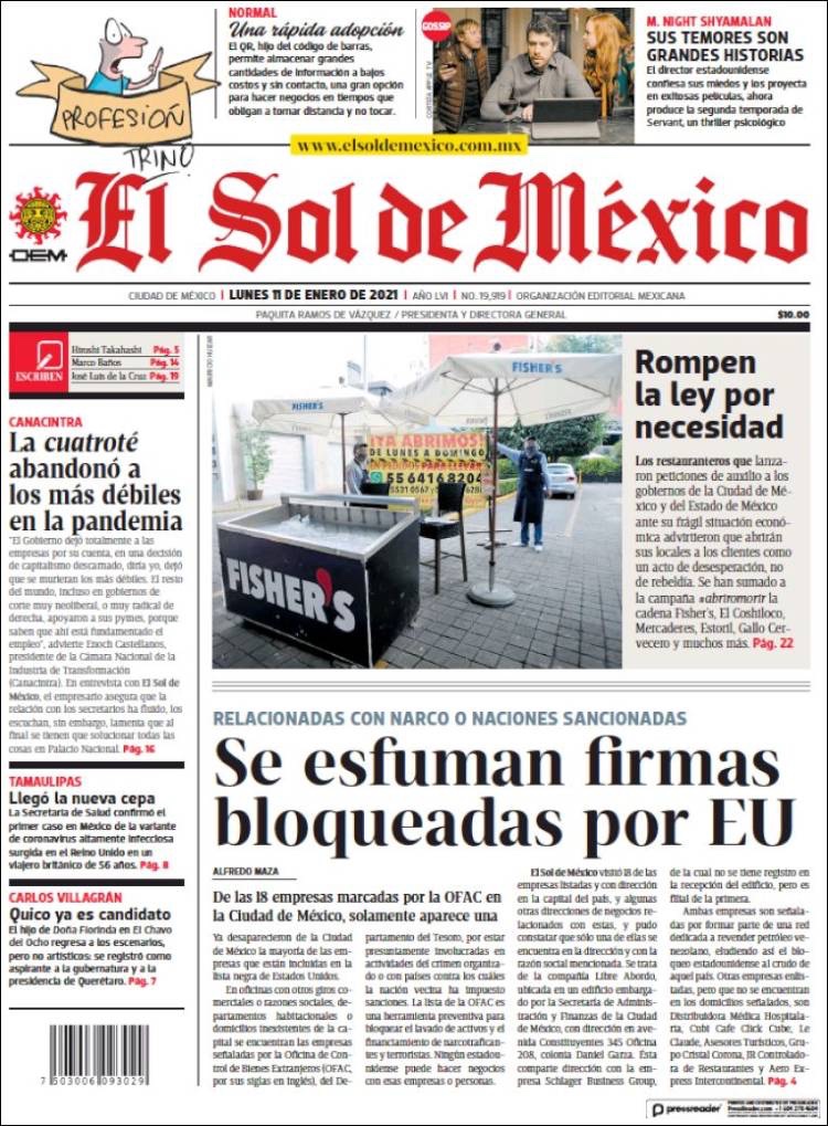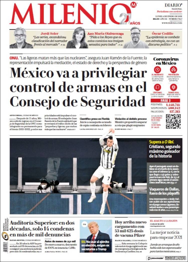 PRIMERAS PLANAS EN MEXICO Y EL MUNDO DEL 11 DE ENERO DE 2021