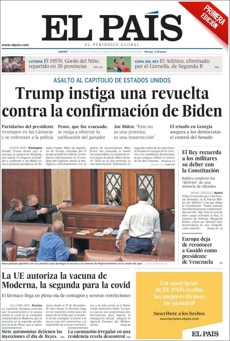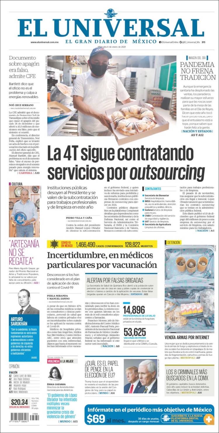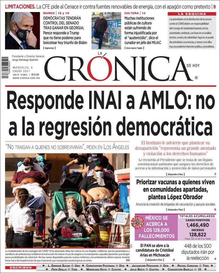PRIMERAS PLANAS EN MEXICO Y EL MUNDO DEL 06 DE ENERO DE 2021