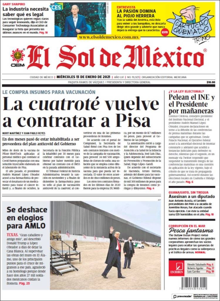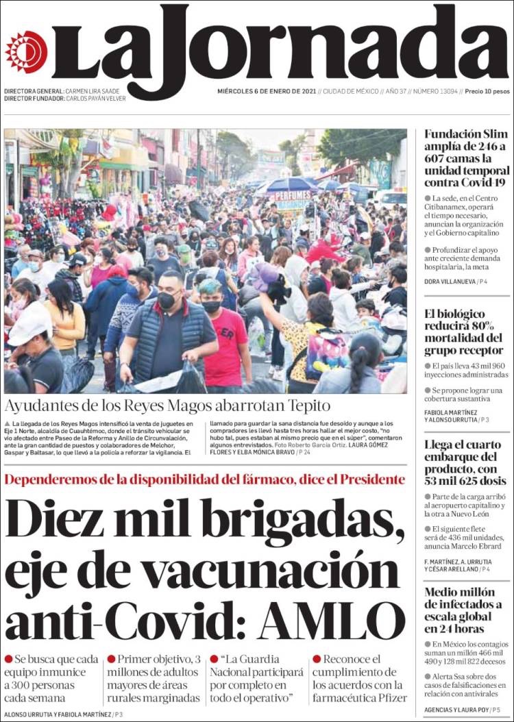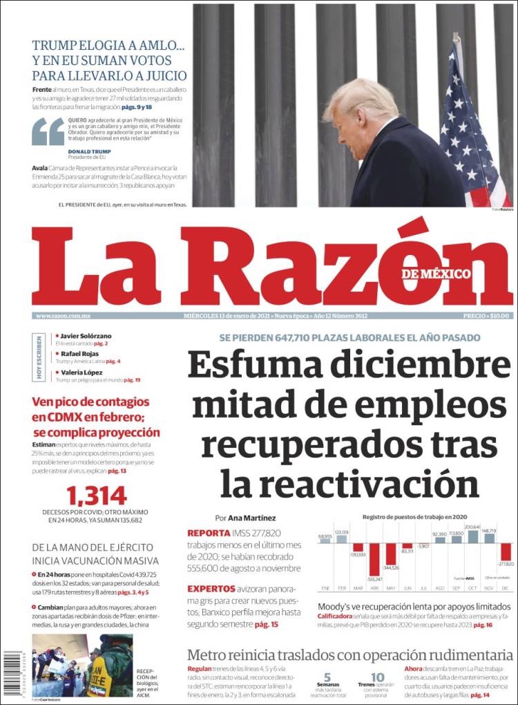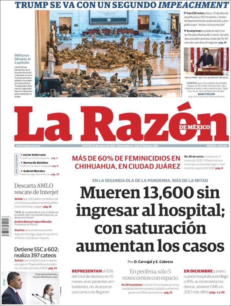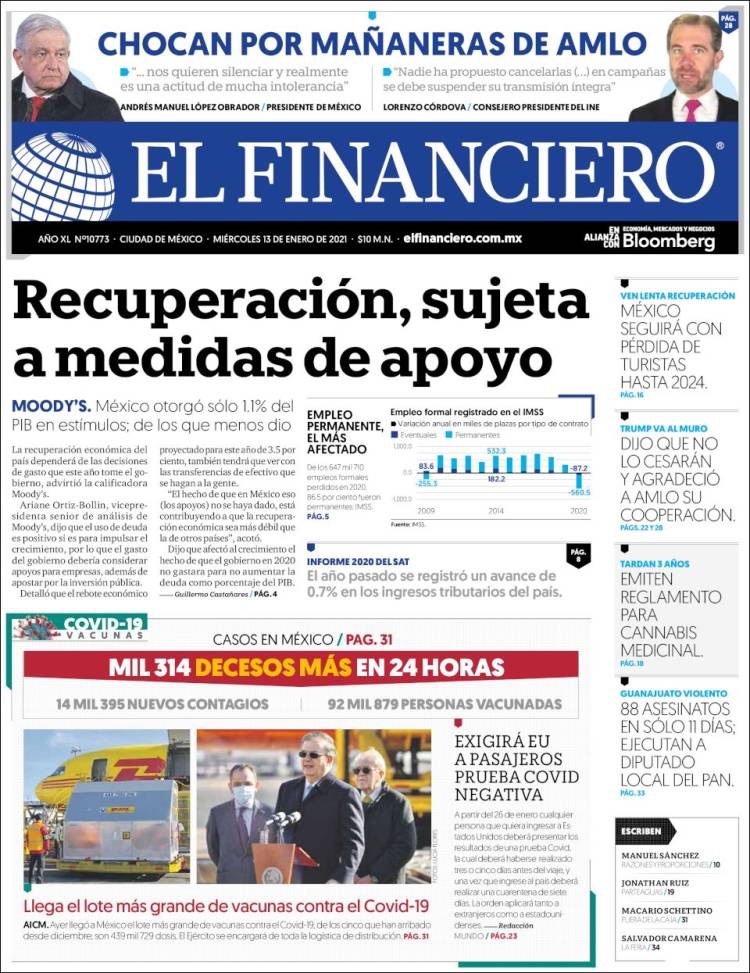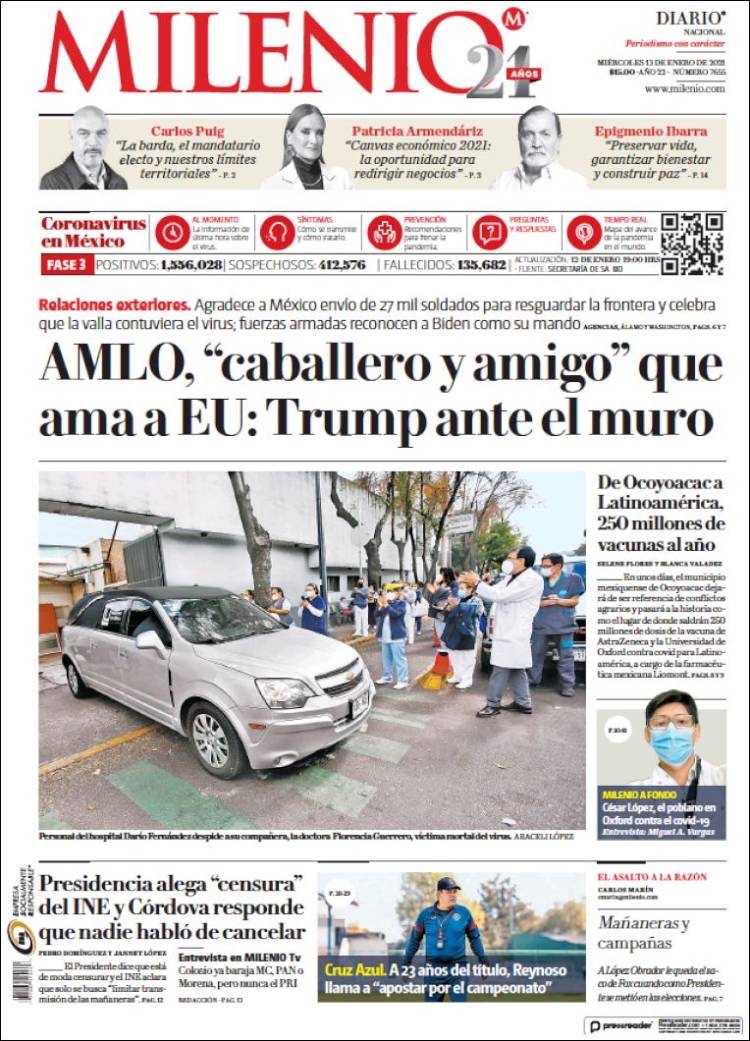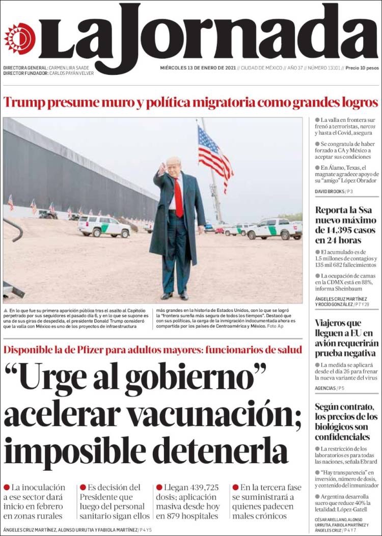 PRIMERAS PLANAS EN MEXICO Y EL MUNDO DEL 13 DE ENERO DE 2021