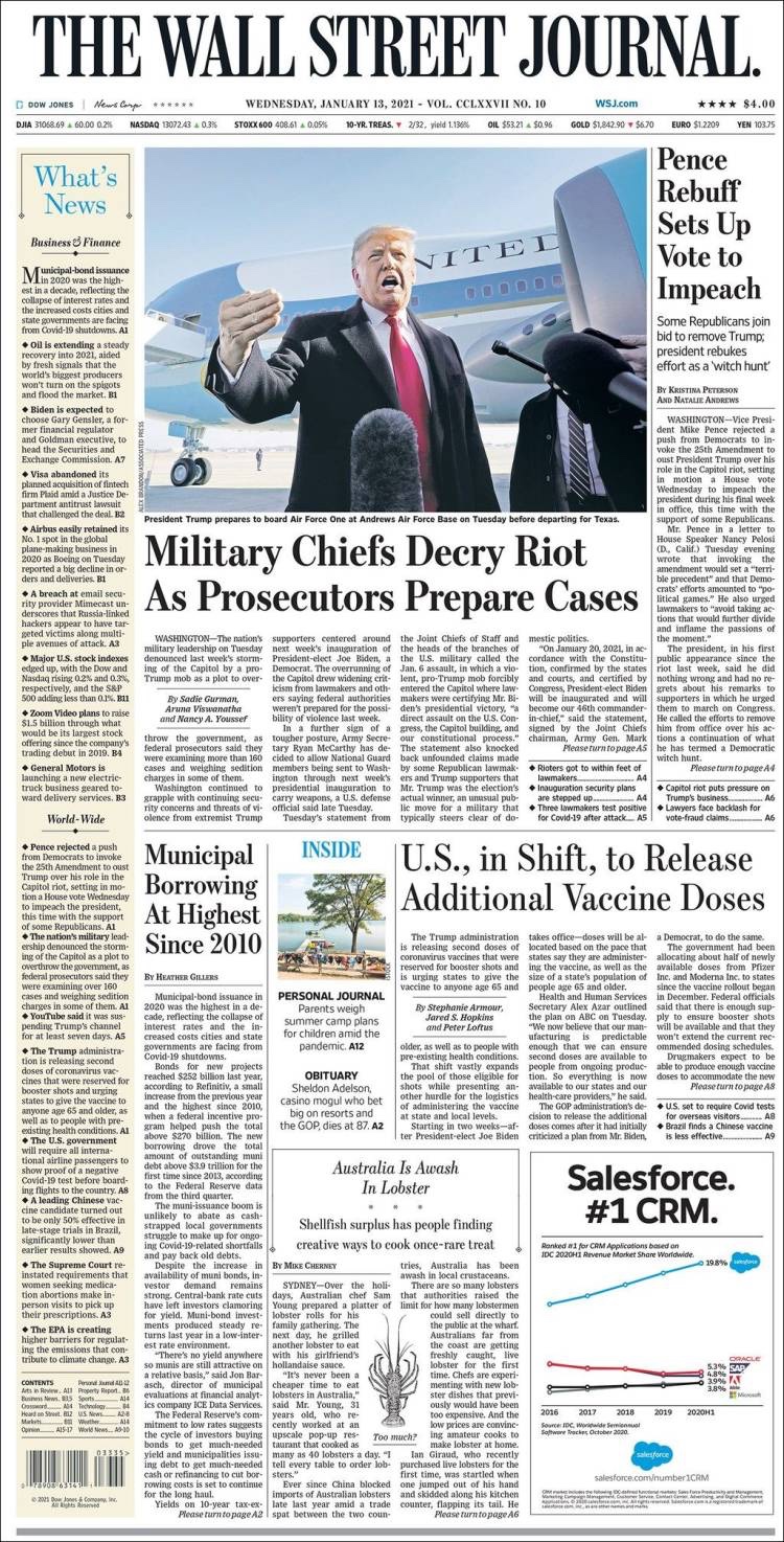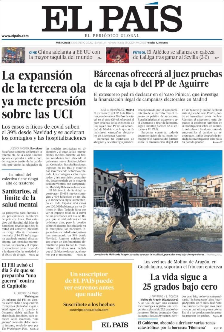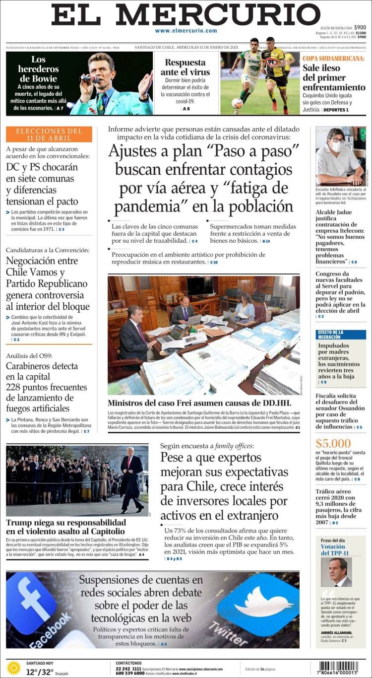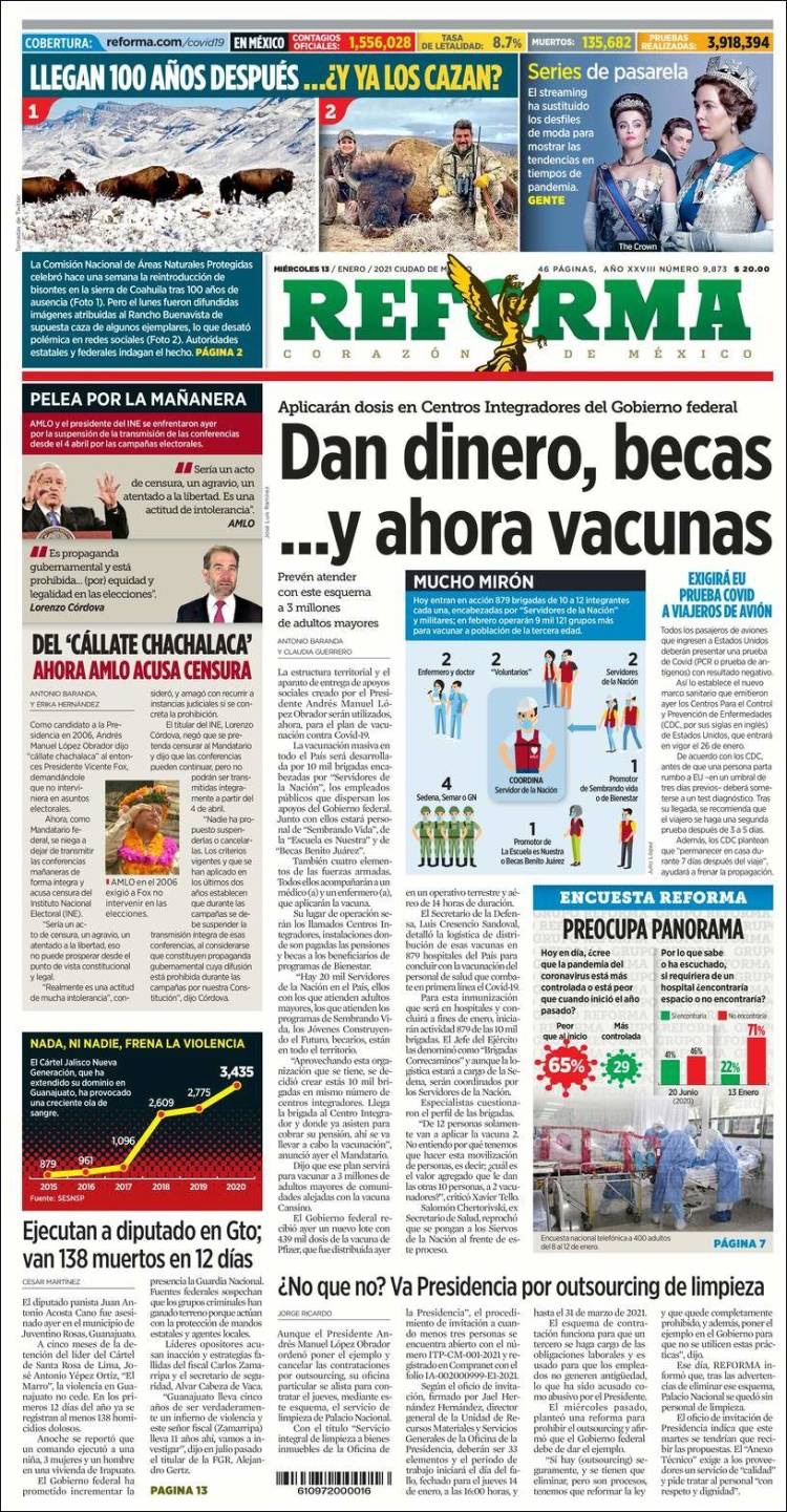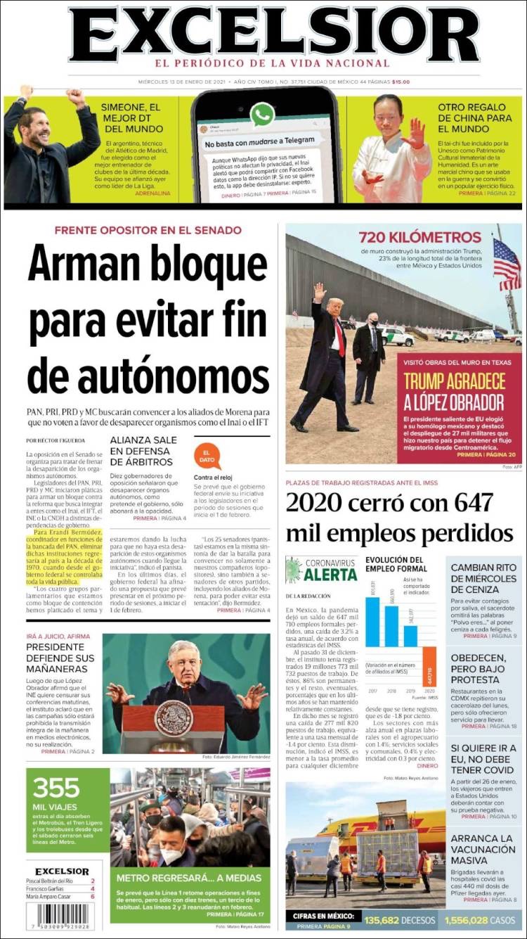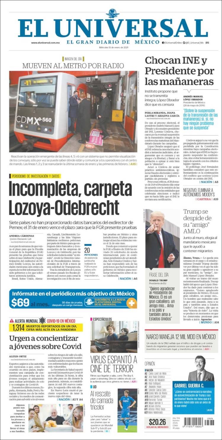 PRIMERAS PLANAS EN MEXICO Y EL MUNDO DEL 13 DE ENERO DE 2021