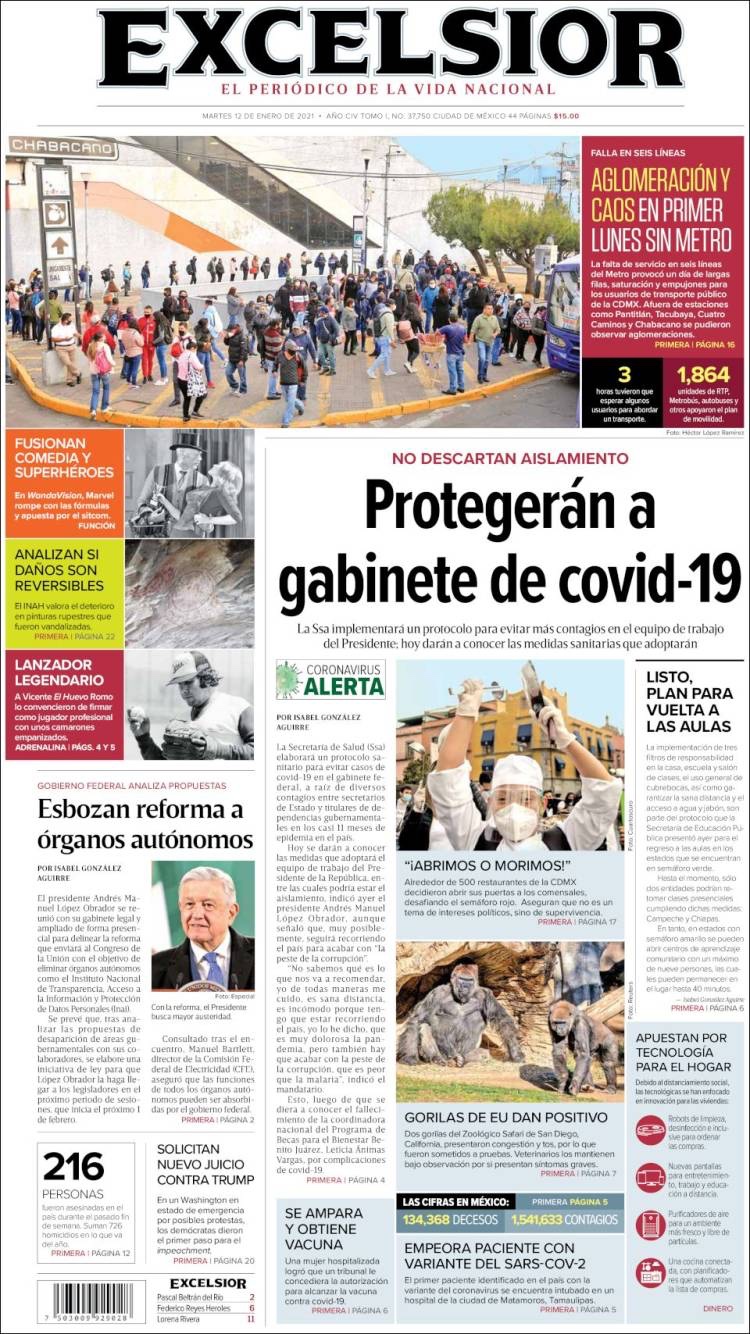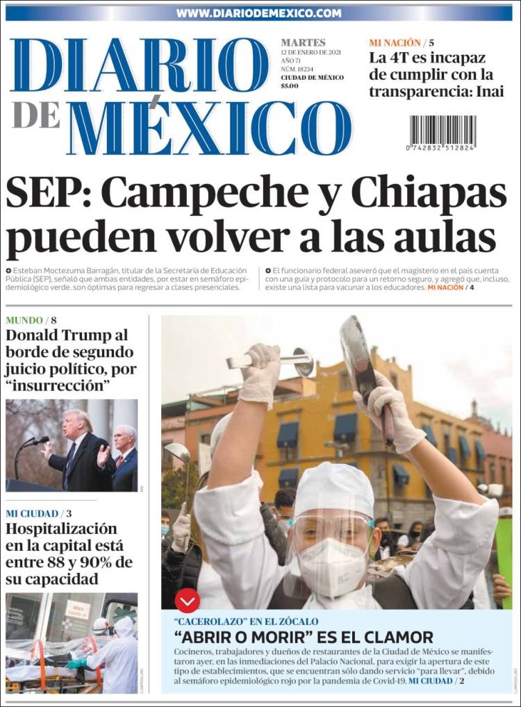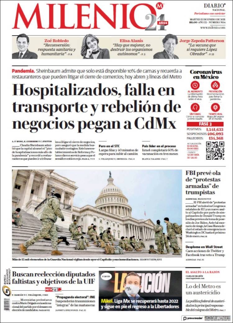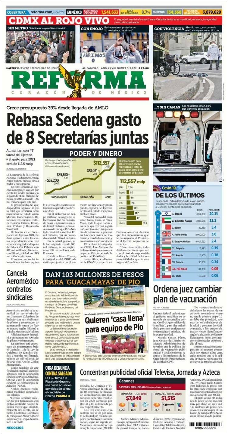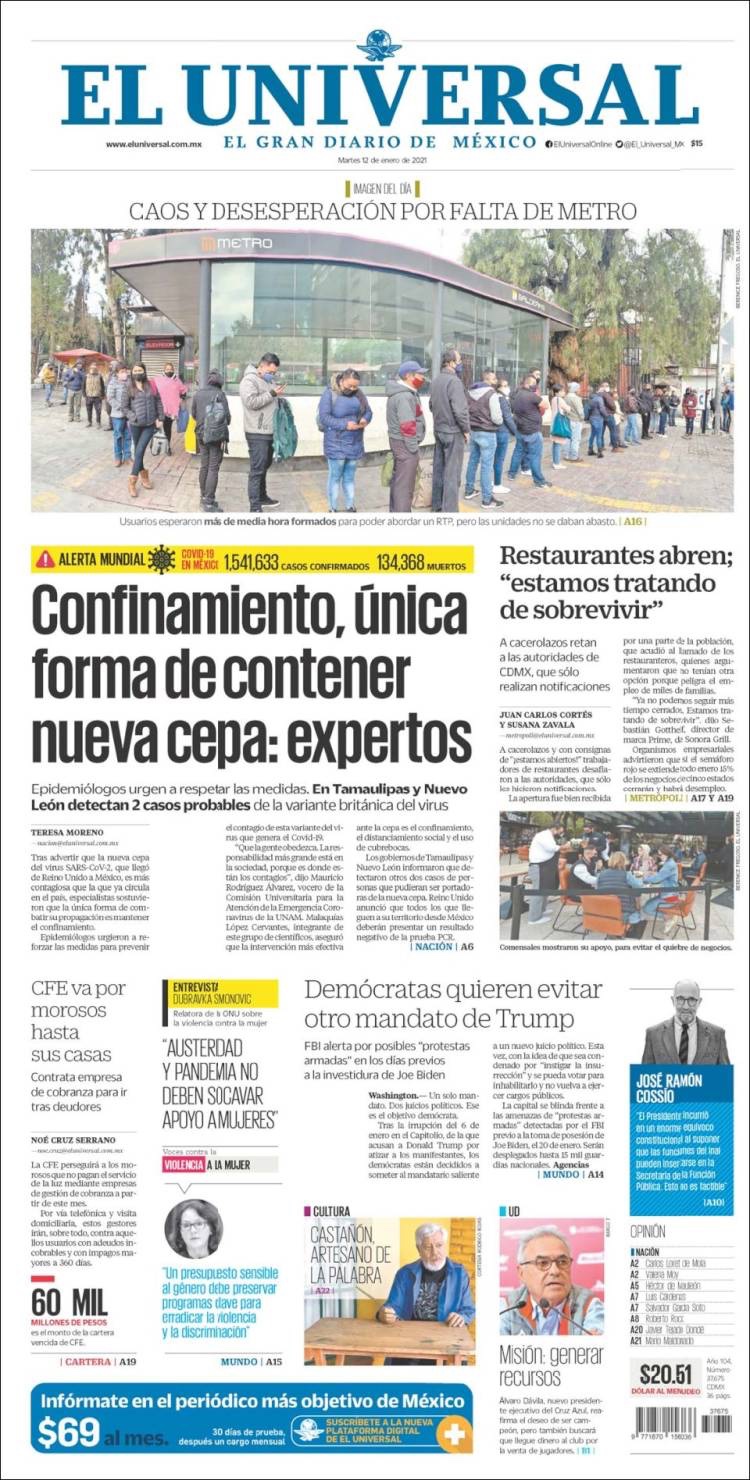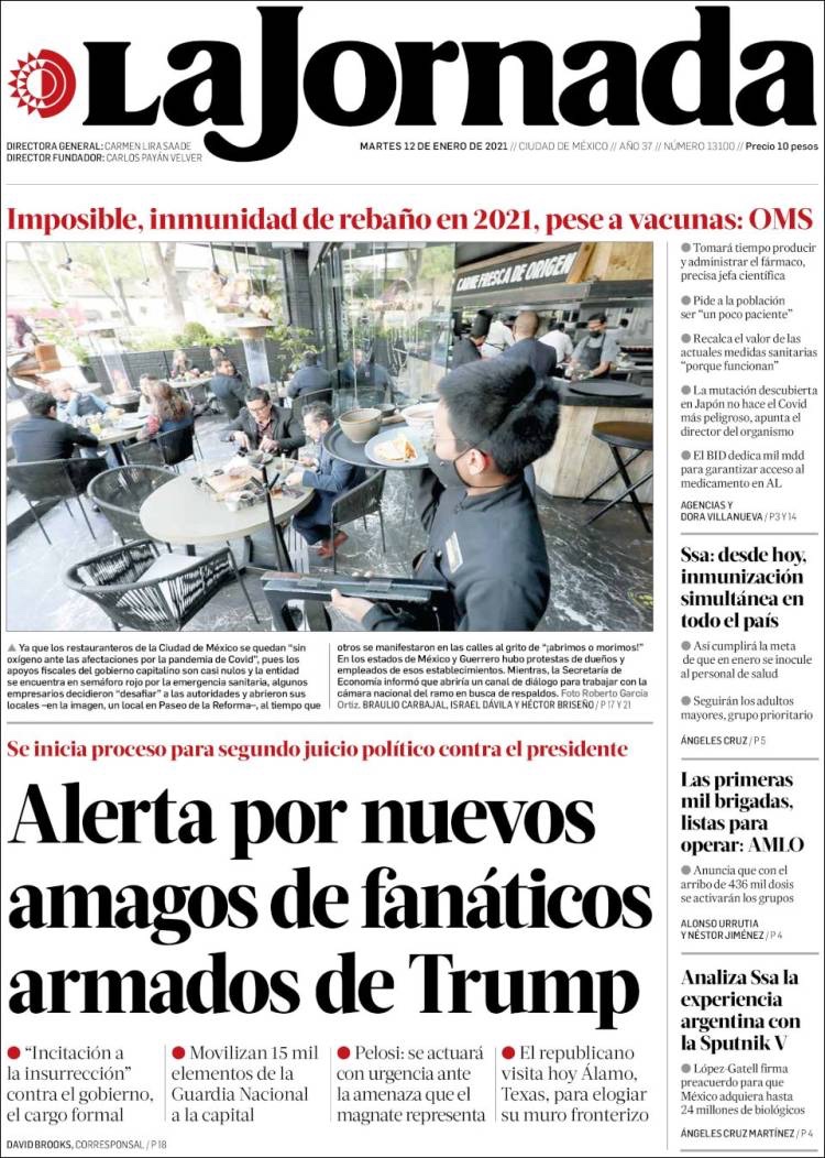 PRIMERAS PLANAS EN MEXICO Y EL MUNDO DEL 12 DE ENERO DE 2021