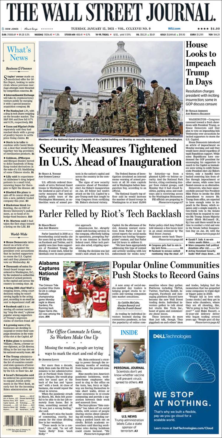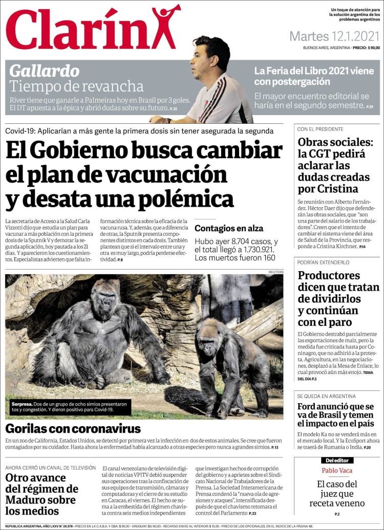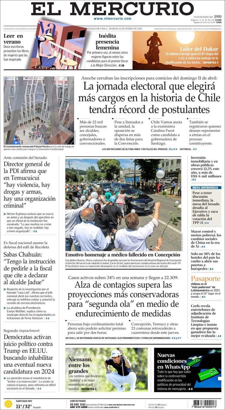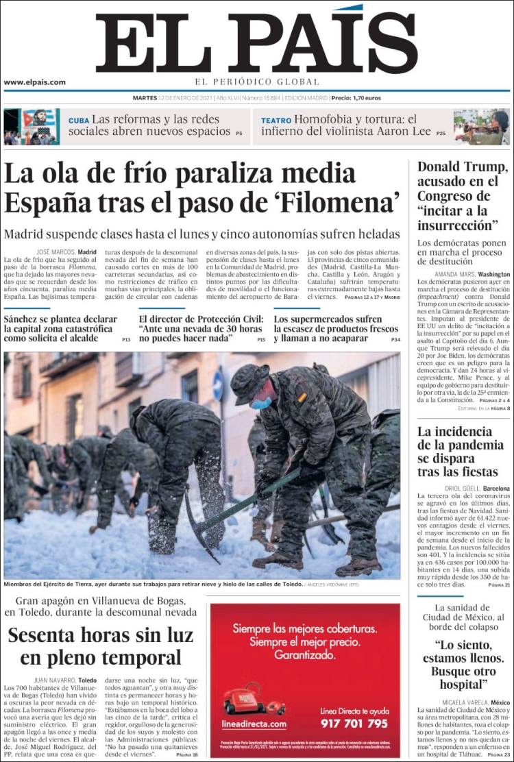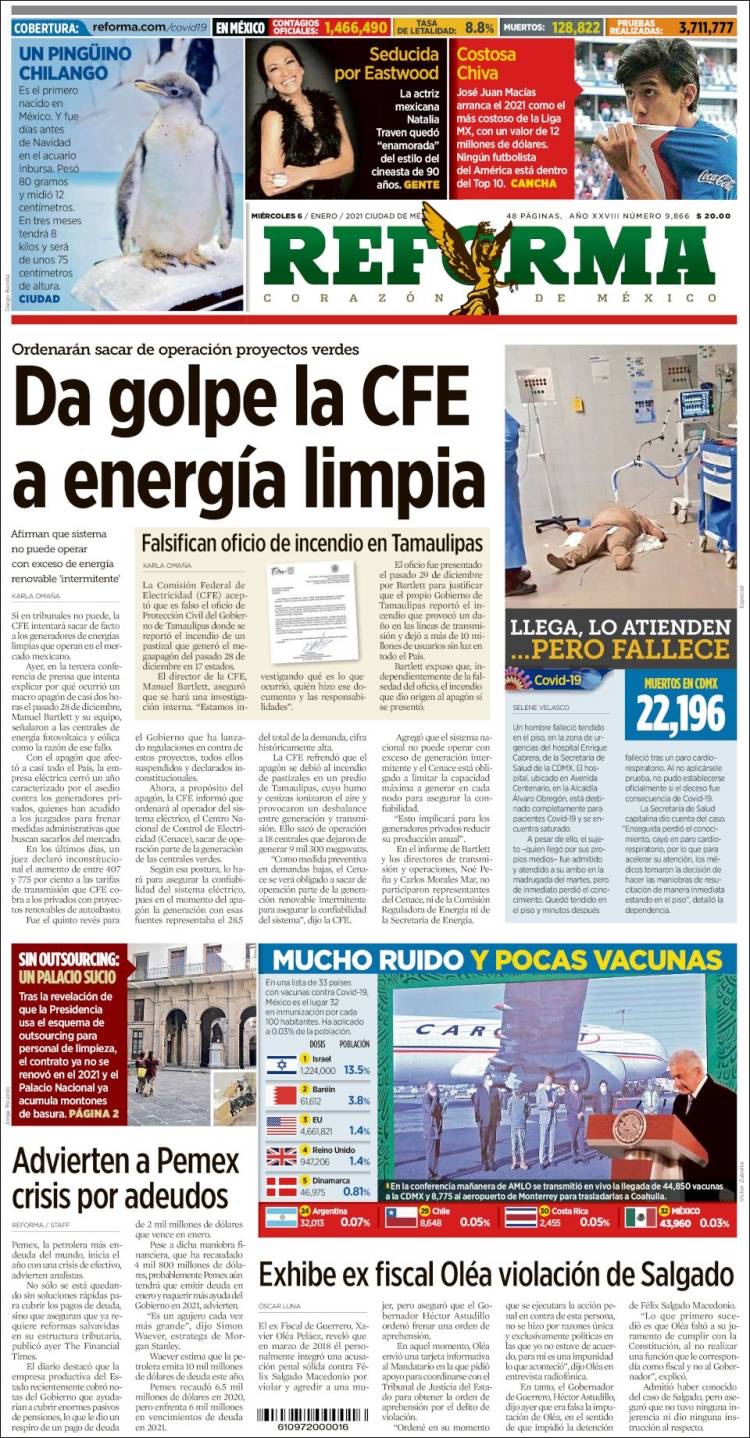 PRIMERAS PLANAS EN MEXICO Y EL MUNDO DEL 12 DE ENERO DE 2021