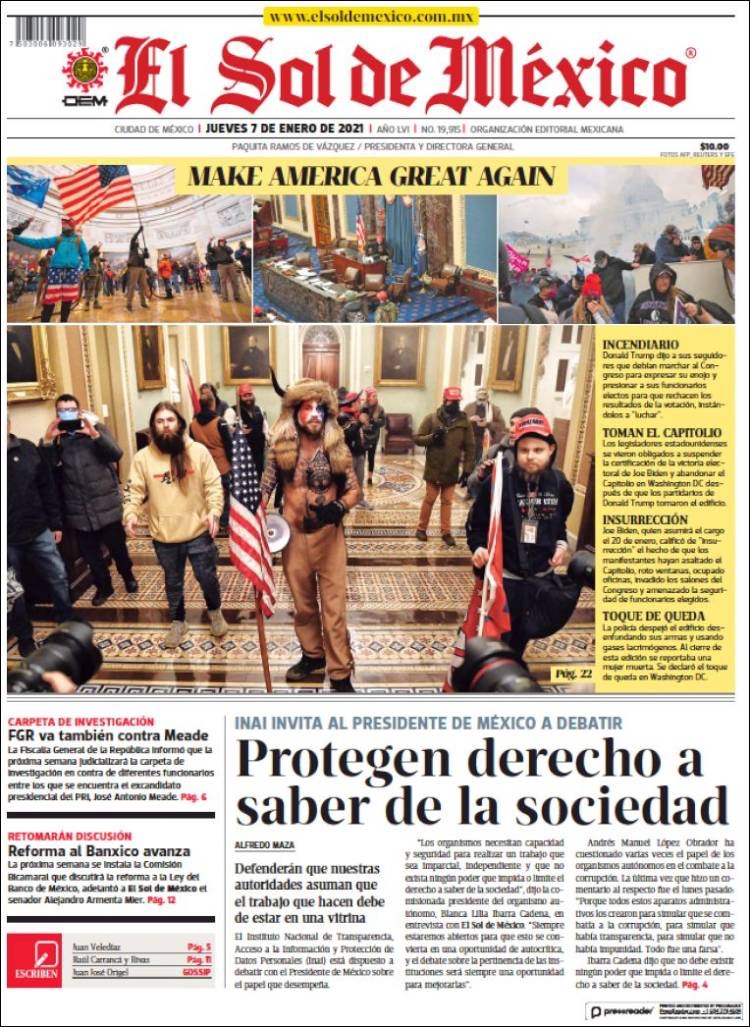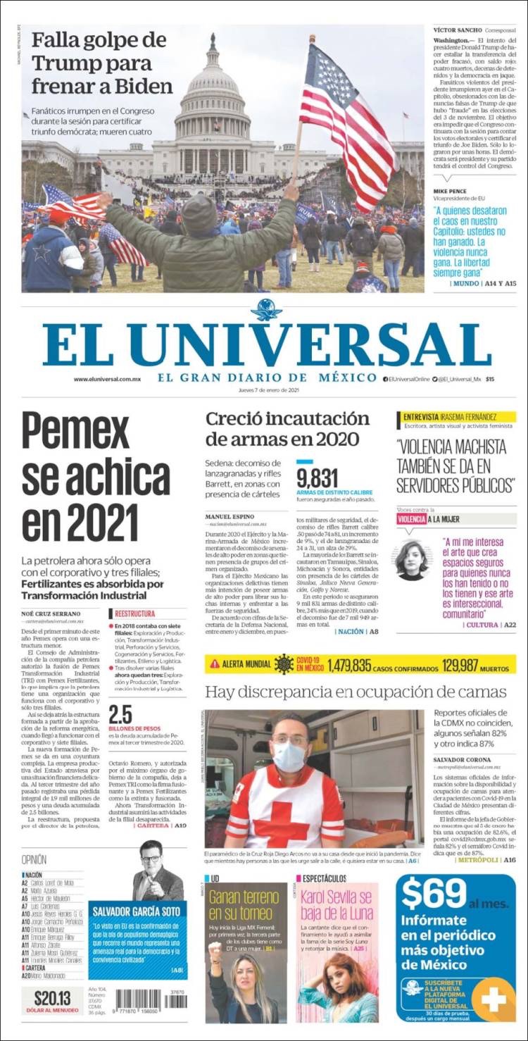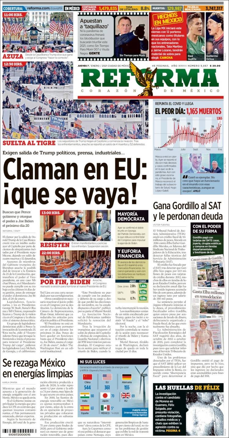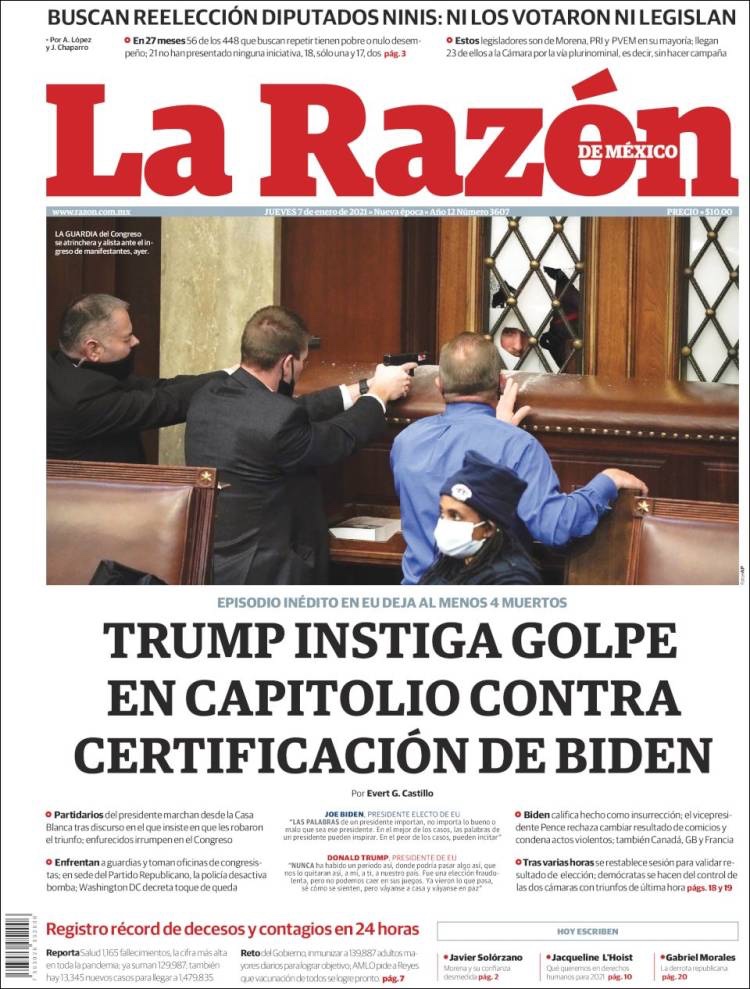 PRIMERAS PLANAS EN MEXICO Y EL MUNDO DEL 7 DE ENERO DE 2021