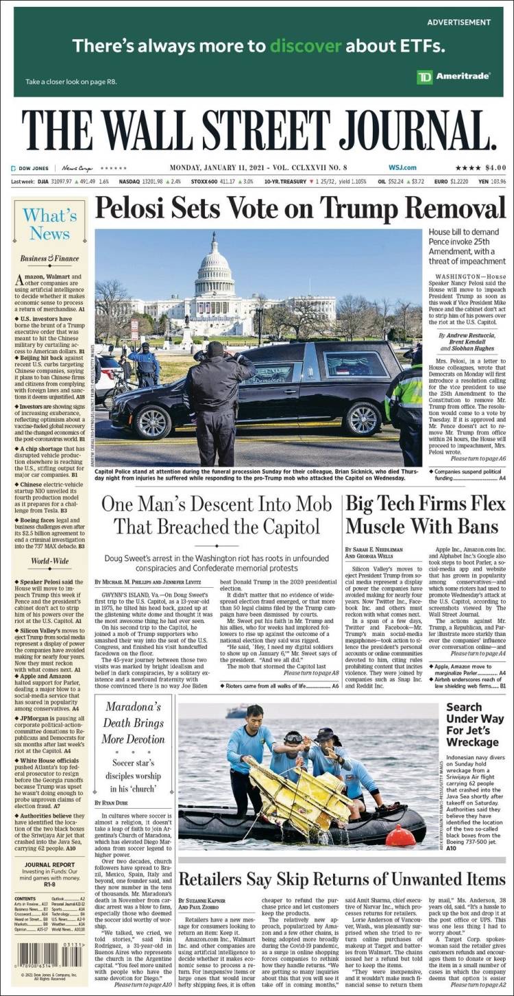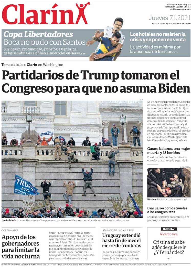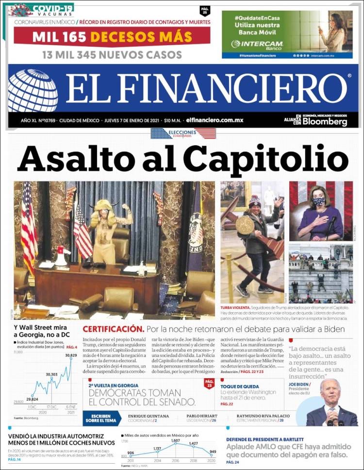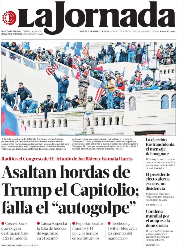 PRIMERAS PLANAS EN MEXICO Y EL MUNDO DEL 7 DE ENERO DE 2021