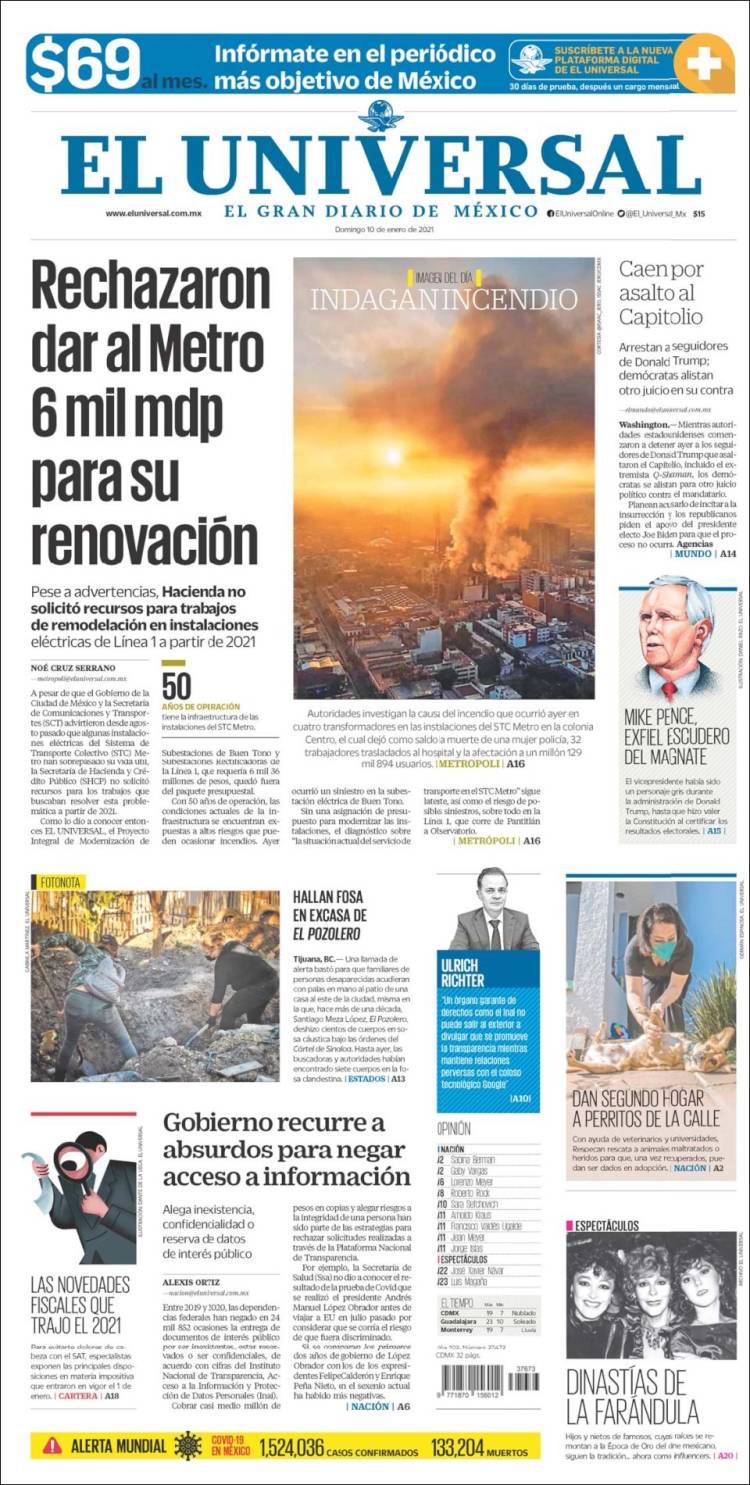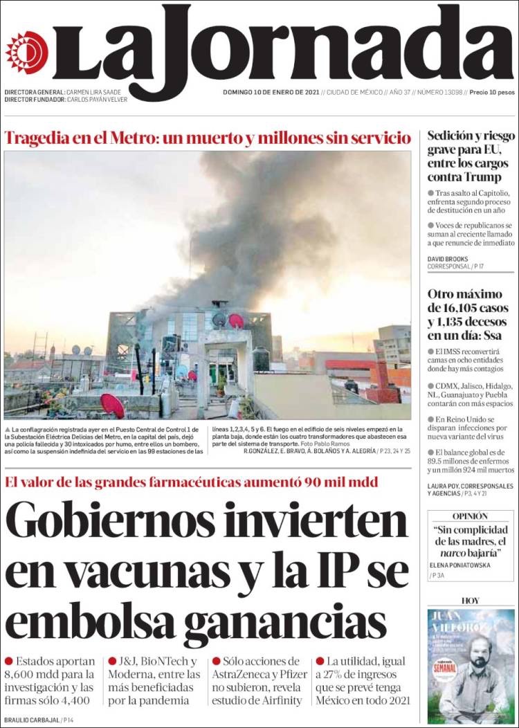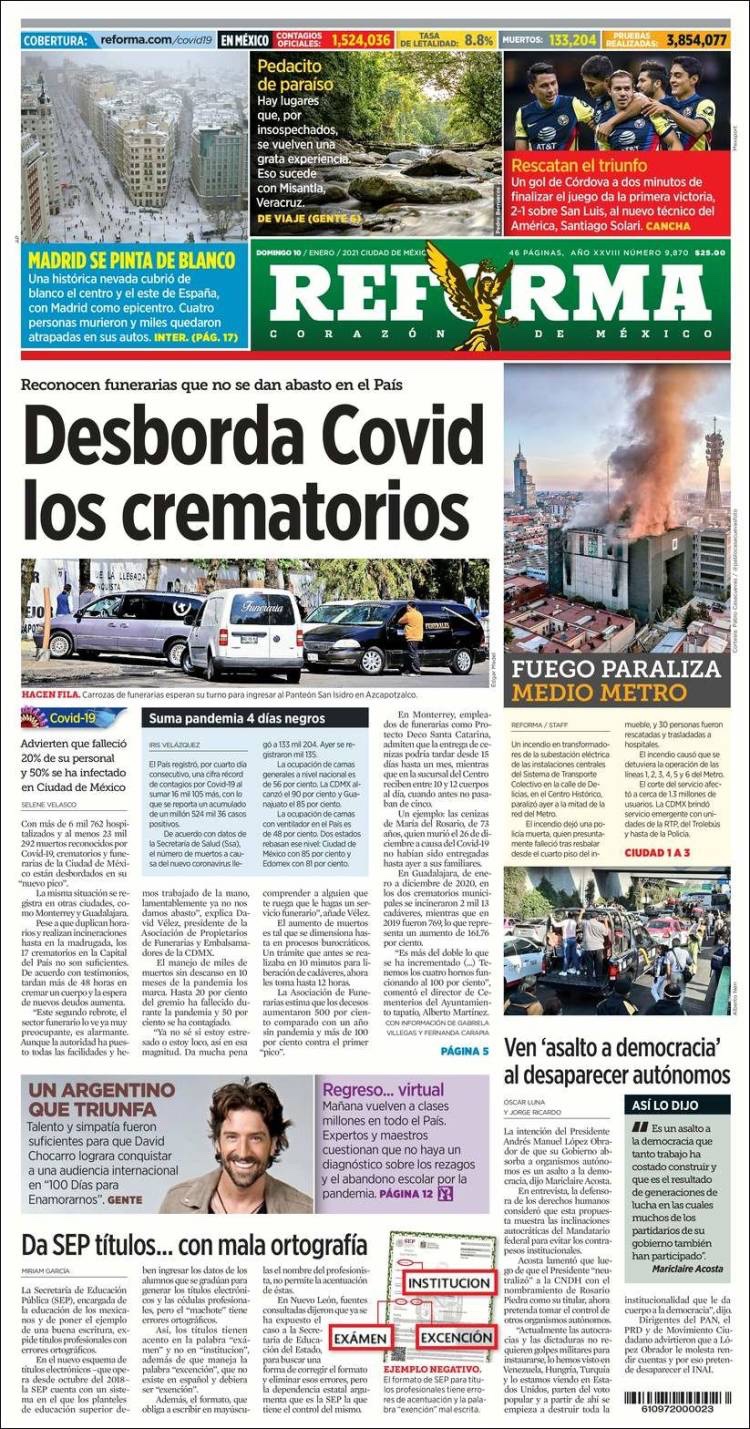 PRIMERAS PLANAS EN MEXICO Y EL MUNDO DEL 10 DE ENERO DE 2021