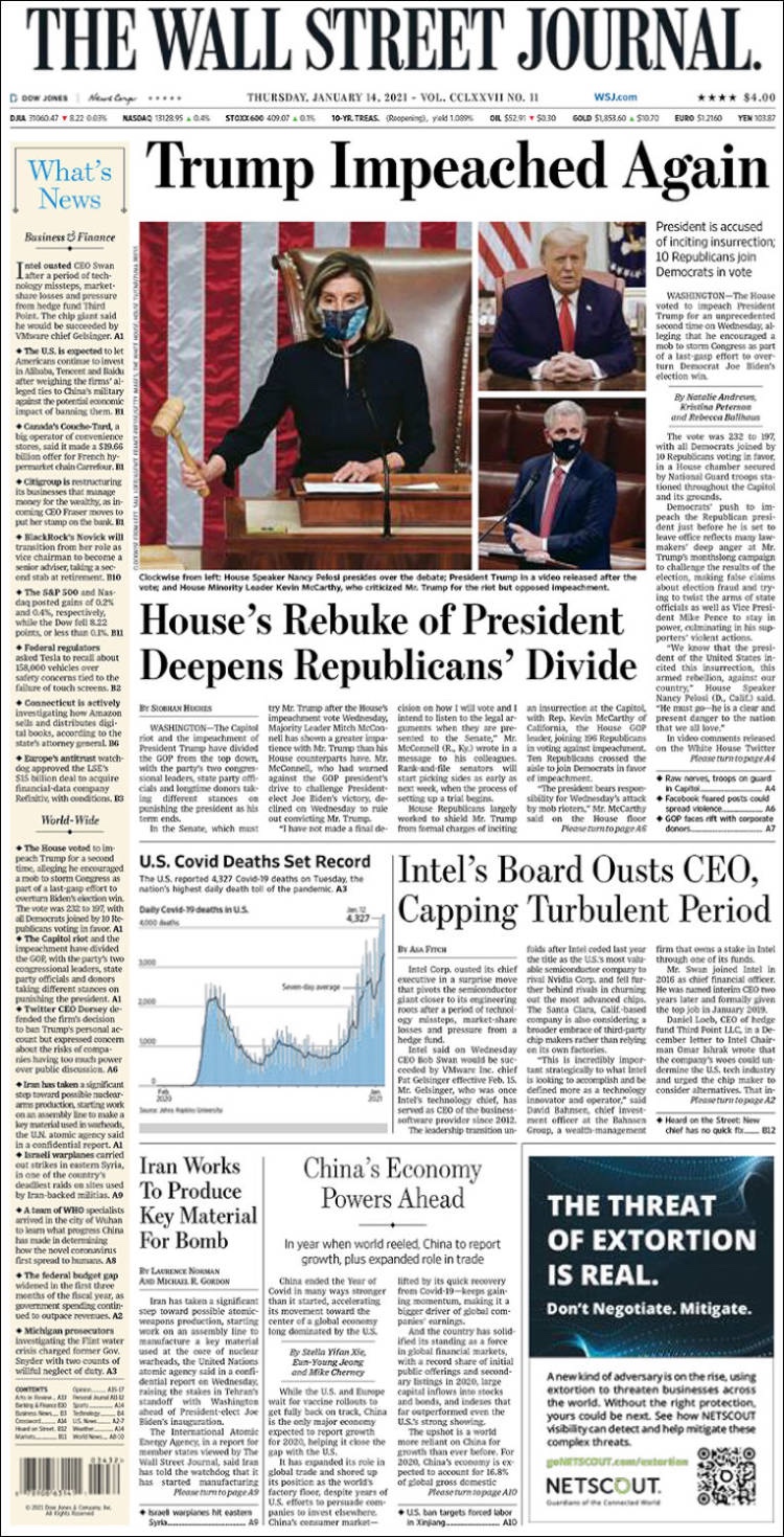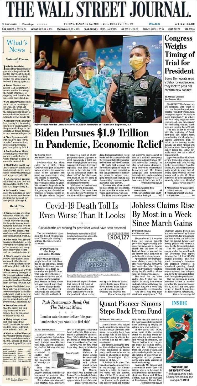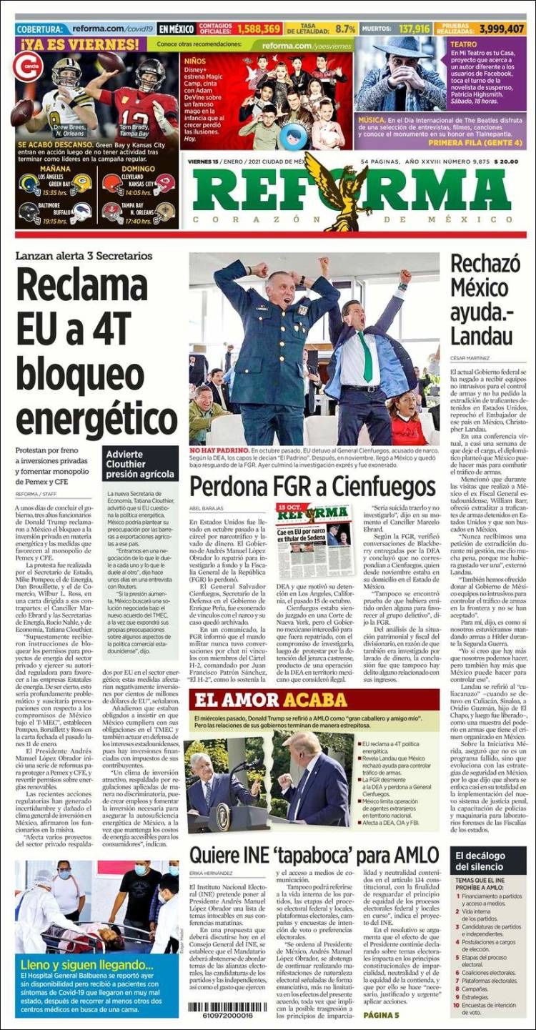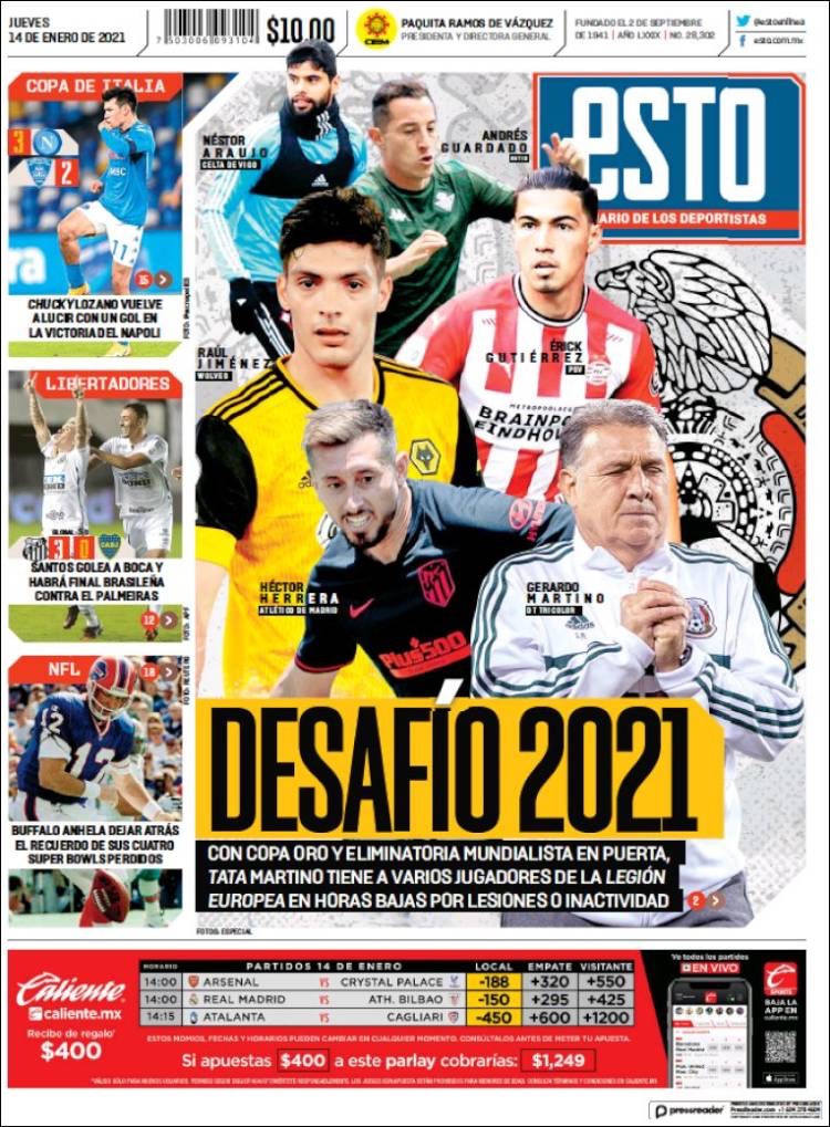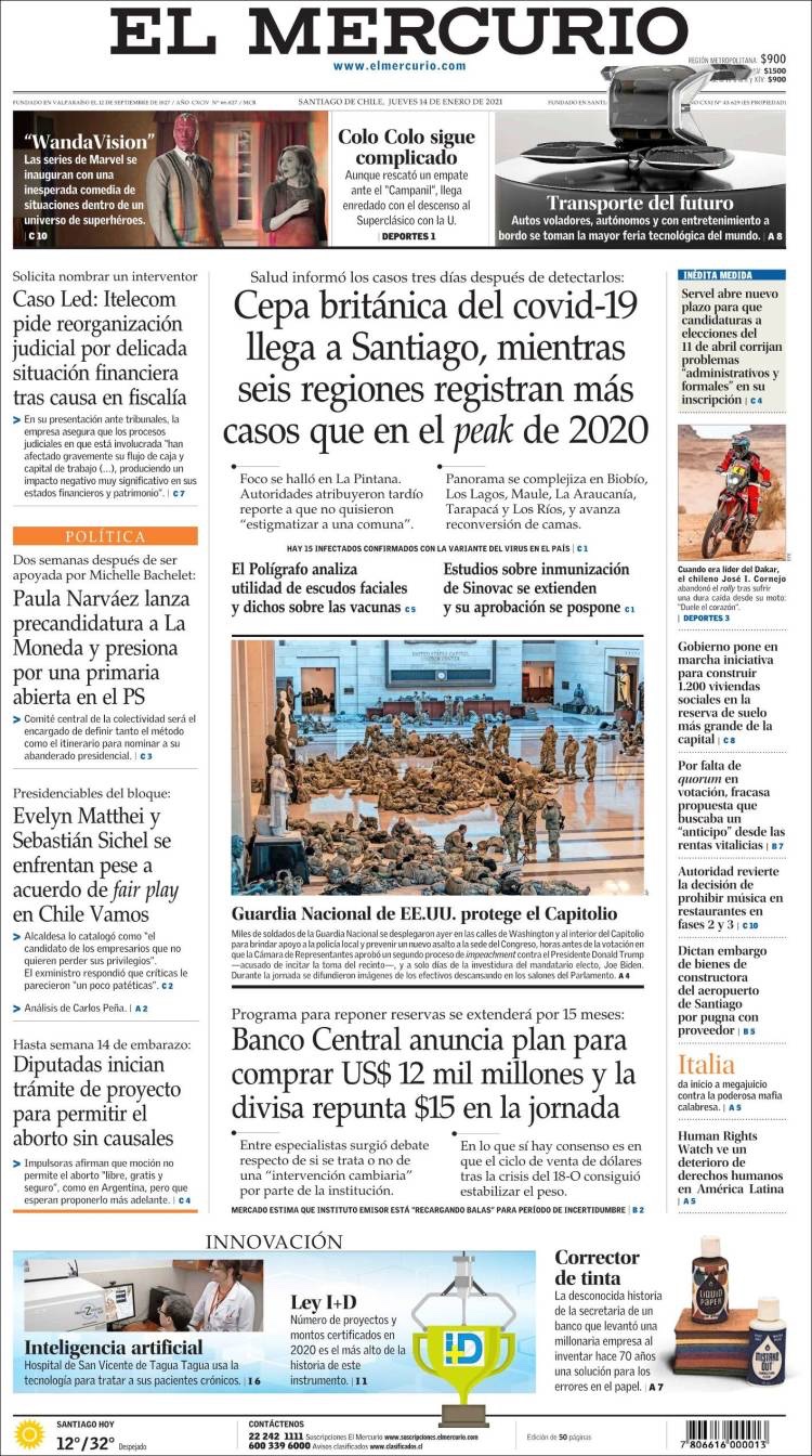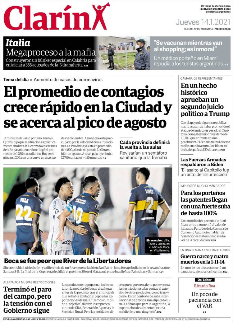PRIMERAS PLANAS EN MEXICO Y EL MUNDO DEL 14 DE ENERO DE 2021