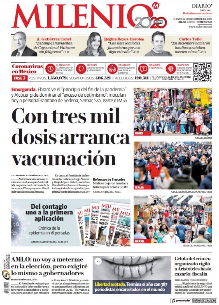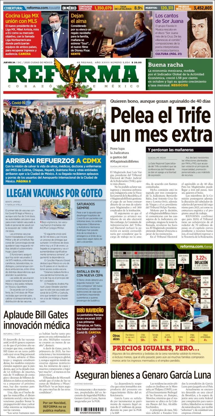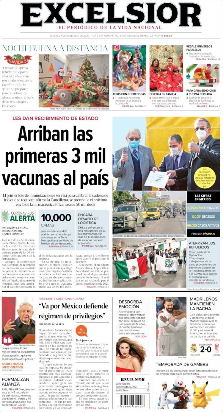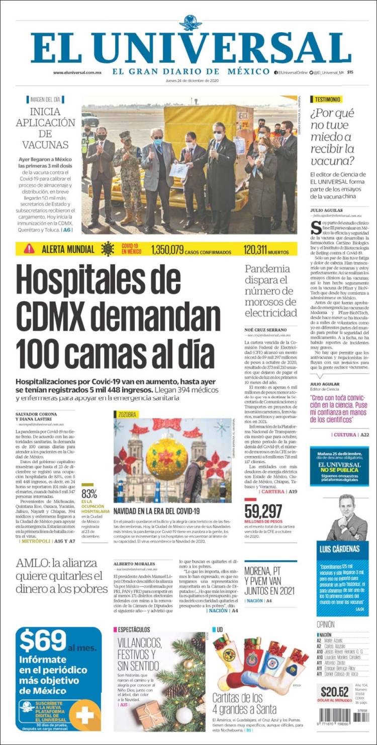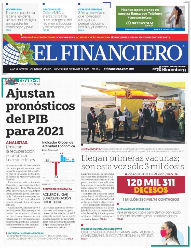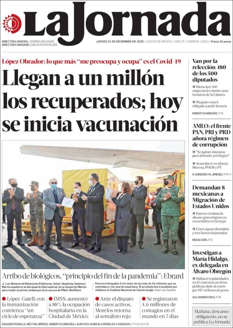 PRIMERAS PLANAS EN MEXICO Y EL MUNDO DEL 24 DE DICIEMBRE DE 2020
