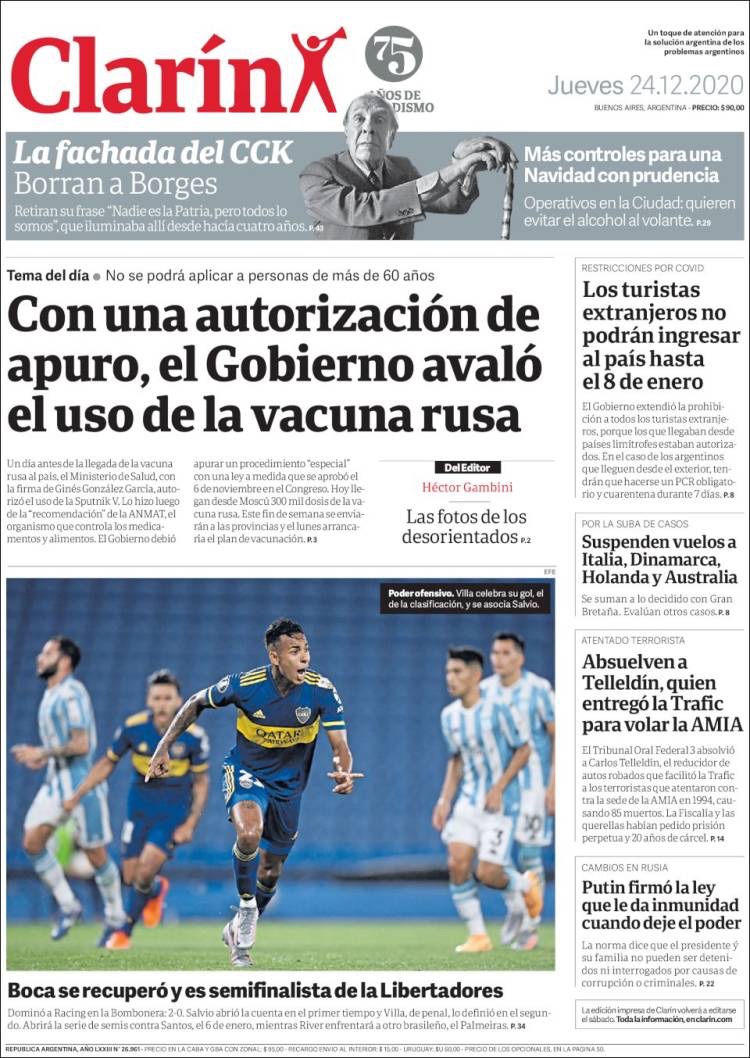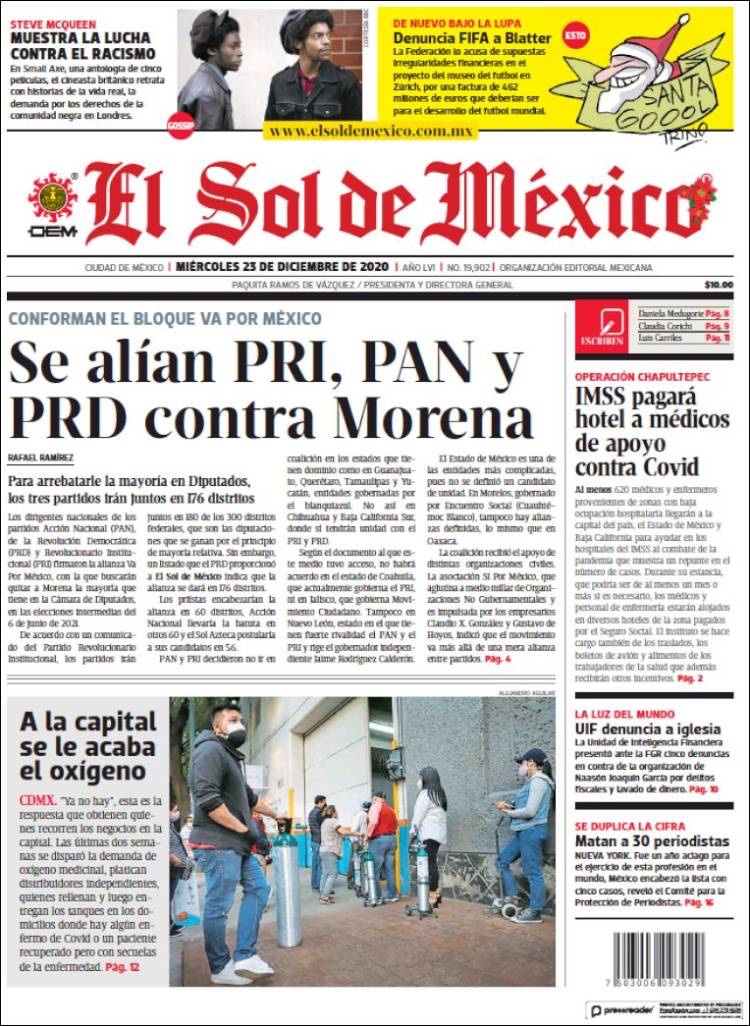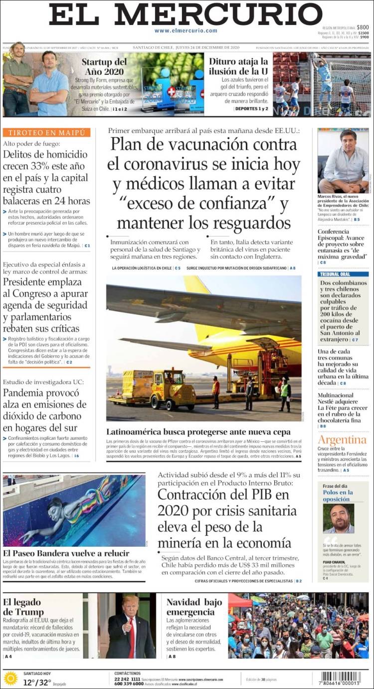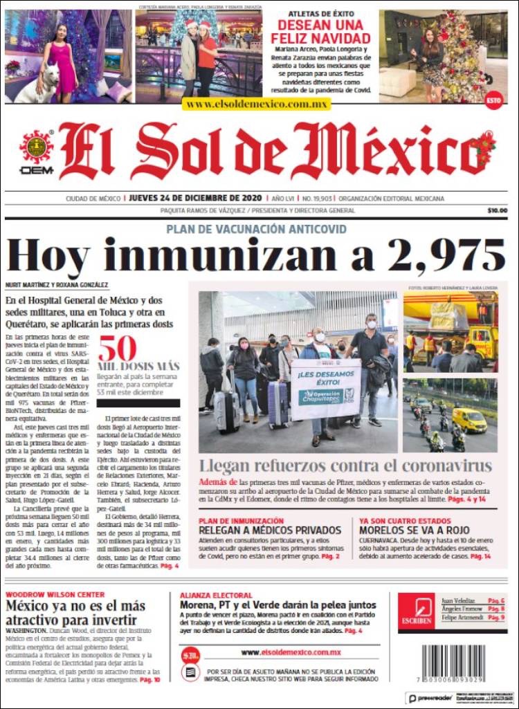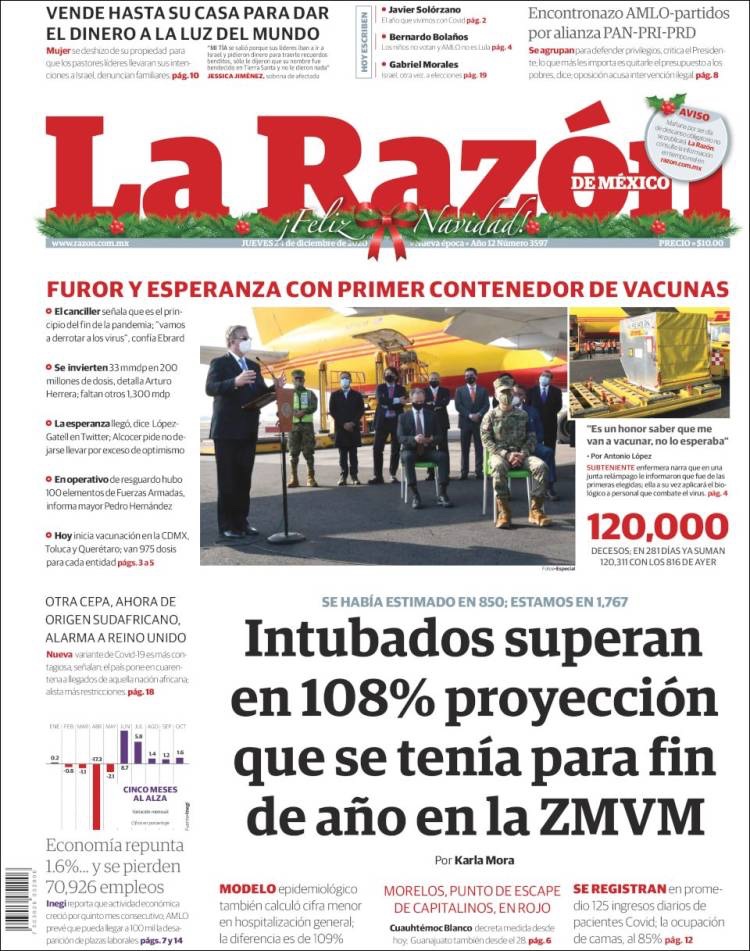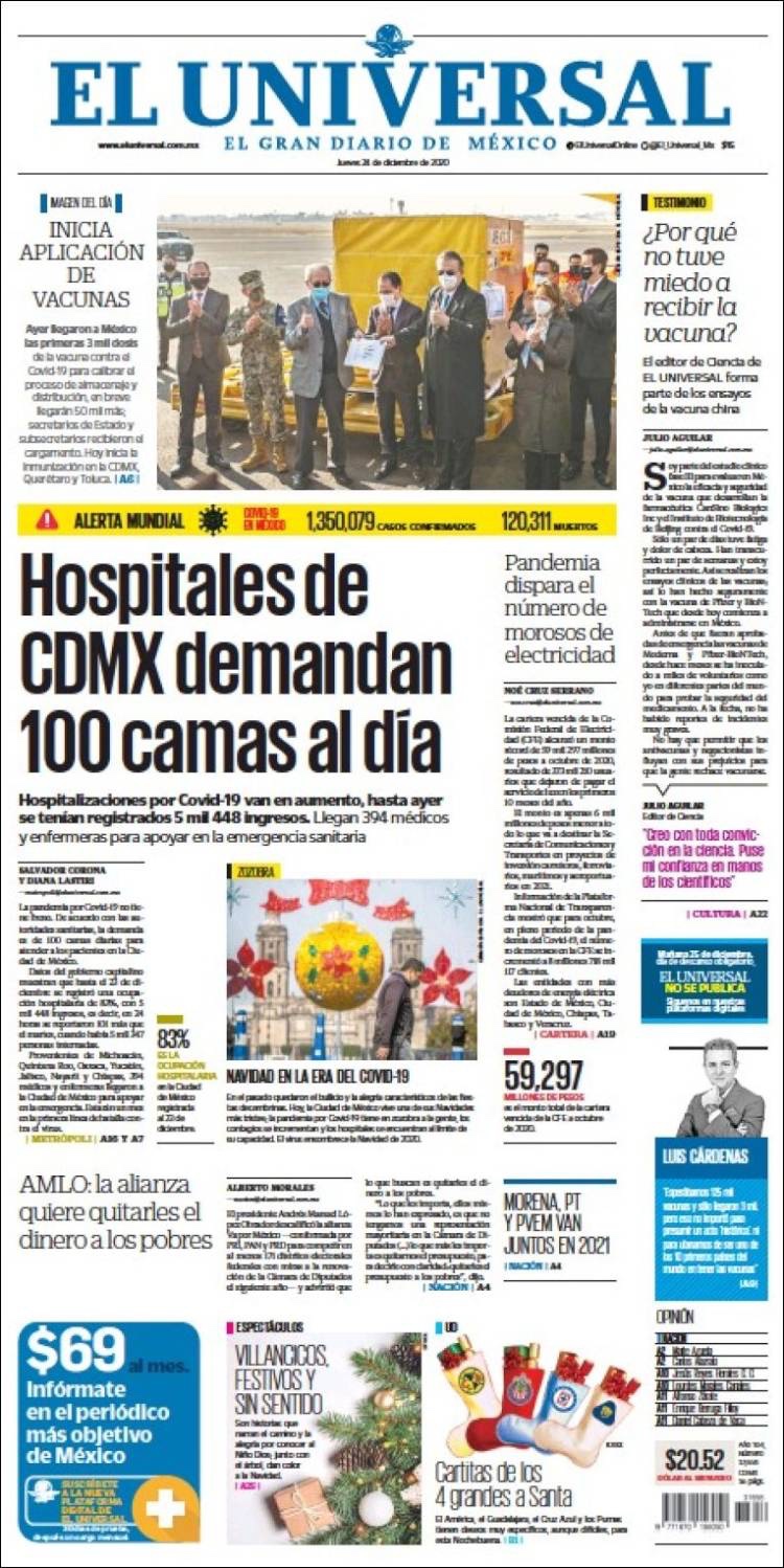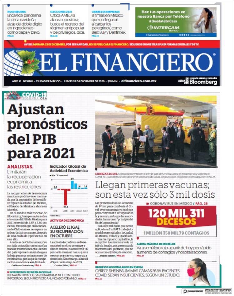 PRIMERAS PLANAS EN MEXICO Y EL MUNDO DEL 24 DE DICIEMBRE DE 2020