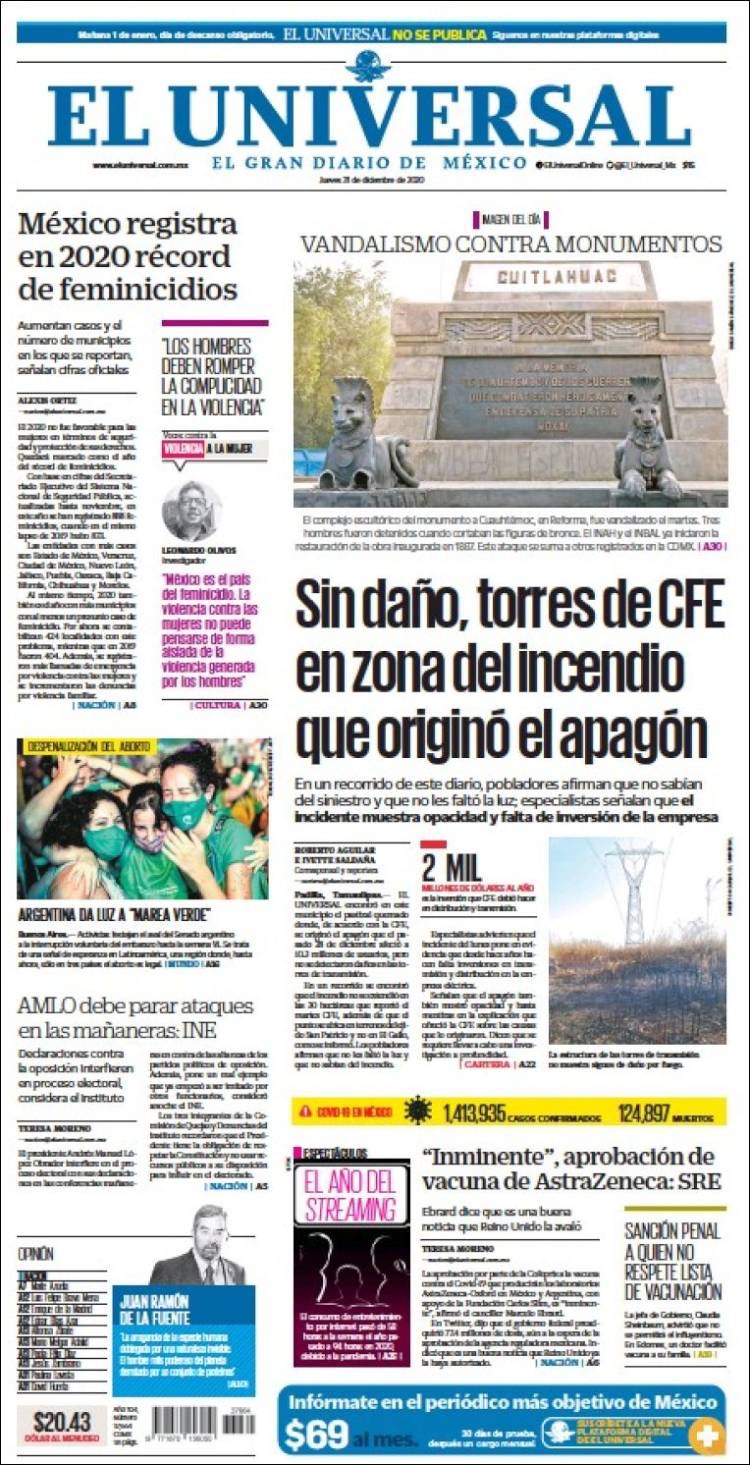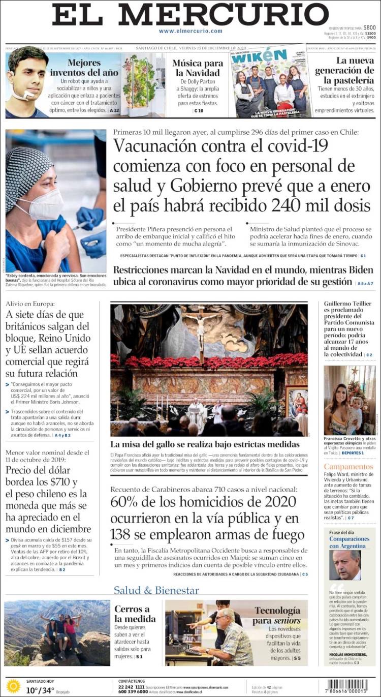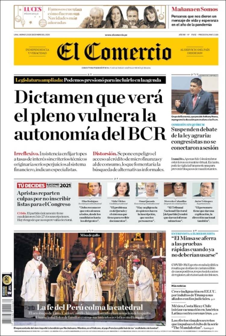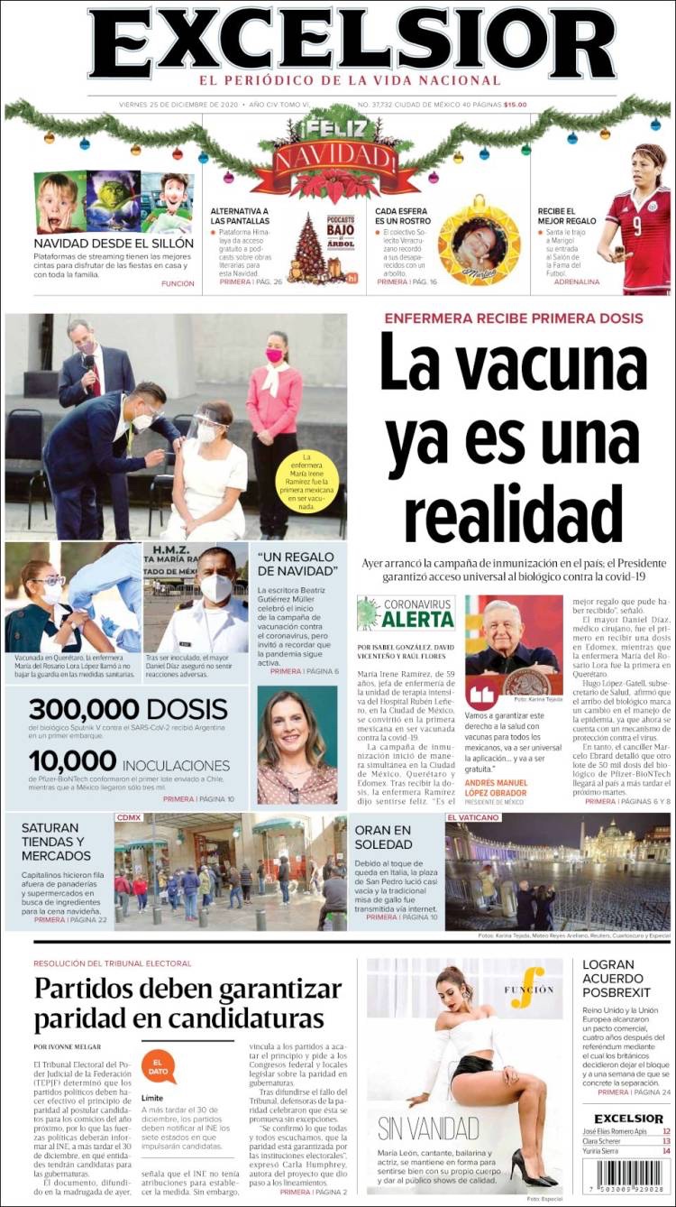 PRIMERAS PLANAS EN MEXICO Y EL MUNDO DEL 25 DE DICIEMBRE DE 2020