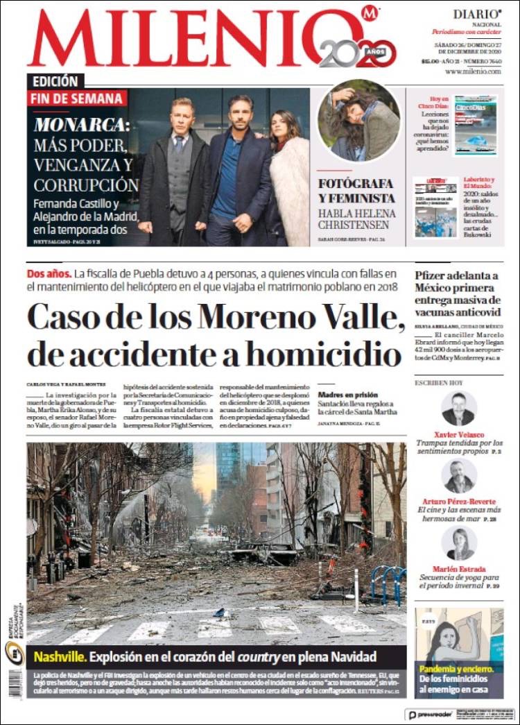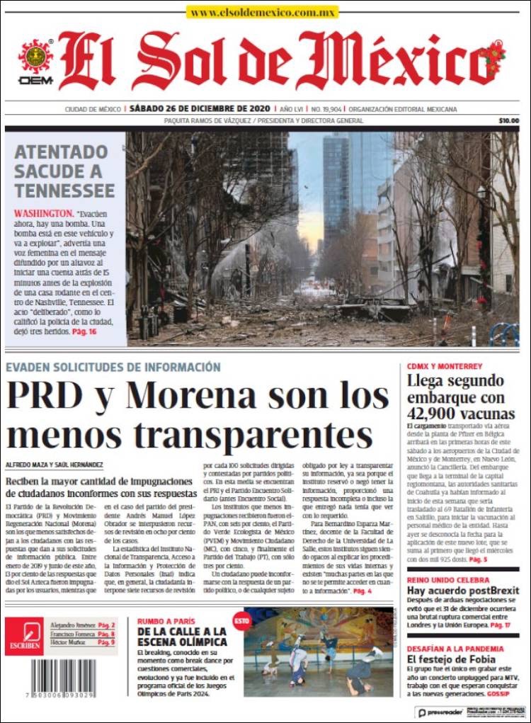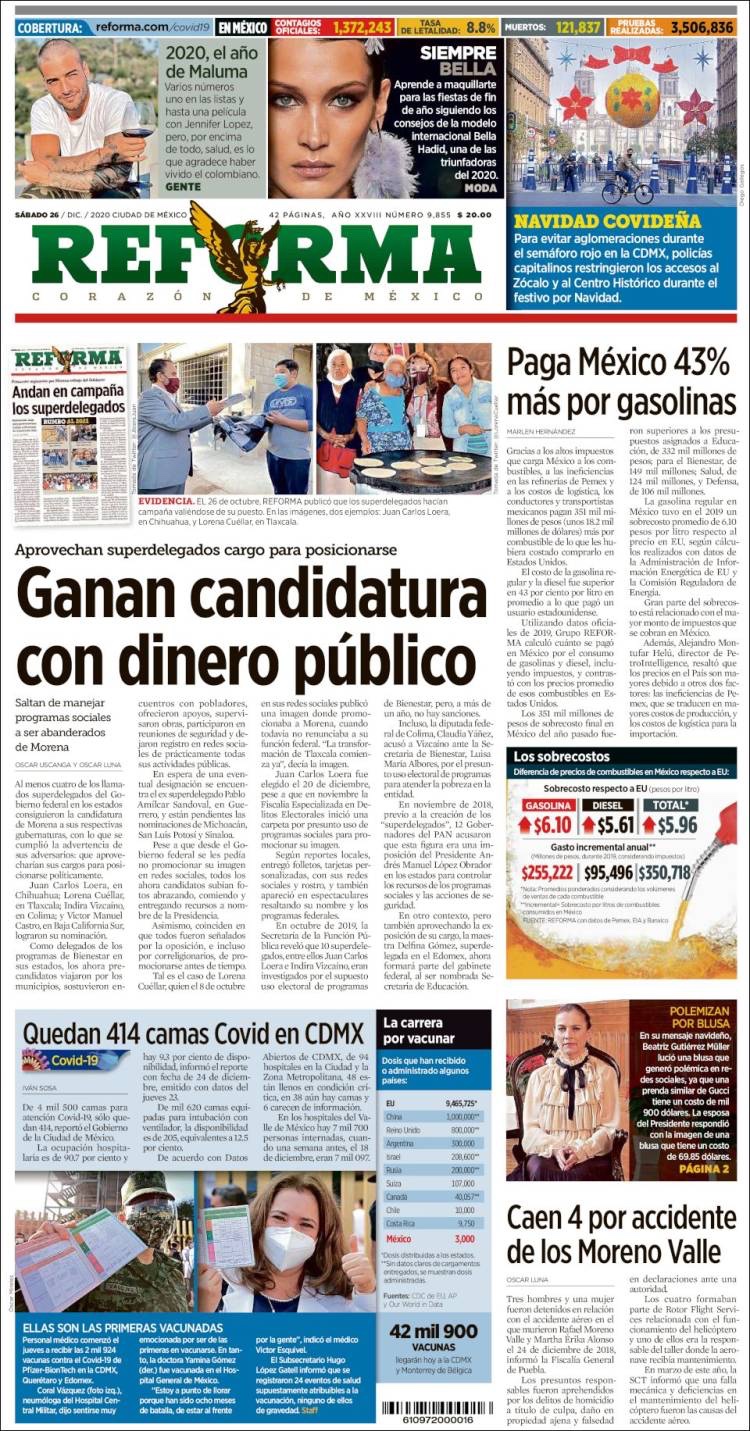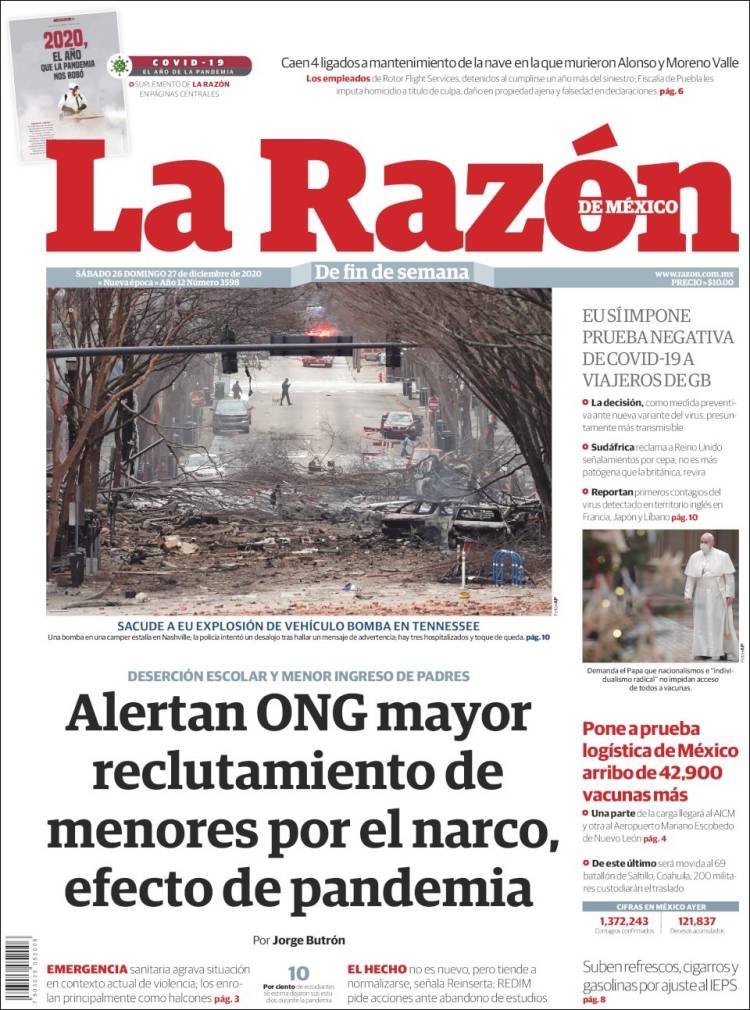 PRIMERAS PLANAS EN MEXICO Y EL MUNDO DEL 26 DE DICIEMBRE DE 2020
