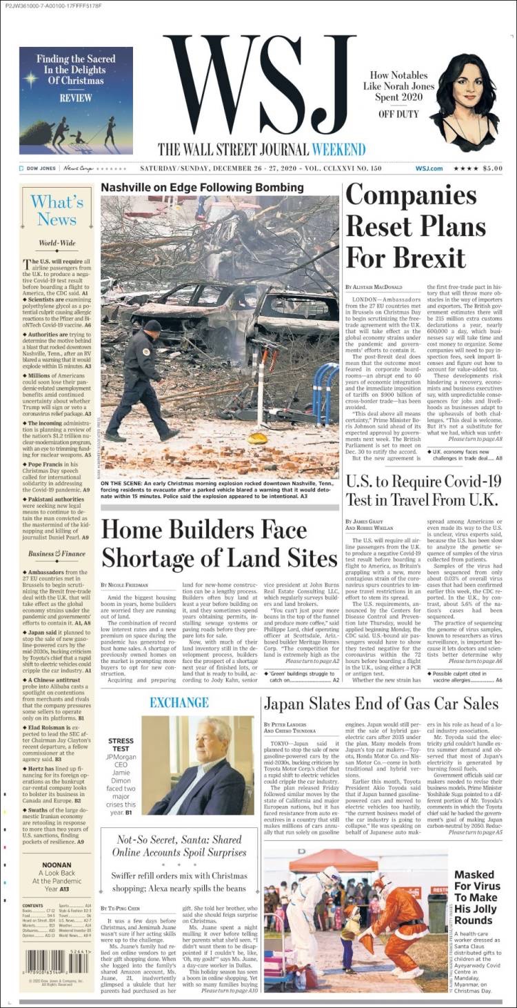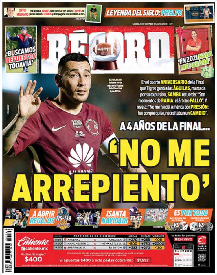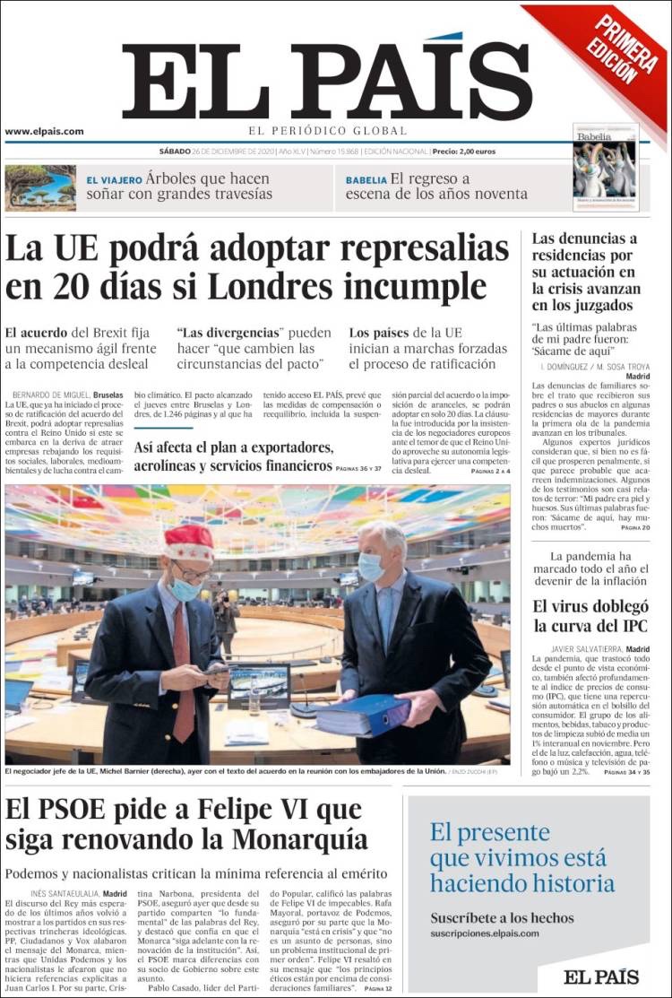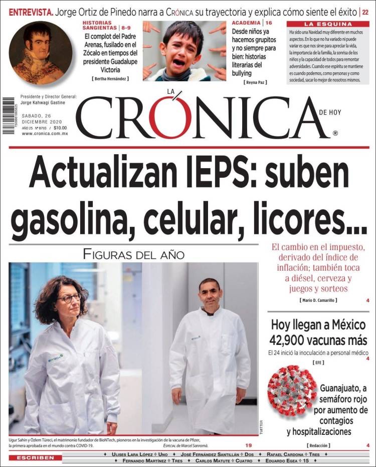 PRIMERAS PLANAS EN MEXICO Y EL MUNDO DEL 26 DE DICIEMBRE DE 2020