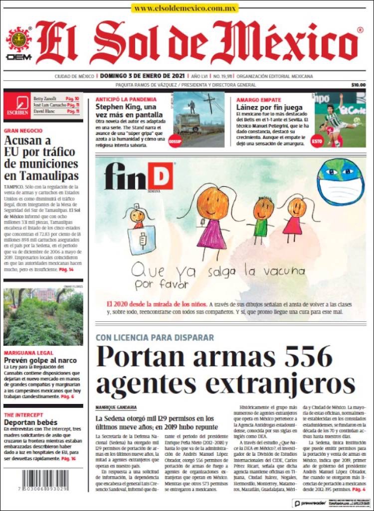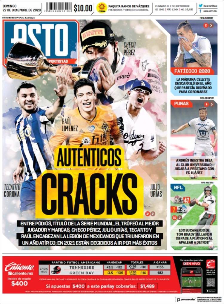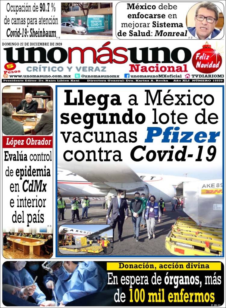 PRIMERAS PLANAS EN MEXICO Y EL MUNDO DEL 27 DE DICIEMBRE DE 2020v