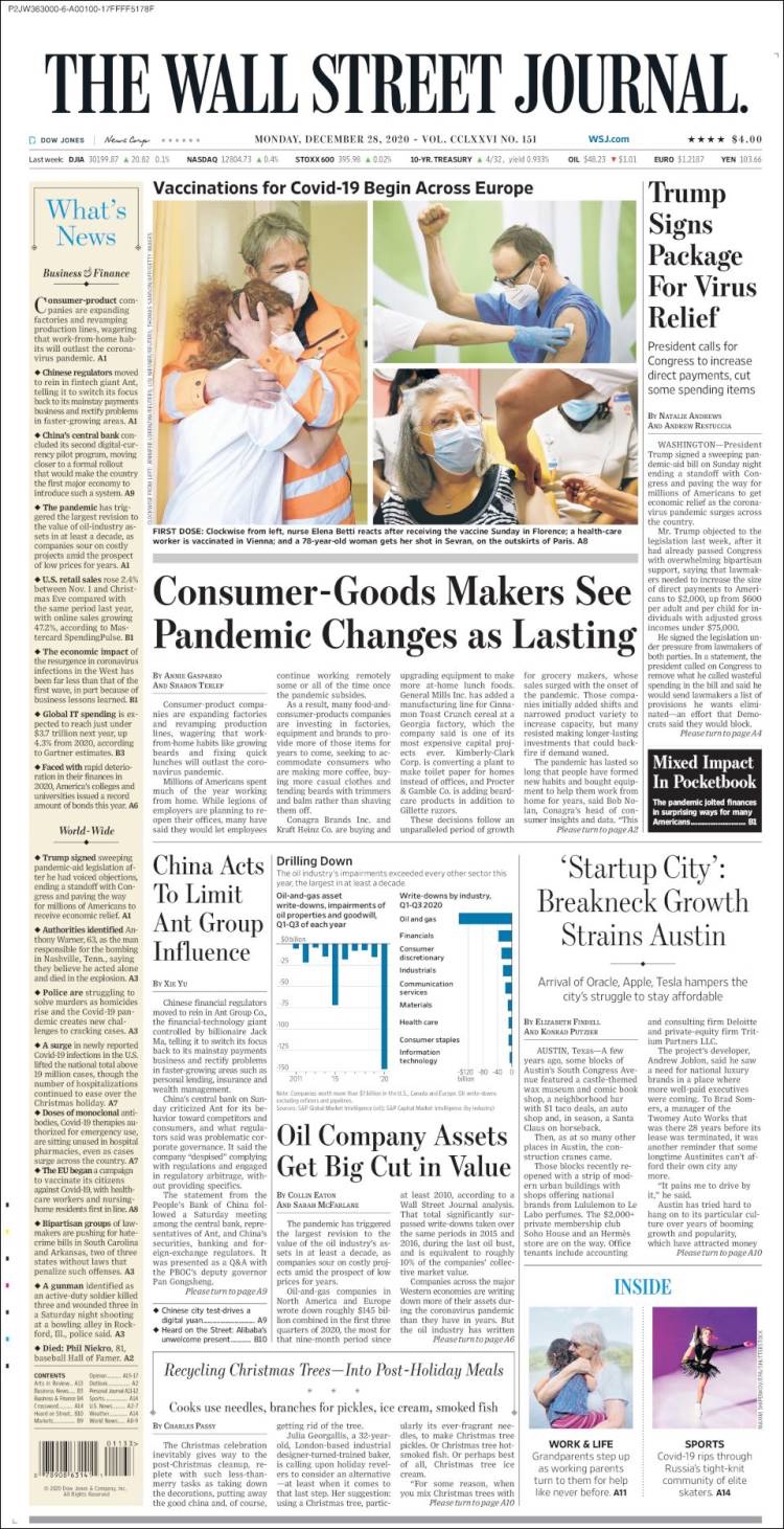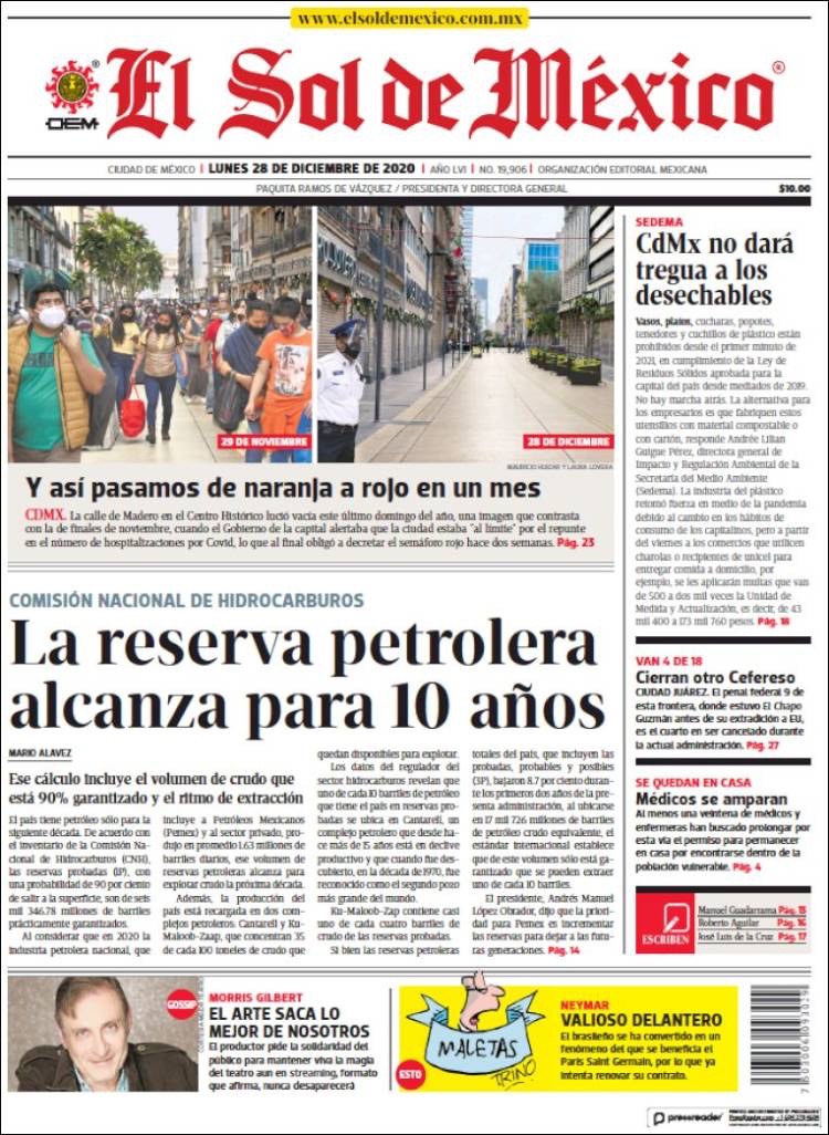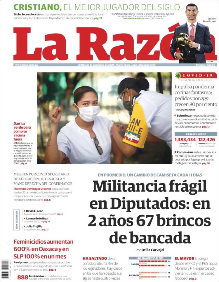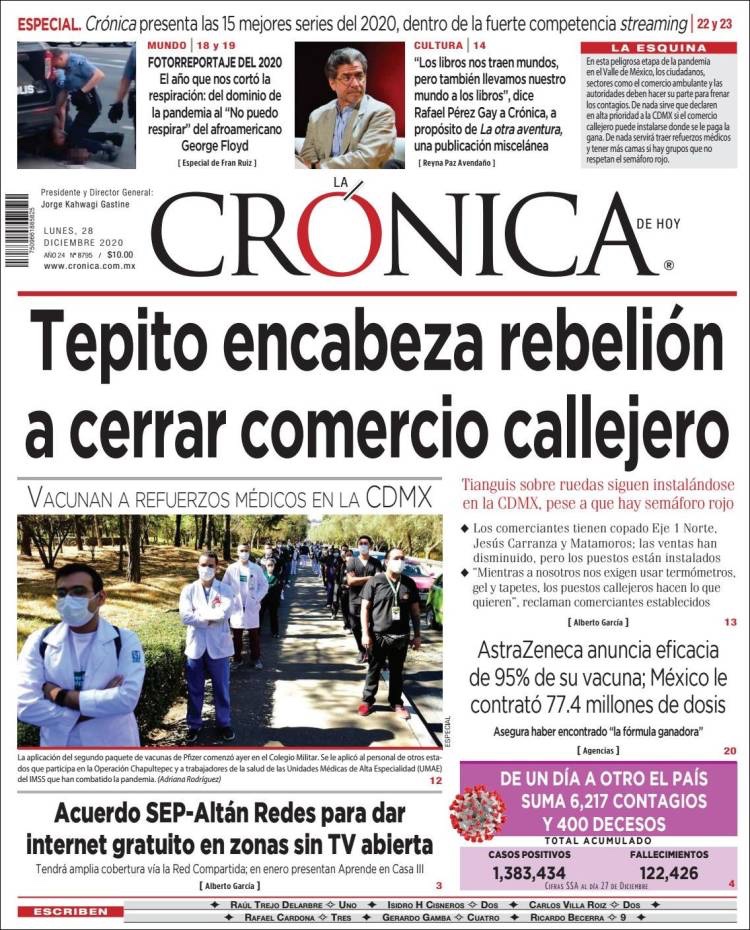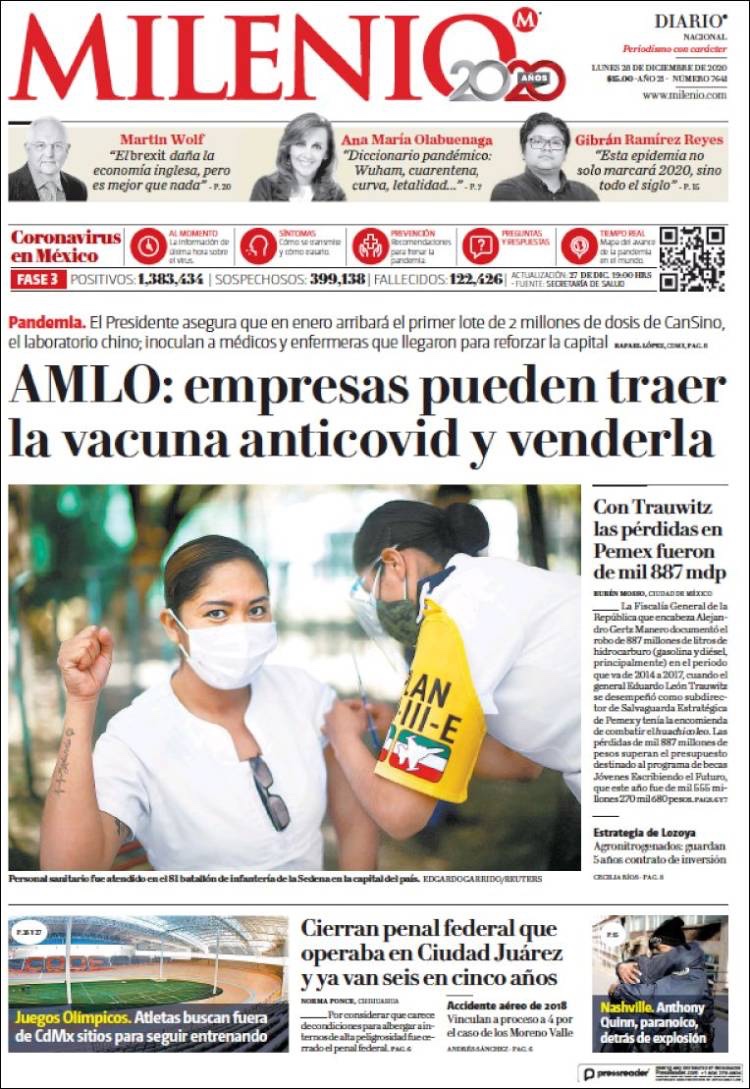 PRIMERAS PLANAS EN MEXICO Y EL MUNDO DEL 28 DE DICIEMBRE DE 2020