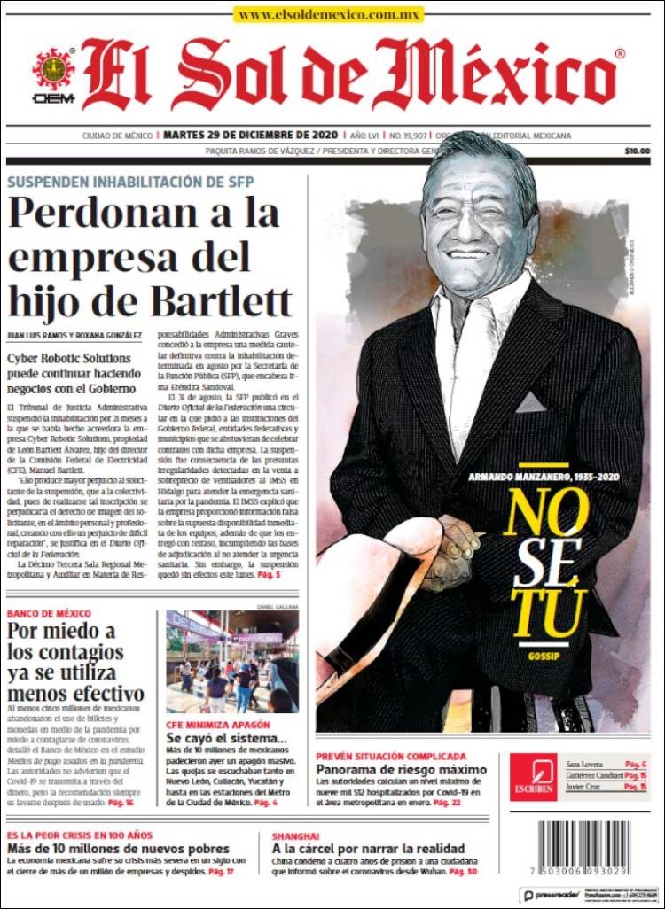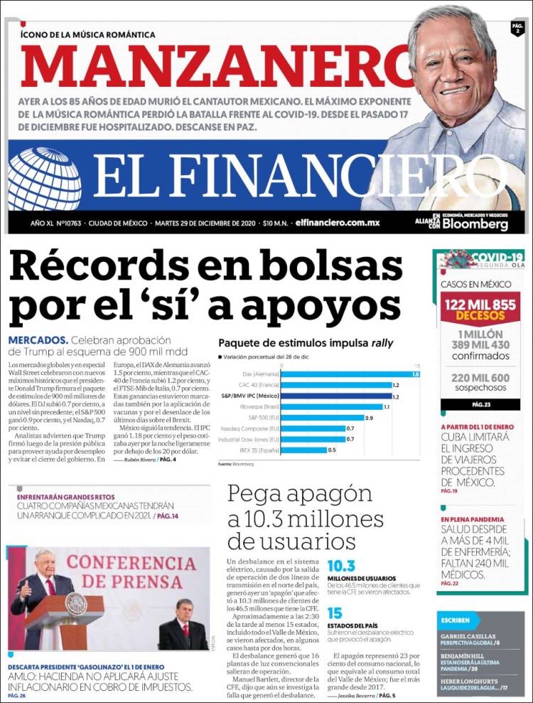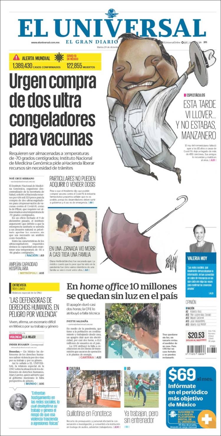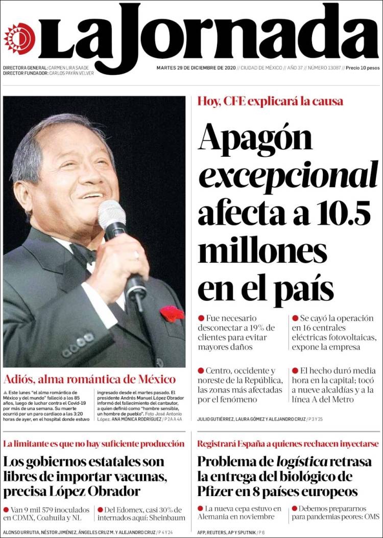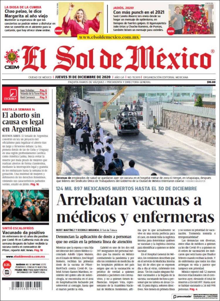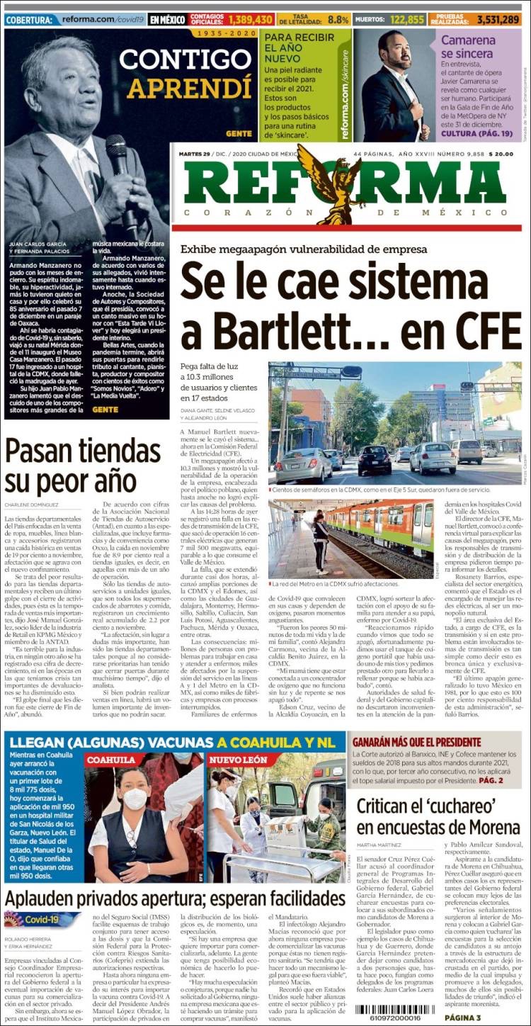 PRIMERAS PLANAS EN MEXICO Y EL MUNDO DEL 29 DE DICIEMBRE DE 2020
