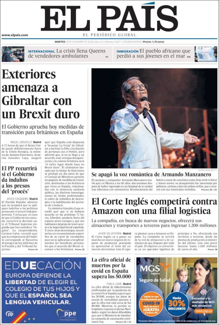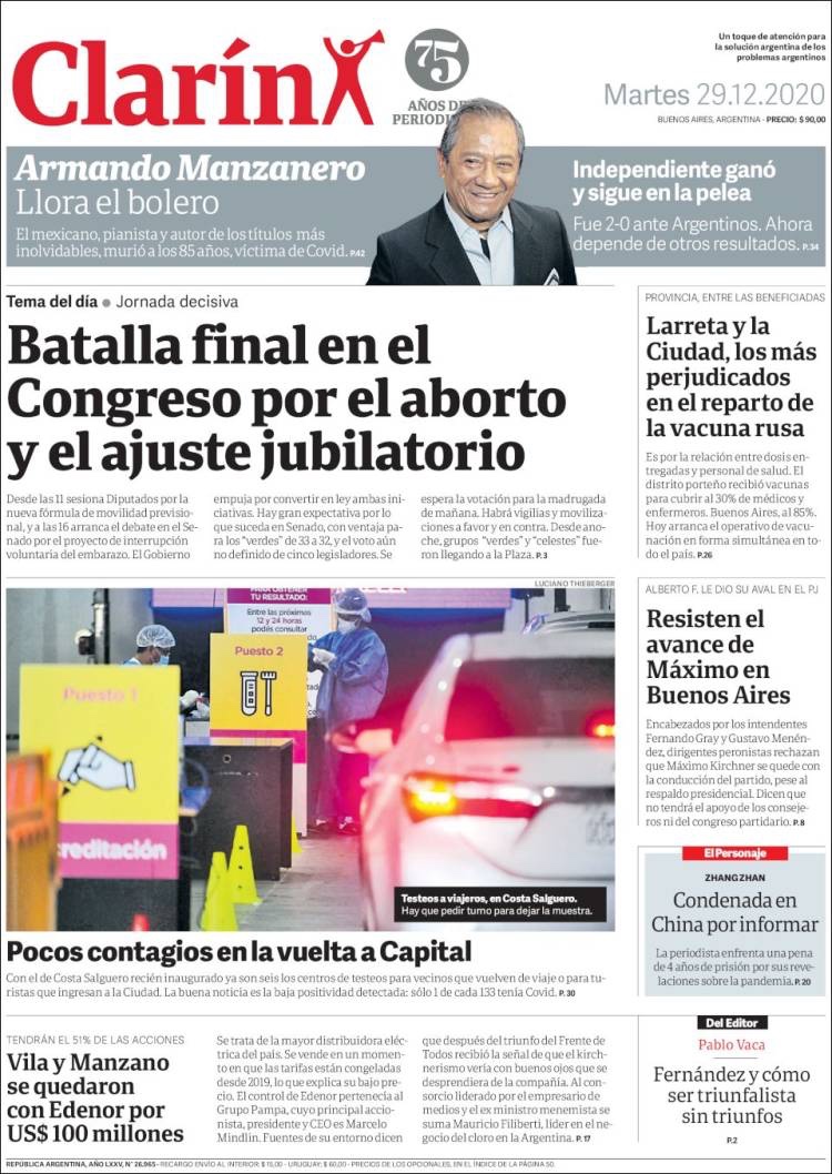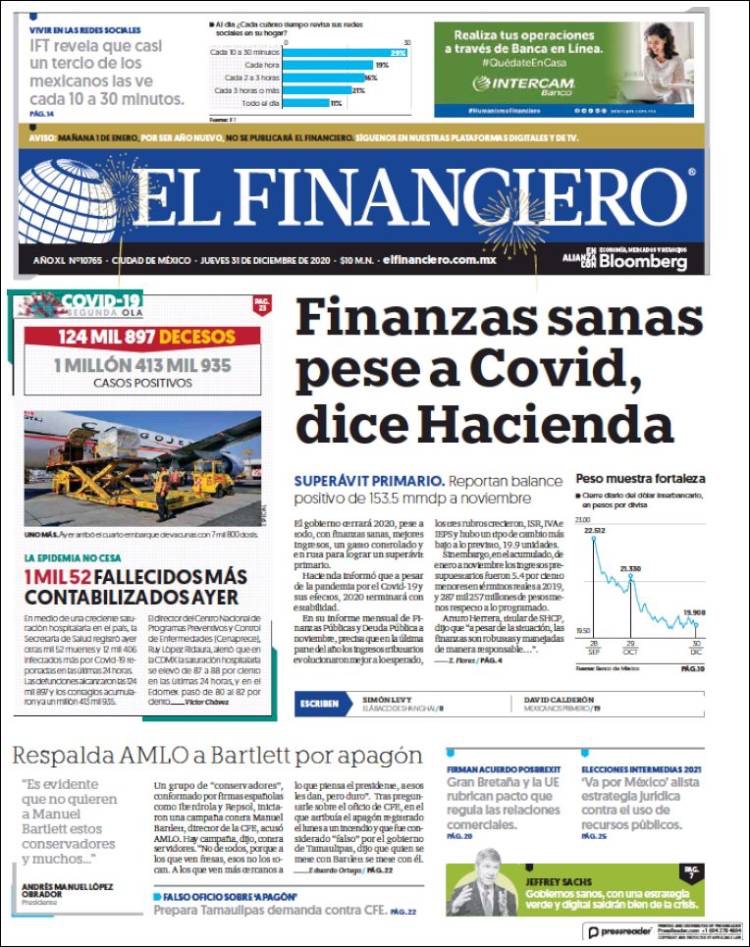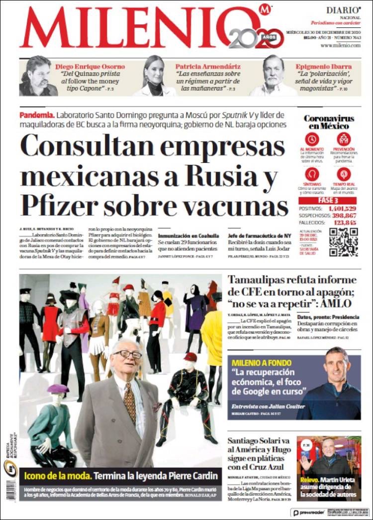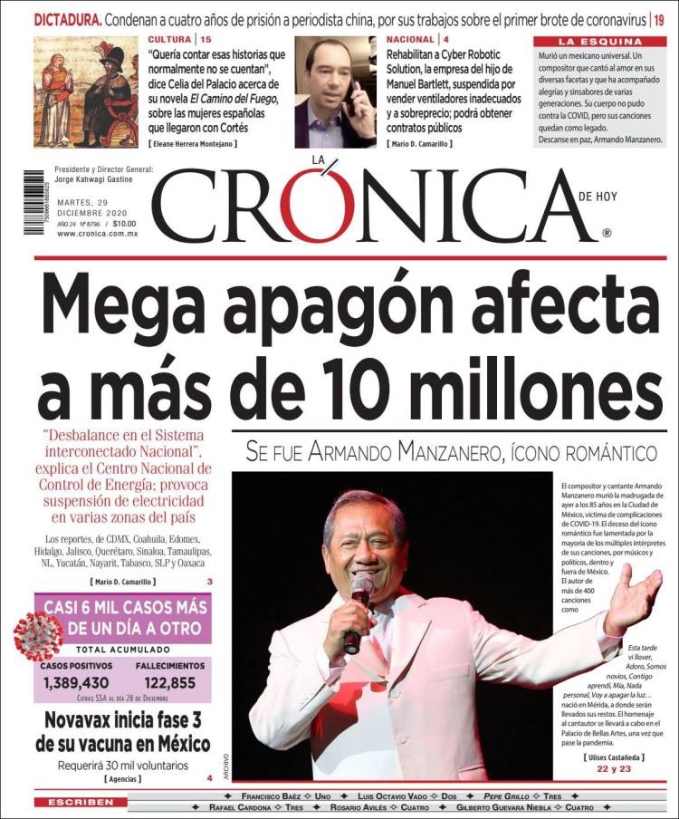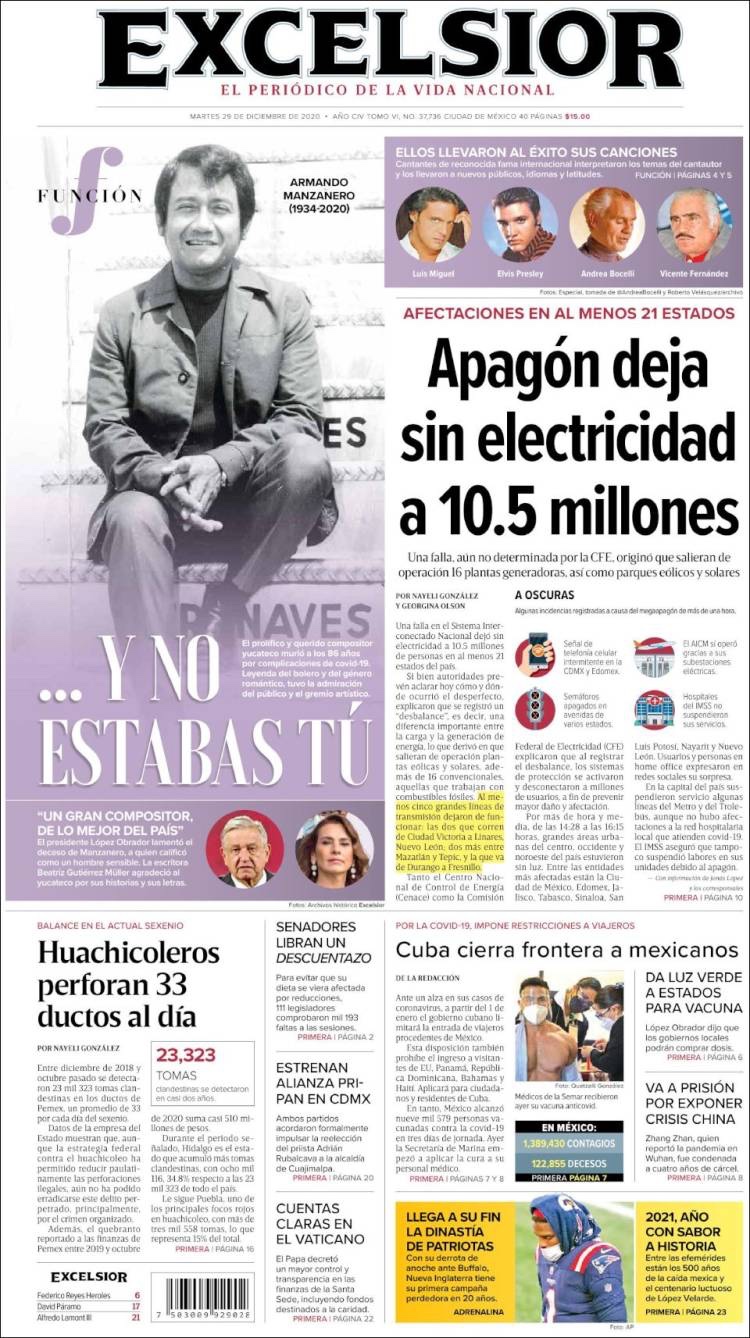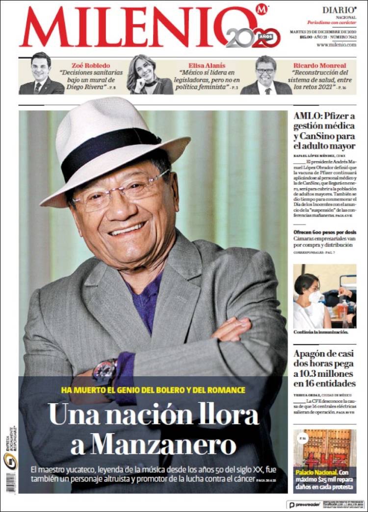 PRIMERAS PLANAS EN MEXICO Y EL MUNDO DEL 29 DE DICIEMBRE DE 2020