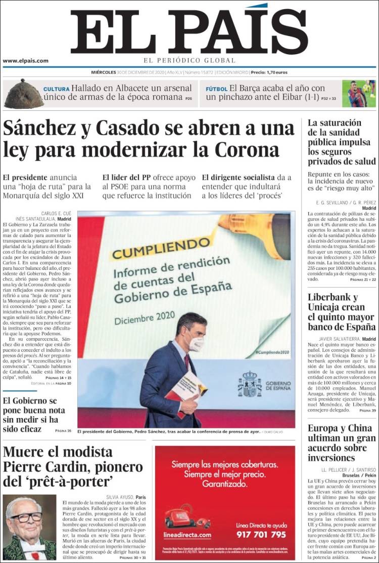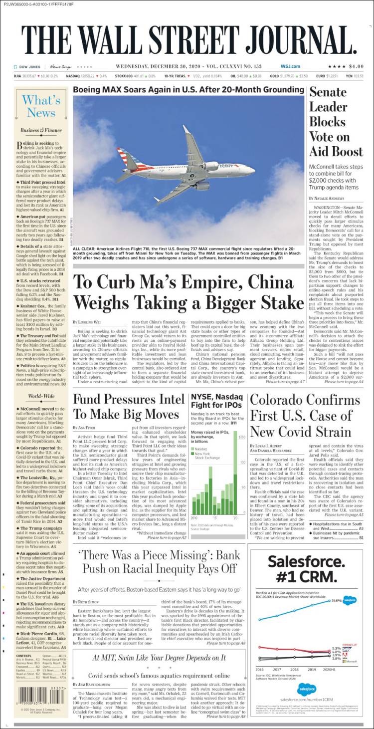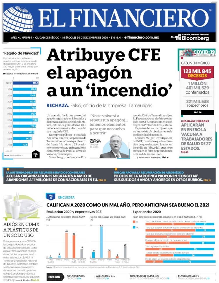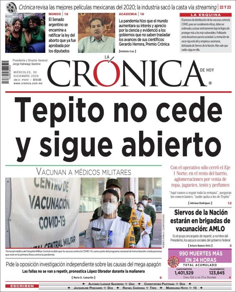 PRIMERAS PLANAS EN MEXICO Y EL MUNDO DEL 30 DE DICIEMBRE DE 2020