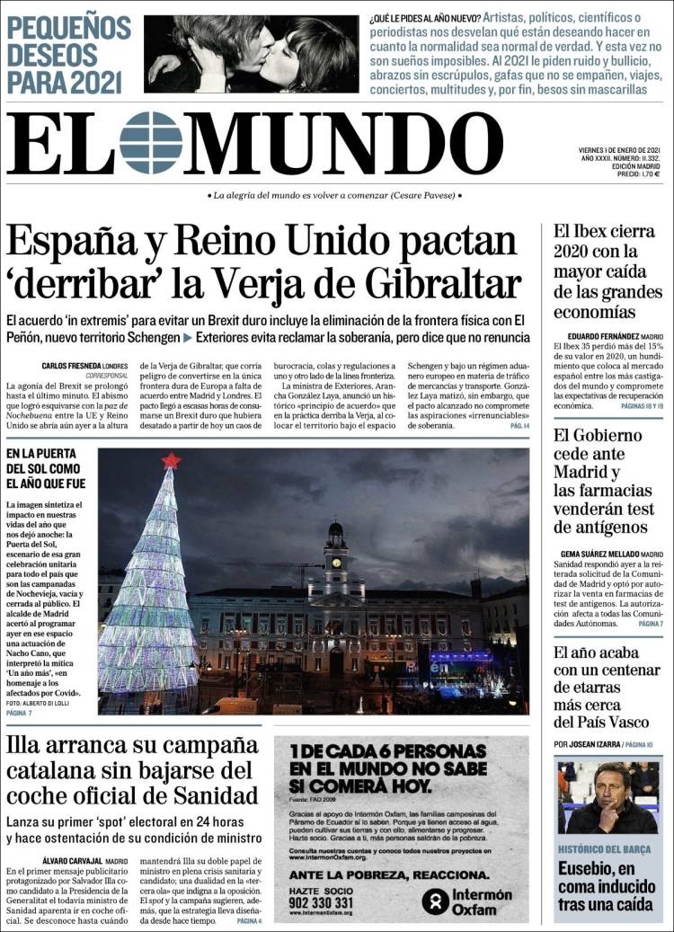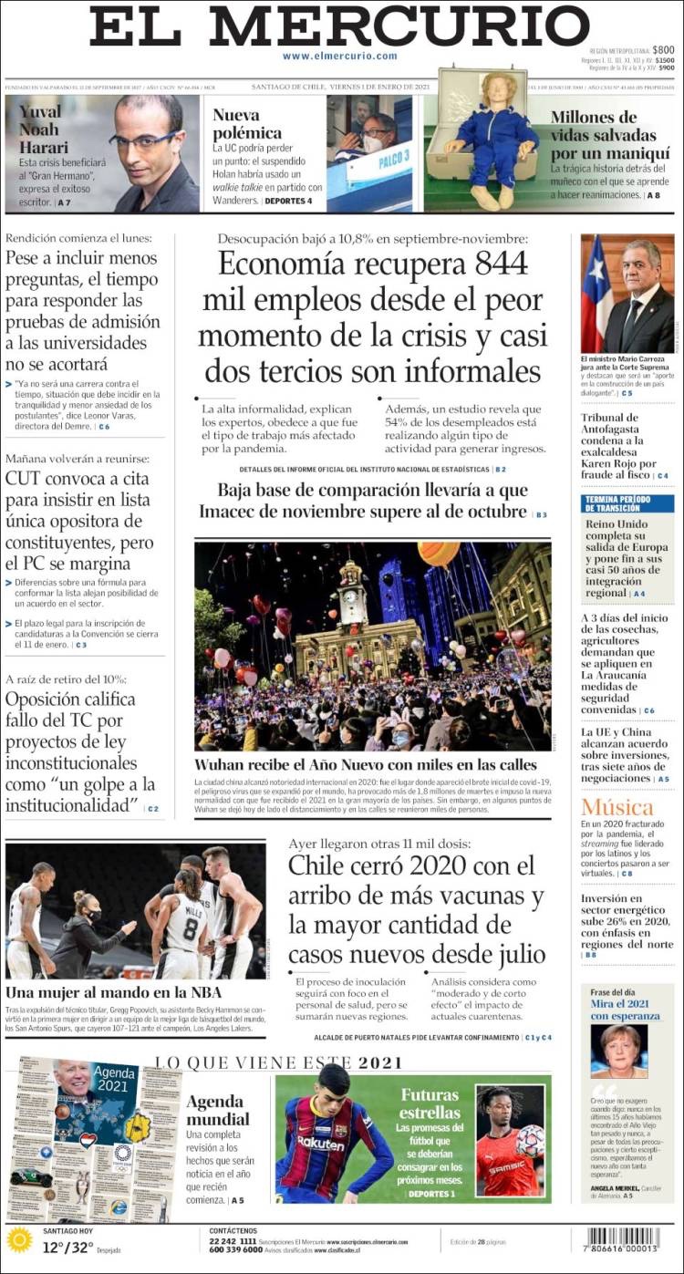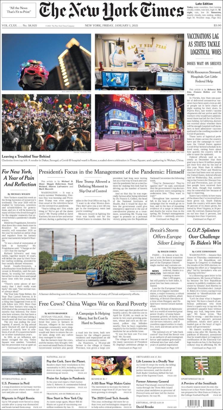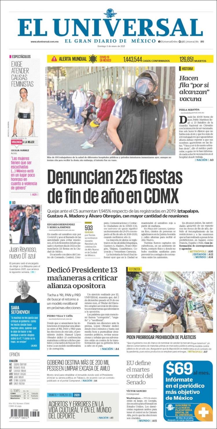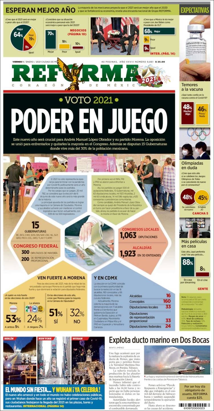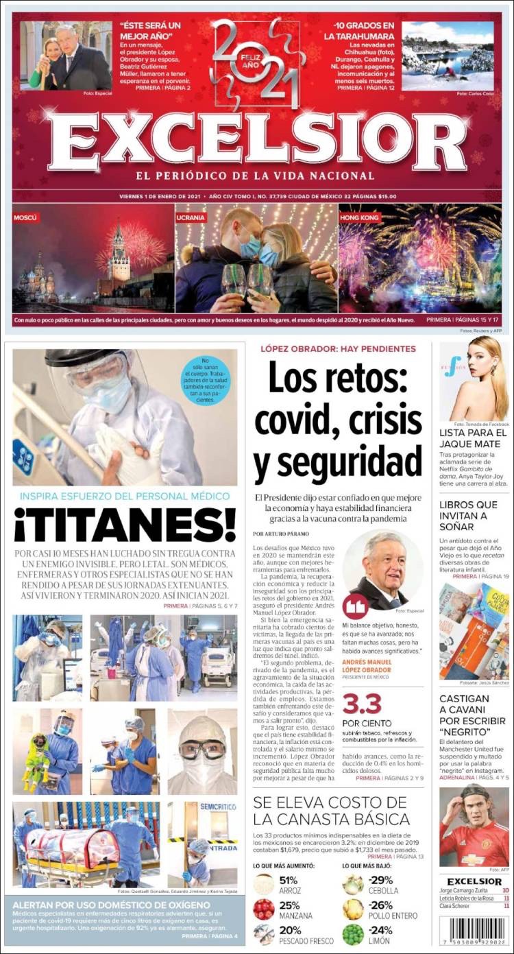 PRIMERAS PLANAS EN MEXICO Y EL MUNDO DEL 1 DE ENERO DE 2021