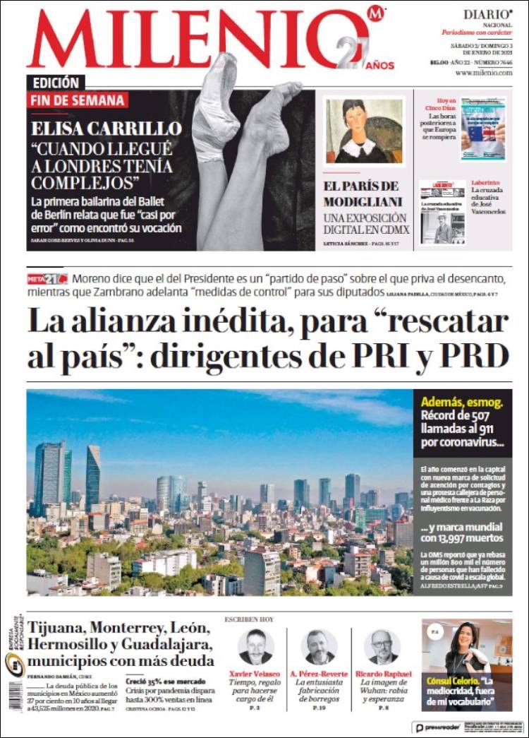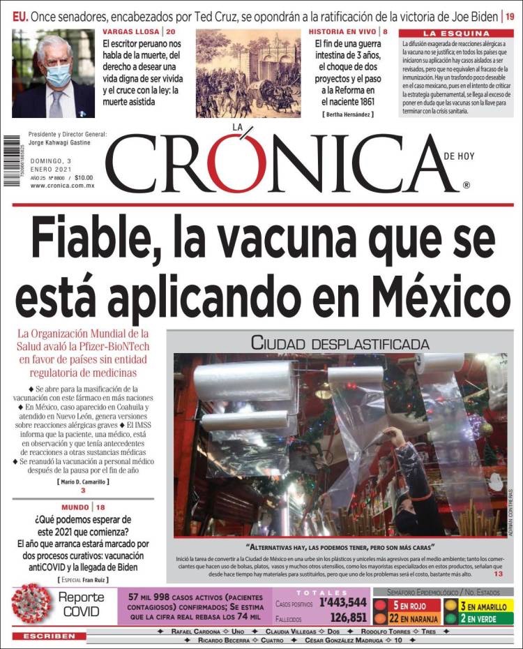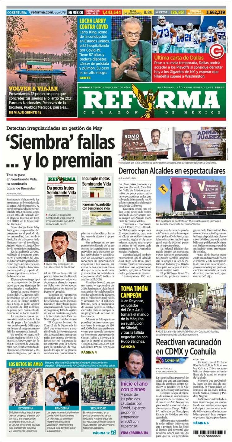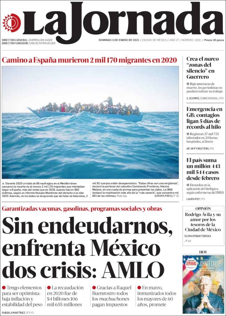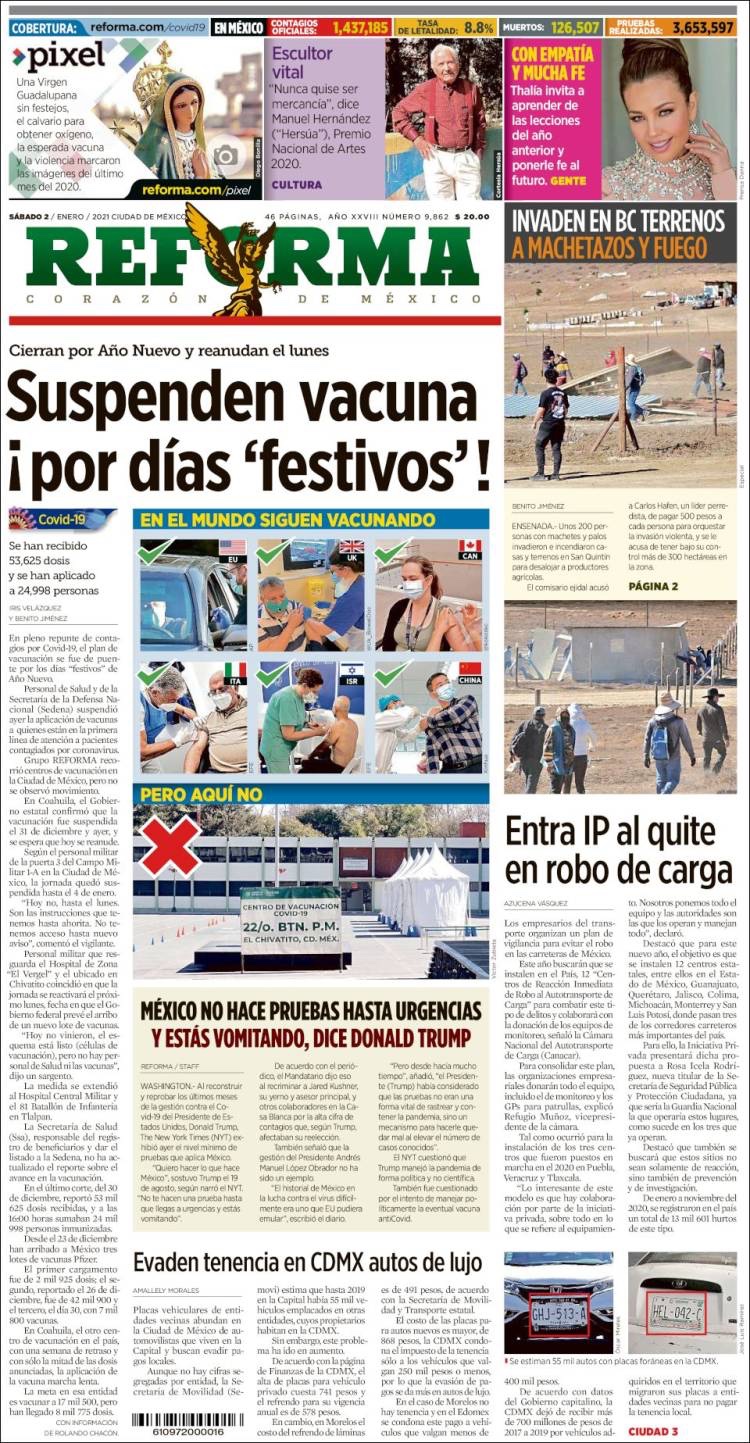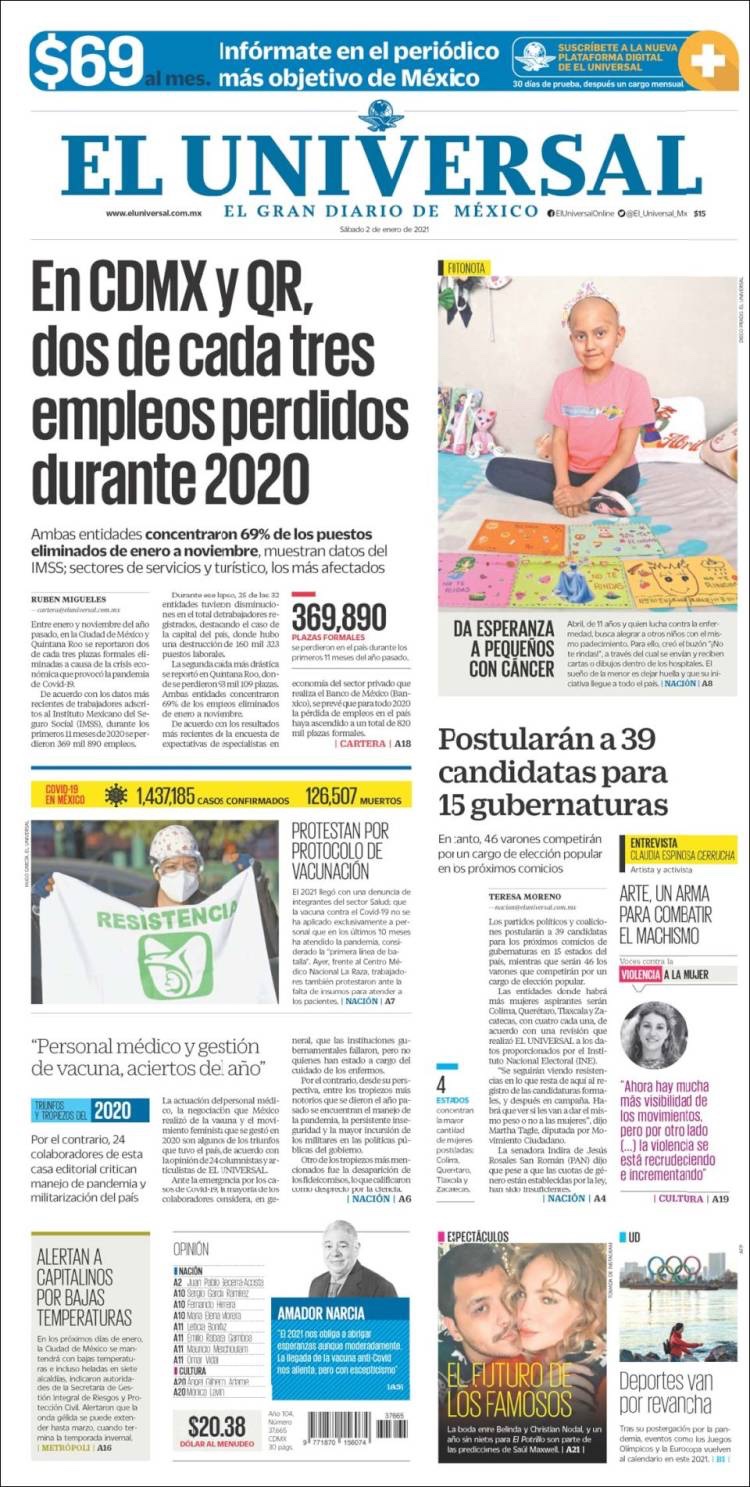 PRIMERAS PLANAS EN MEXICO Y EL MUNDO DEL 2 DE ENERO DE 2021