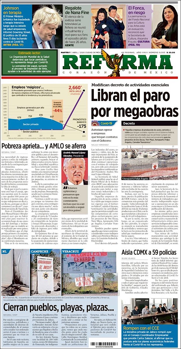 “Es a partir del 13 de marzo empezamos a ubicar una caída en el empleo formal, identificando que del 13 de marzo al 31 de marzo se perdieron unos 198 mil empleos, y 148 mil 845 en lo que va del primero de abril al día 6.