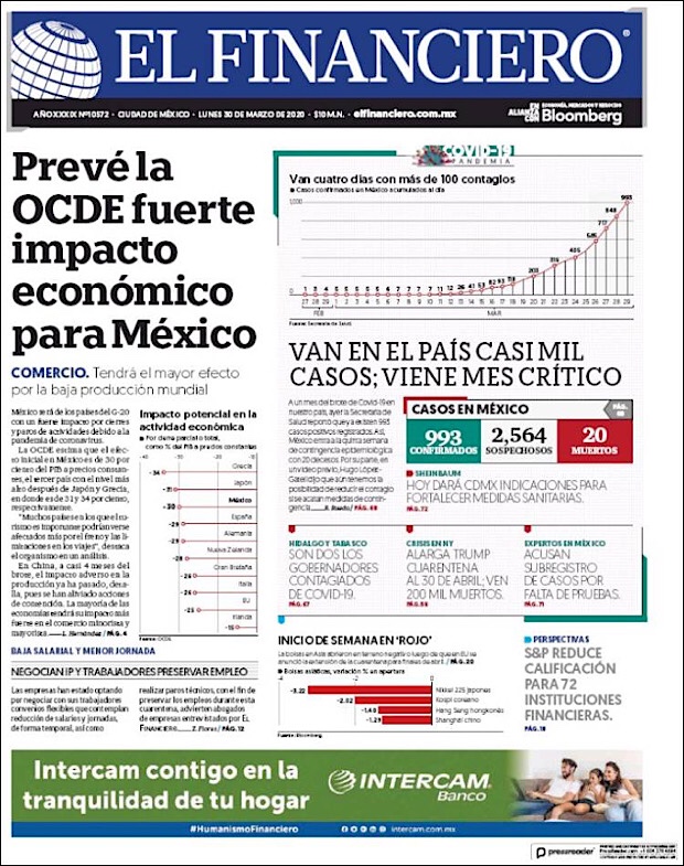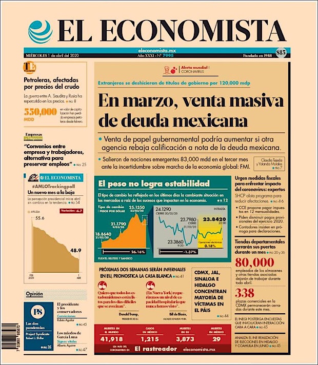 Sobre el tipo de cambio, los analistas del banco previeron que para el cierre de 2020, el dólar esté en 22.27 pesos, encima de los 19.57 pesos previstos en febrero.