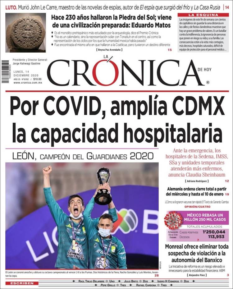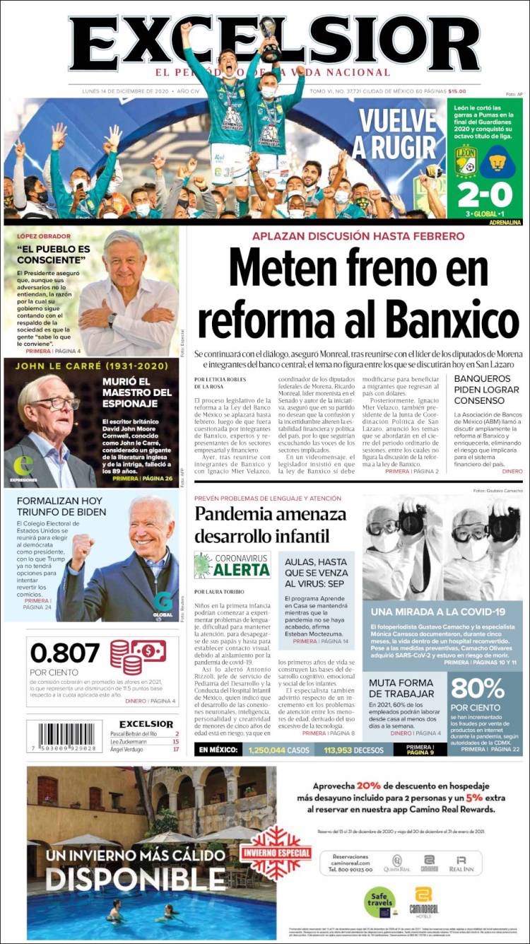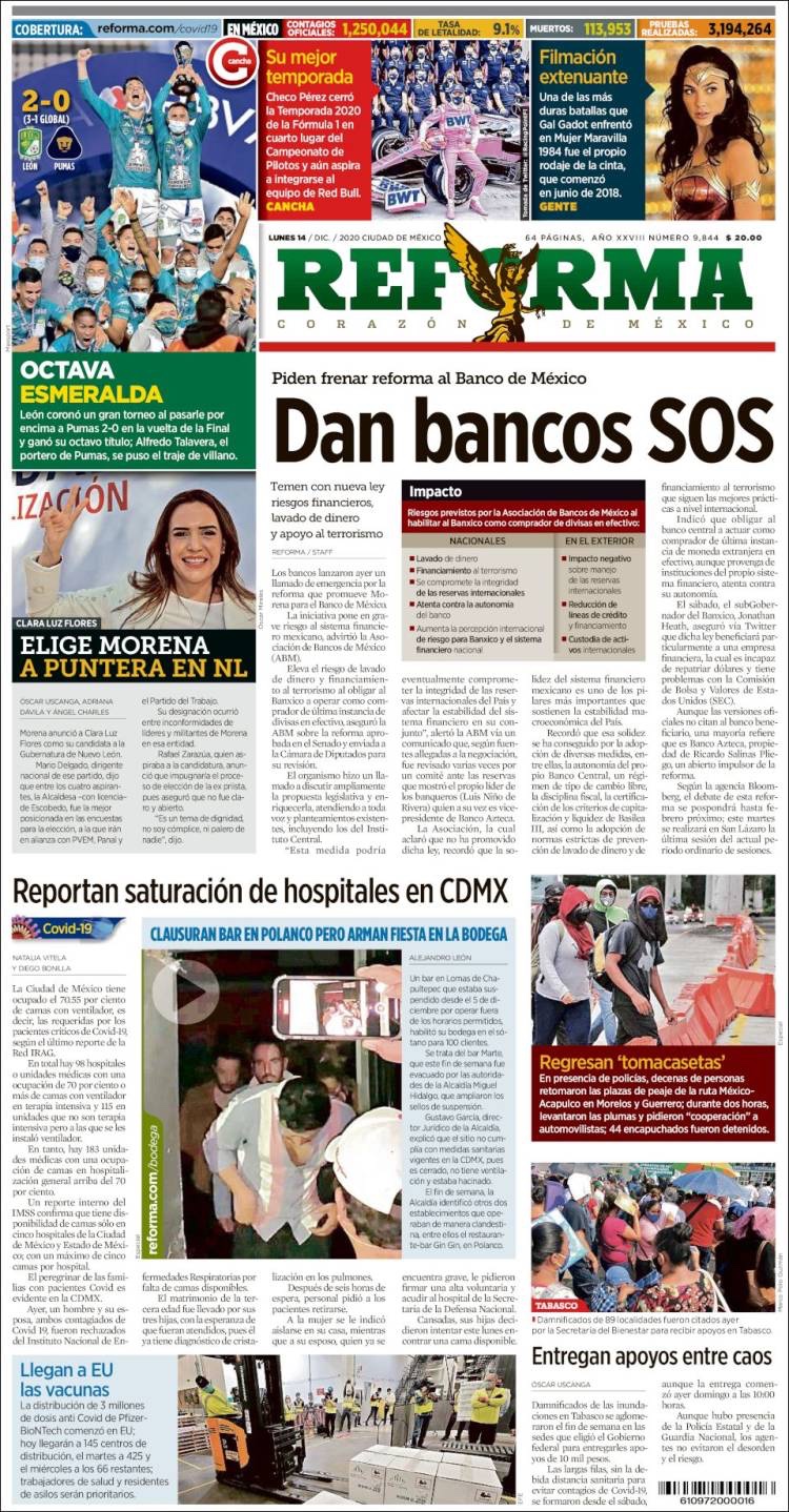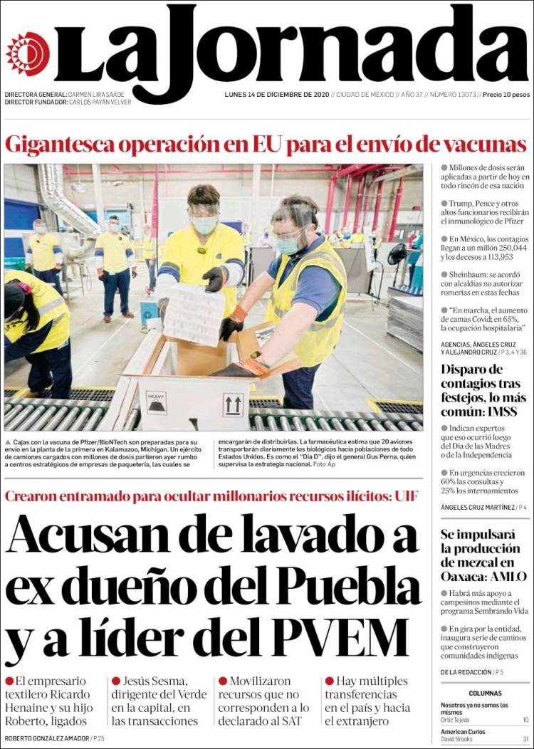 PRIMERAS PLANAS EN MEXICO Y EL MUNDO DEL 14 DE DICIEMBRE DE 2020