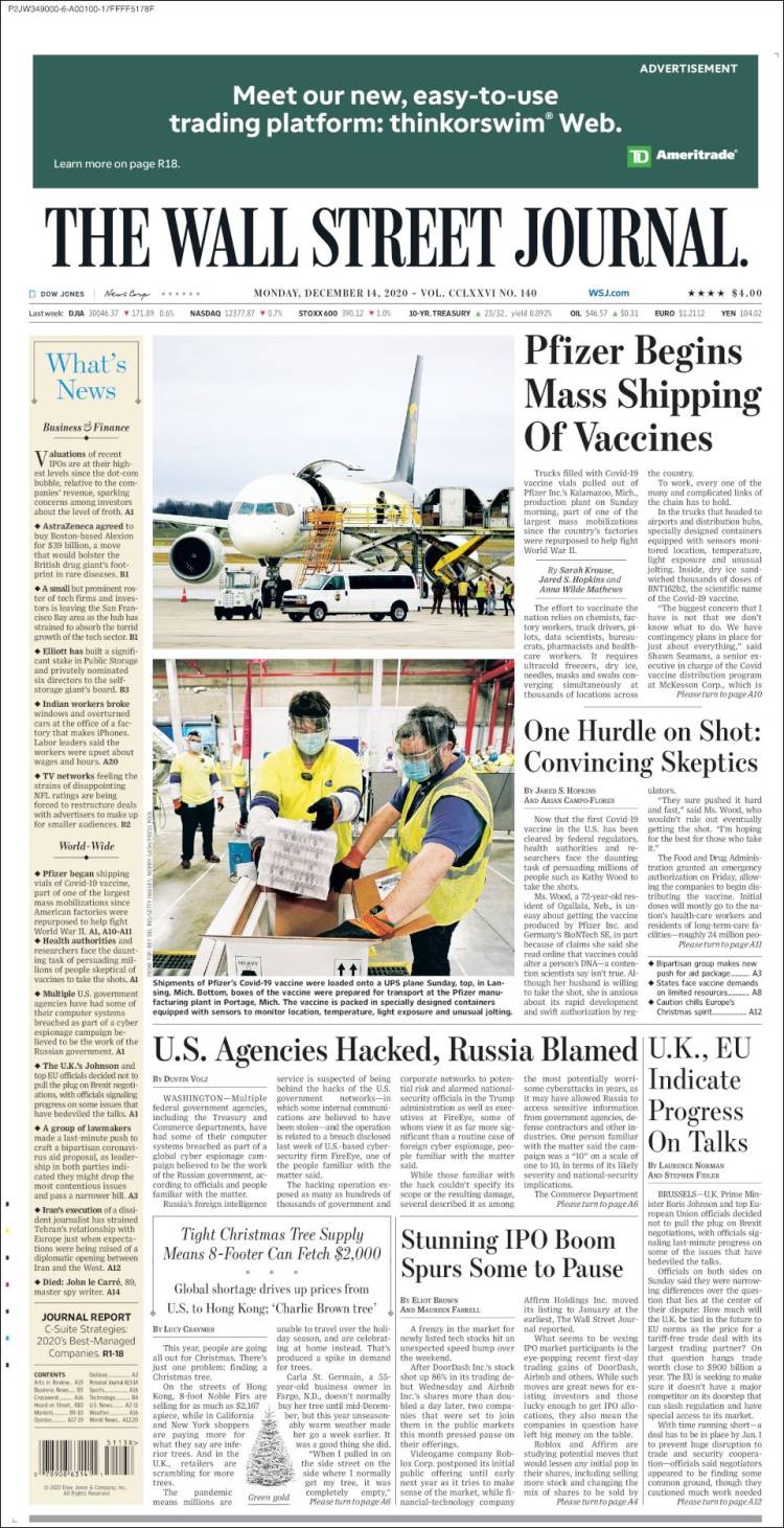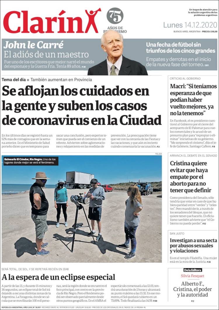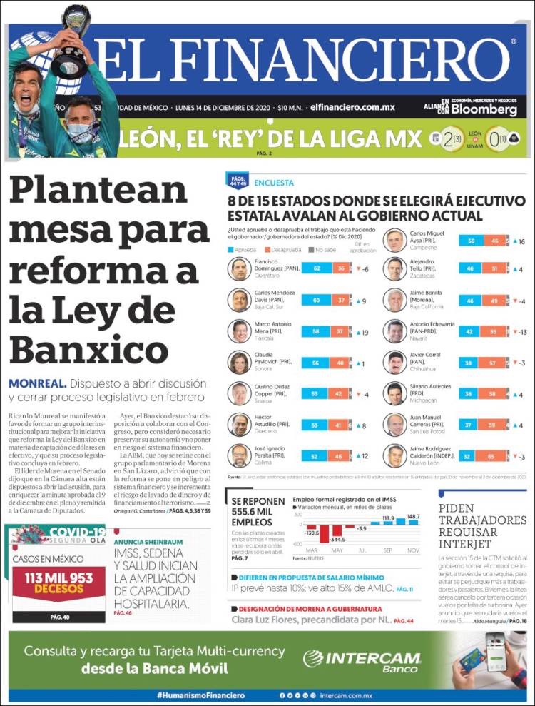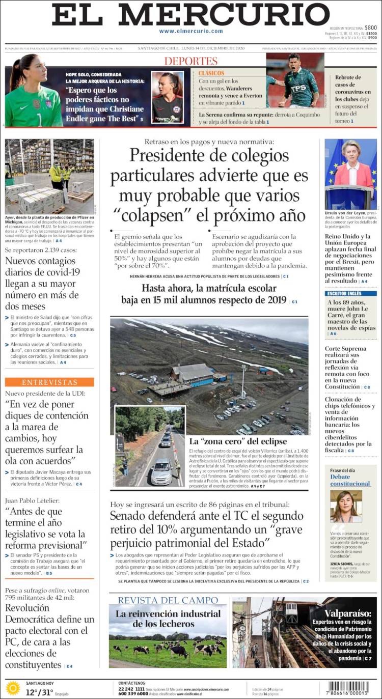 PRIMERAS PLANAS EN MEXICO Y EL MUNDO DEL 14 DE DICIEMBRE DE 2020