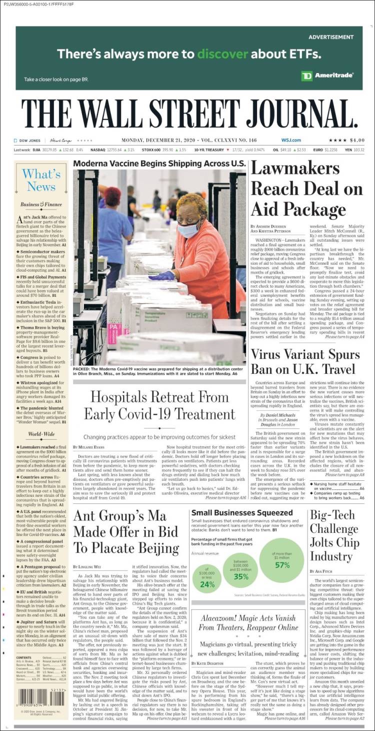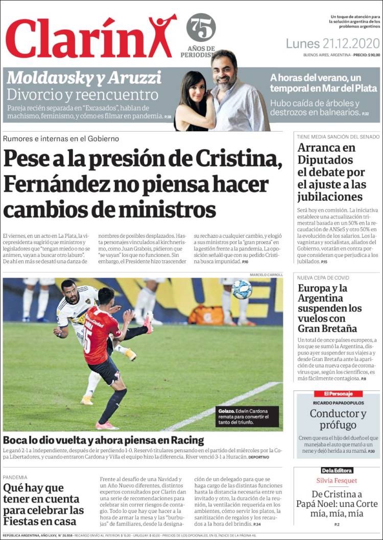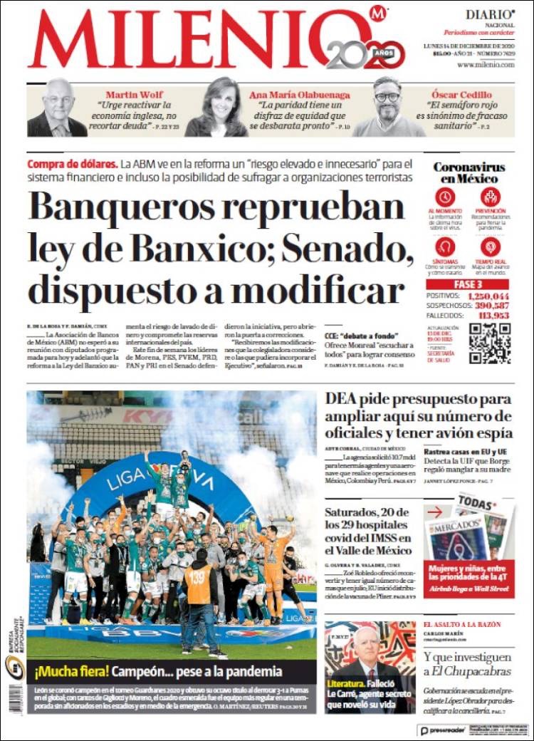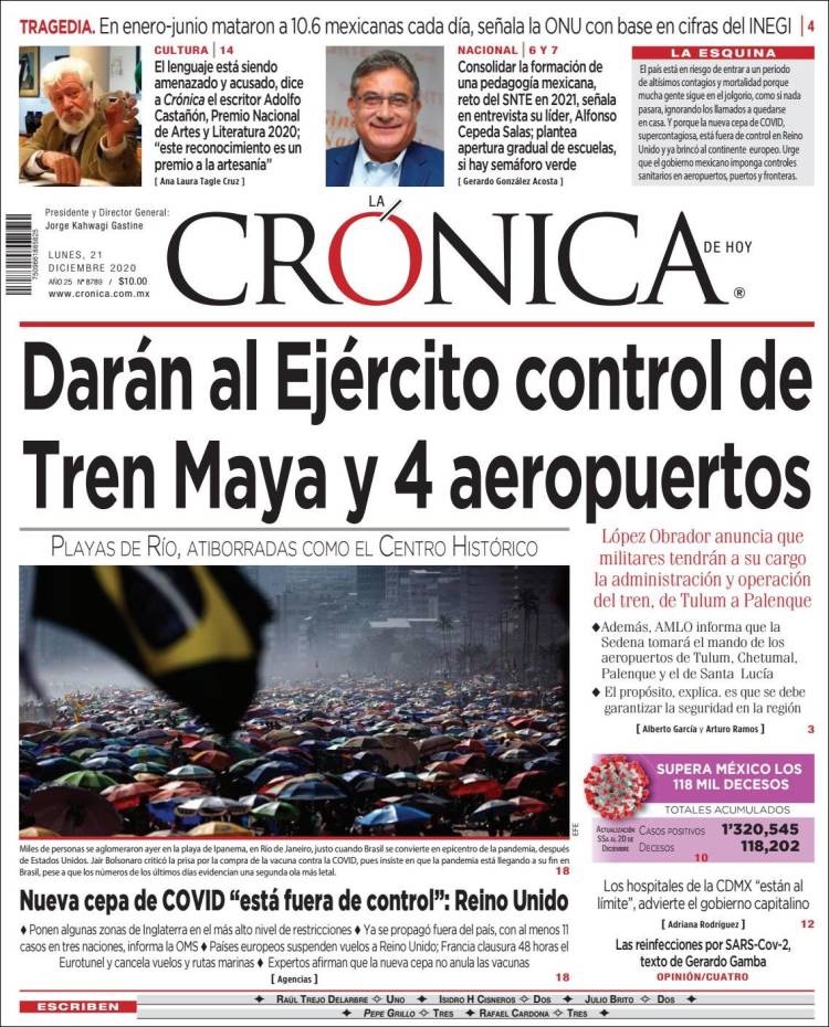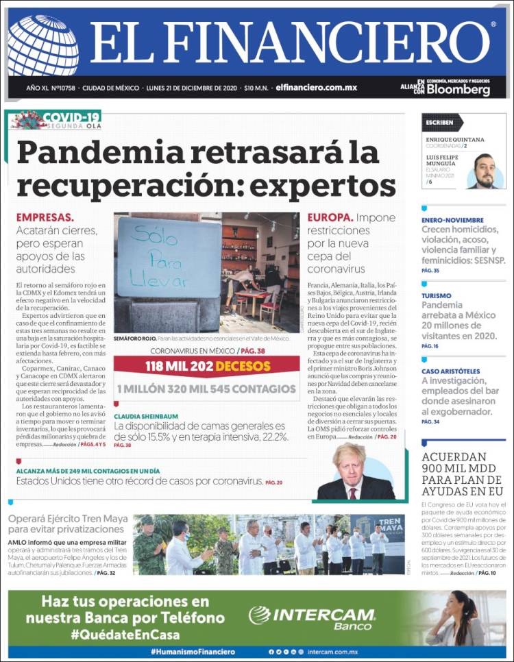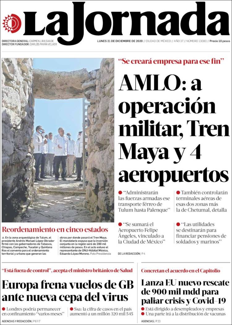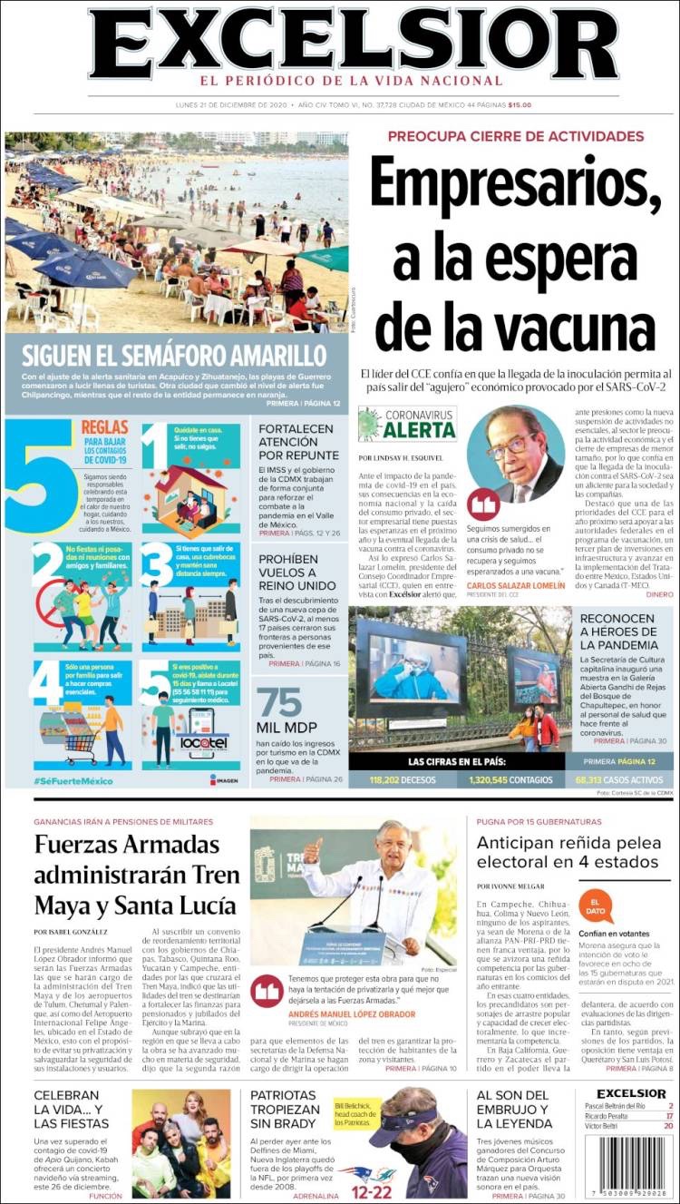 PRIMERAS PLANAS EN MEXICO Y EL MUNDO DEL 21 DE DICIEMBRE DE 2020