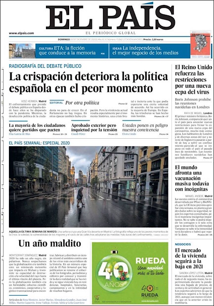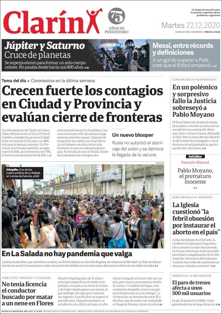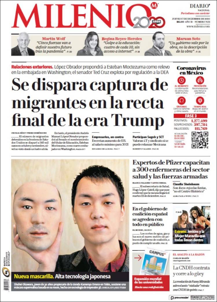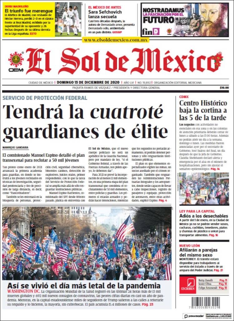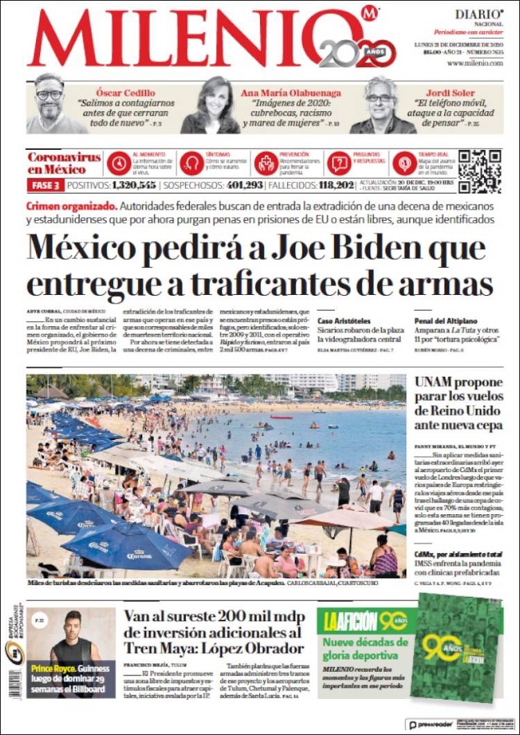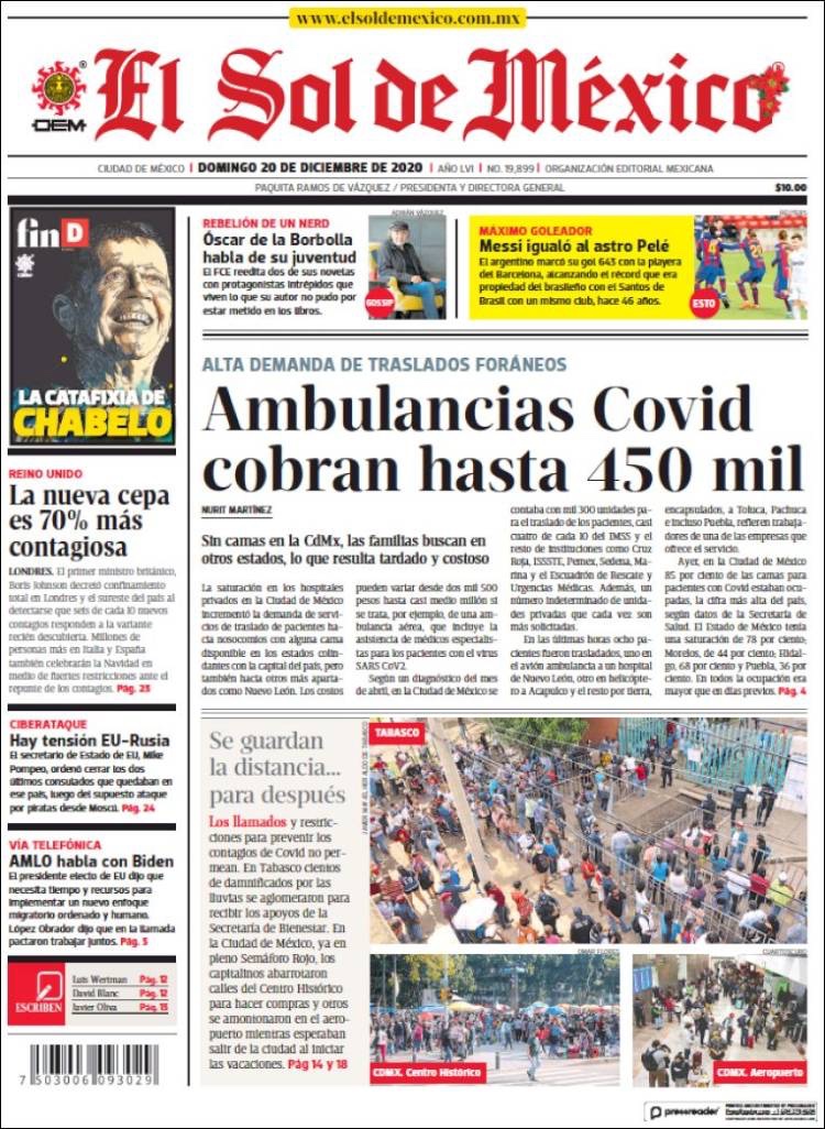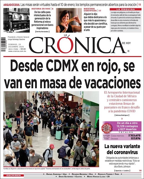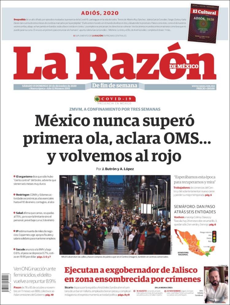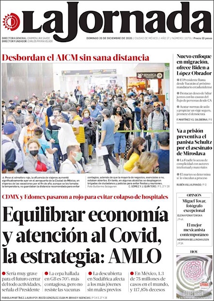 PRIMERAS PLANAS EN MEXICO Y EL MUNDO DEL 20 DE DICIEMBRE DE 2020