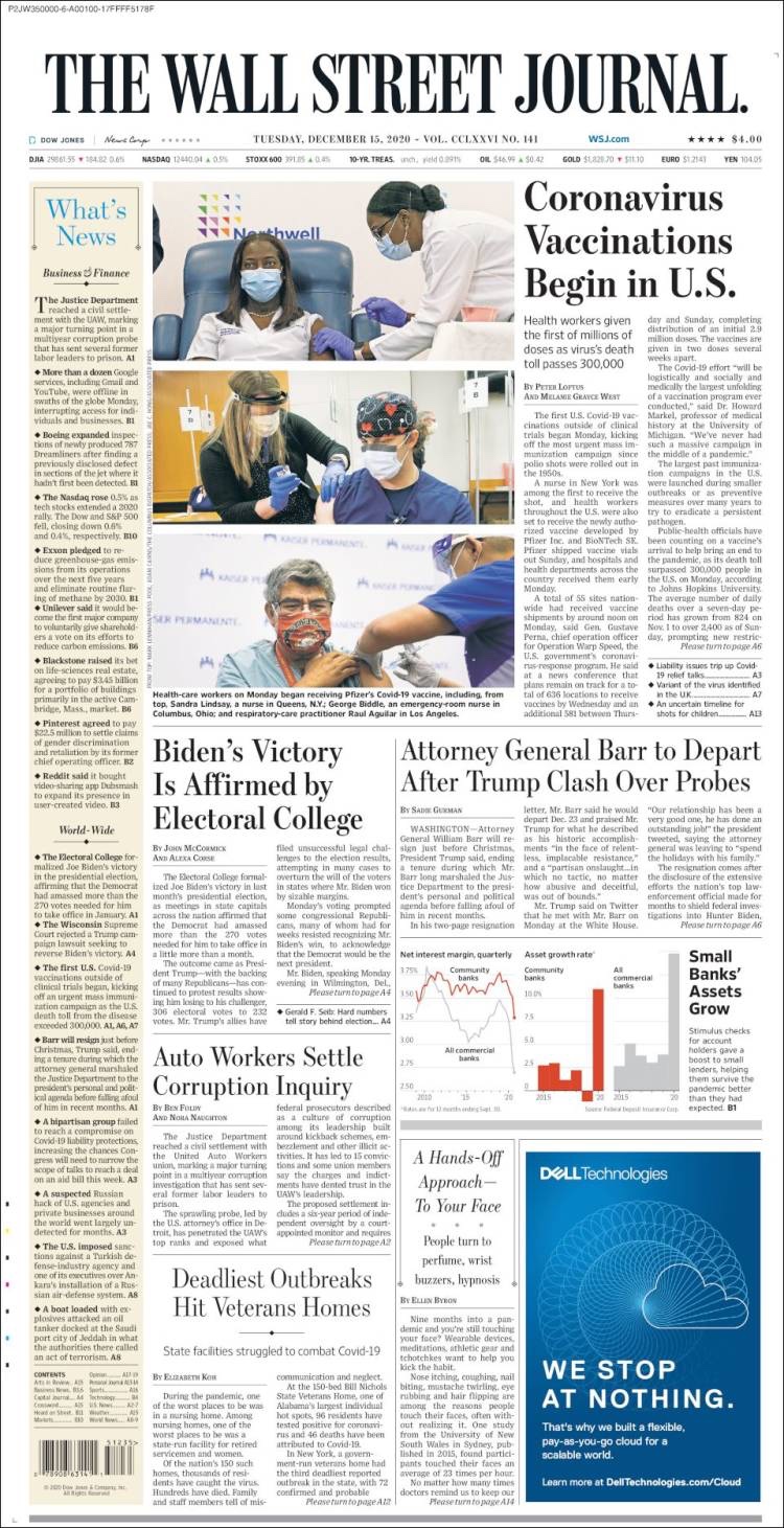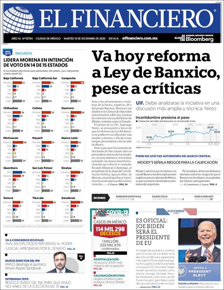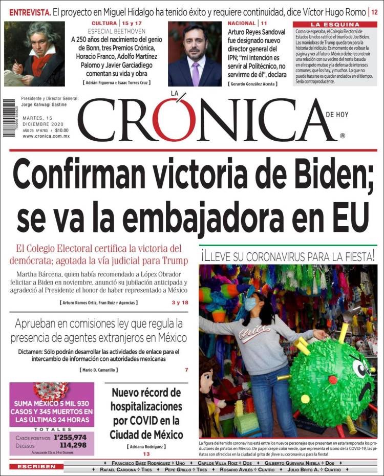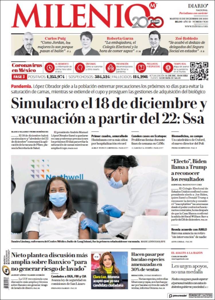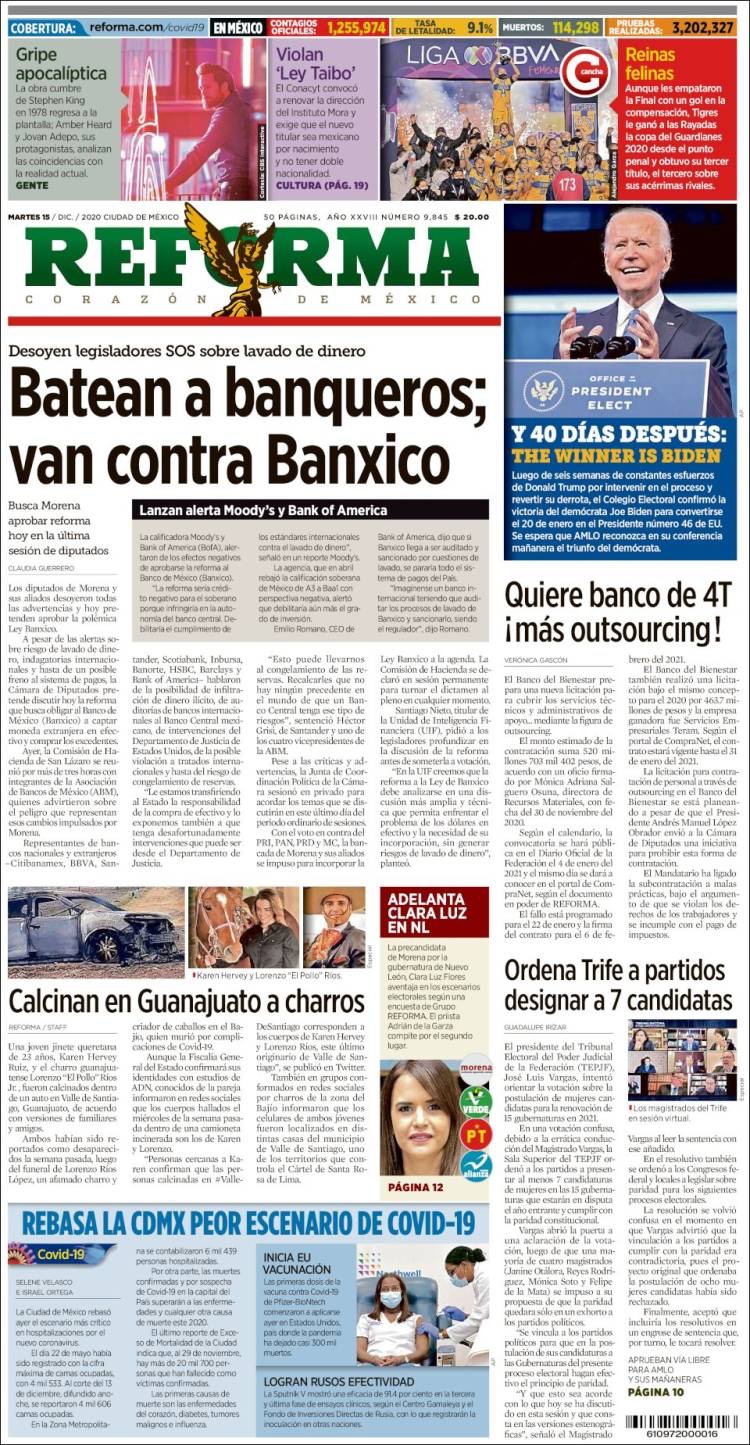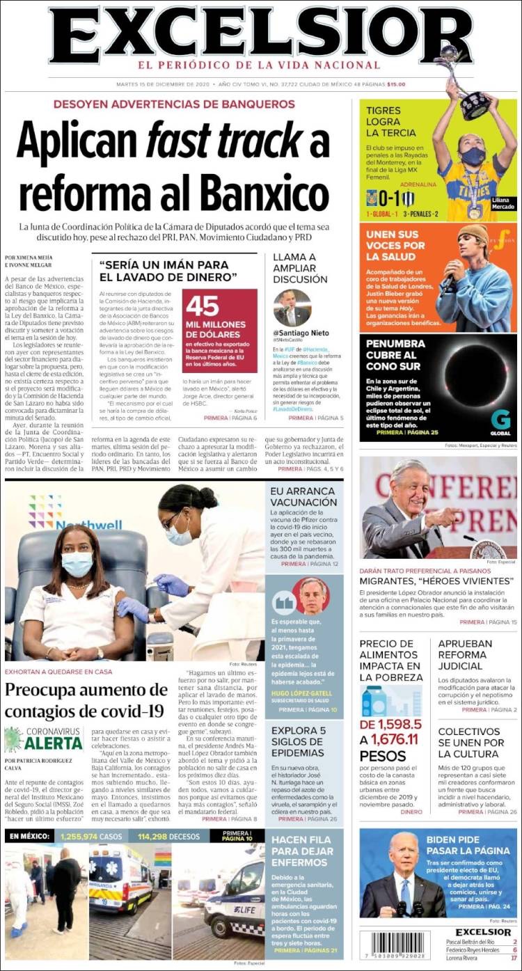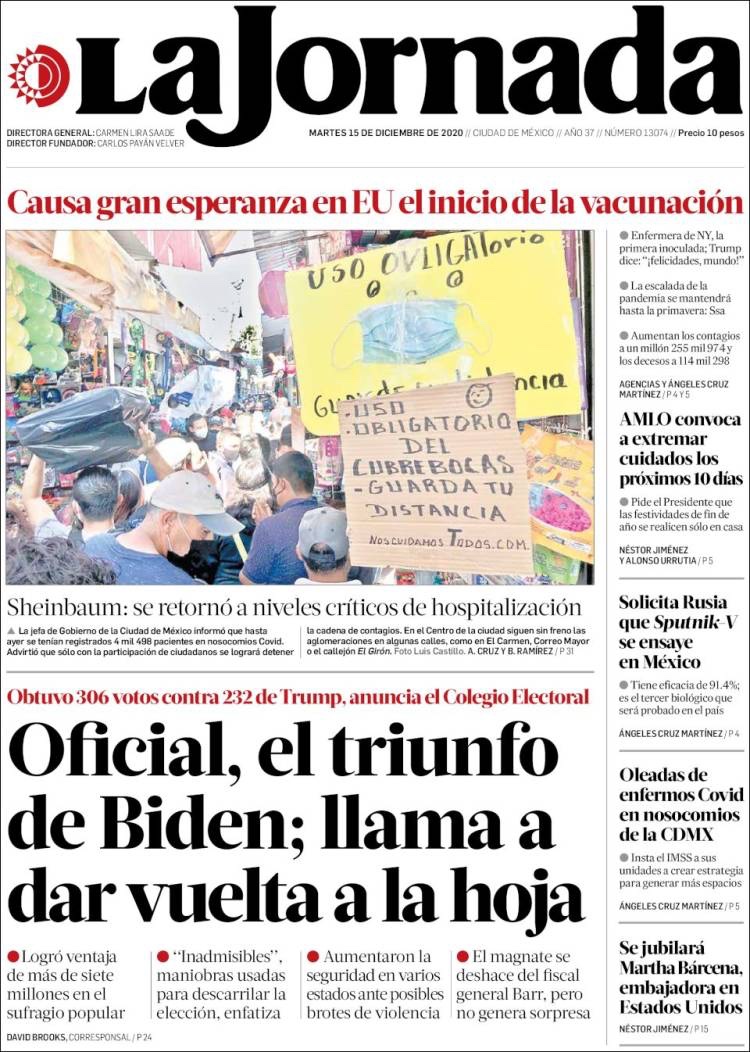 PRIMERAS PLANAS EN MEXICO Y EL MUNDO DEL 15 DE DICIEMBRE DE 2020