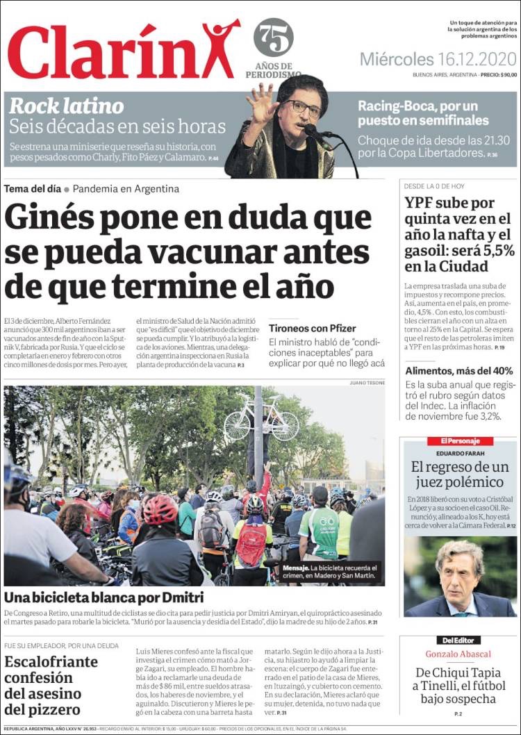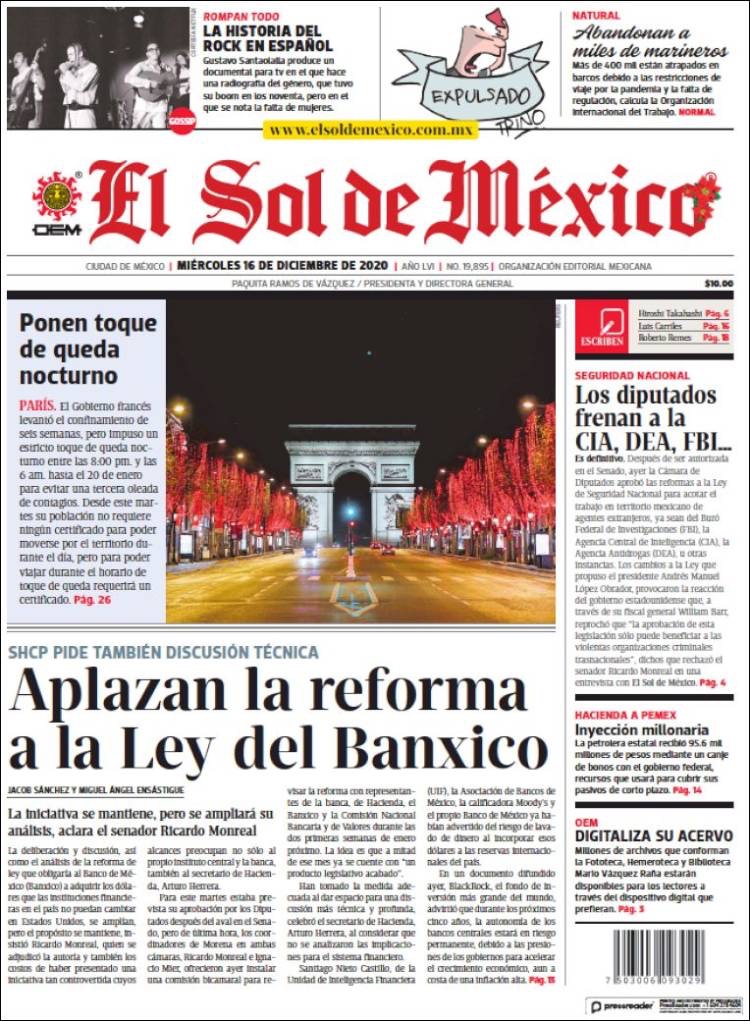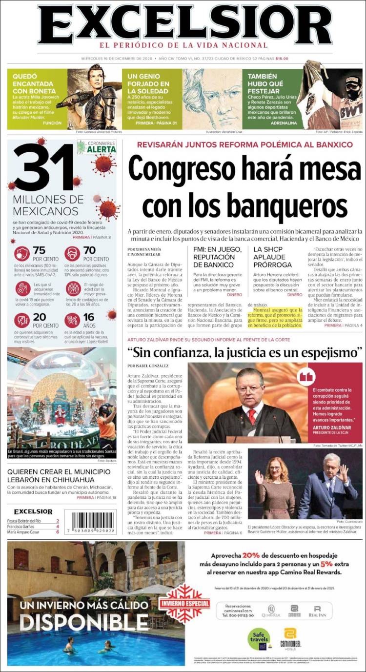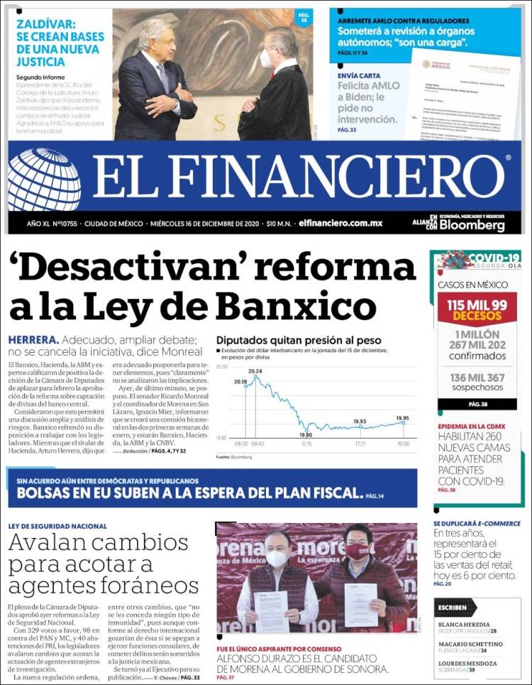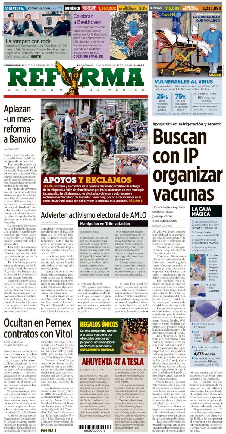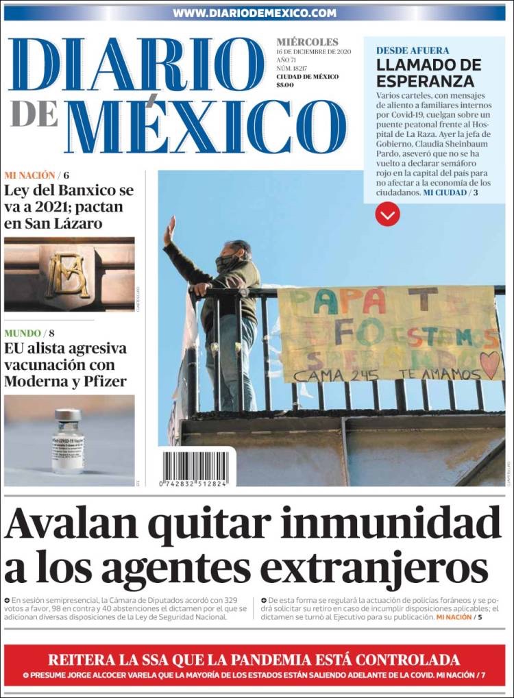 PRIMERAS PLANAS EN MEXICO Y EL MUNDO DEL 16 DE DICIEMBRE DE 2020