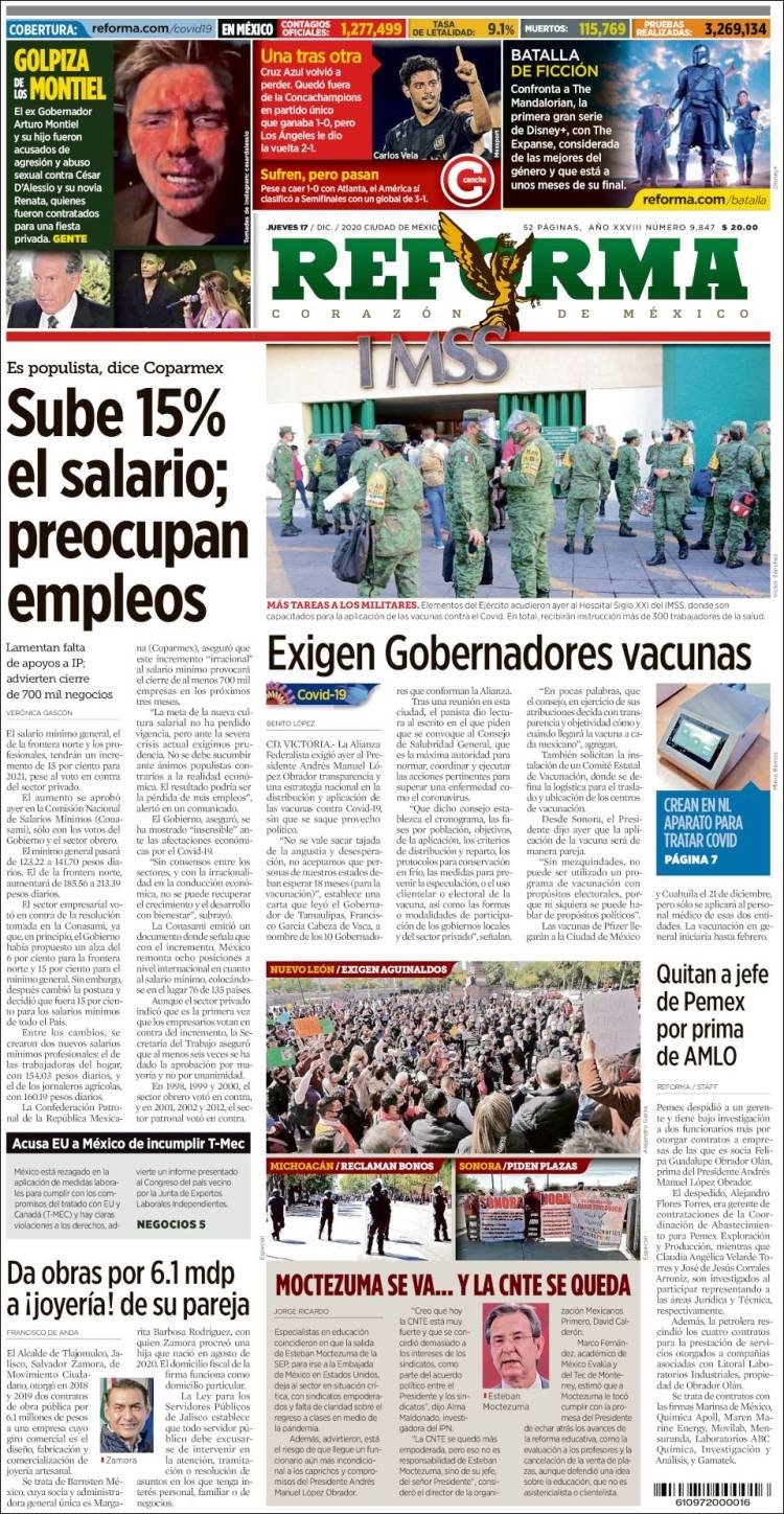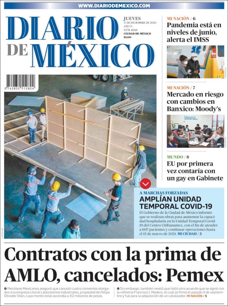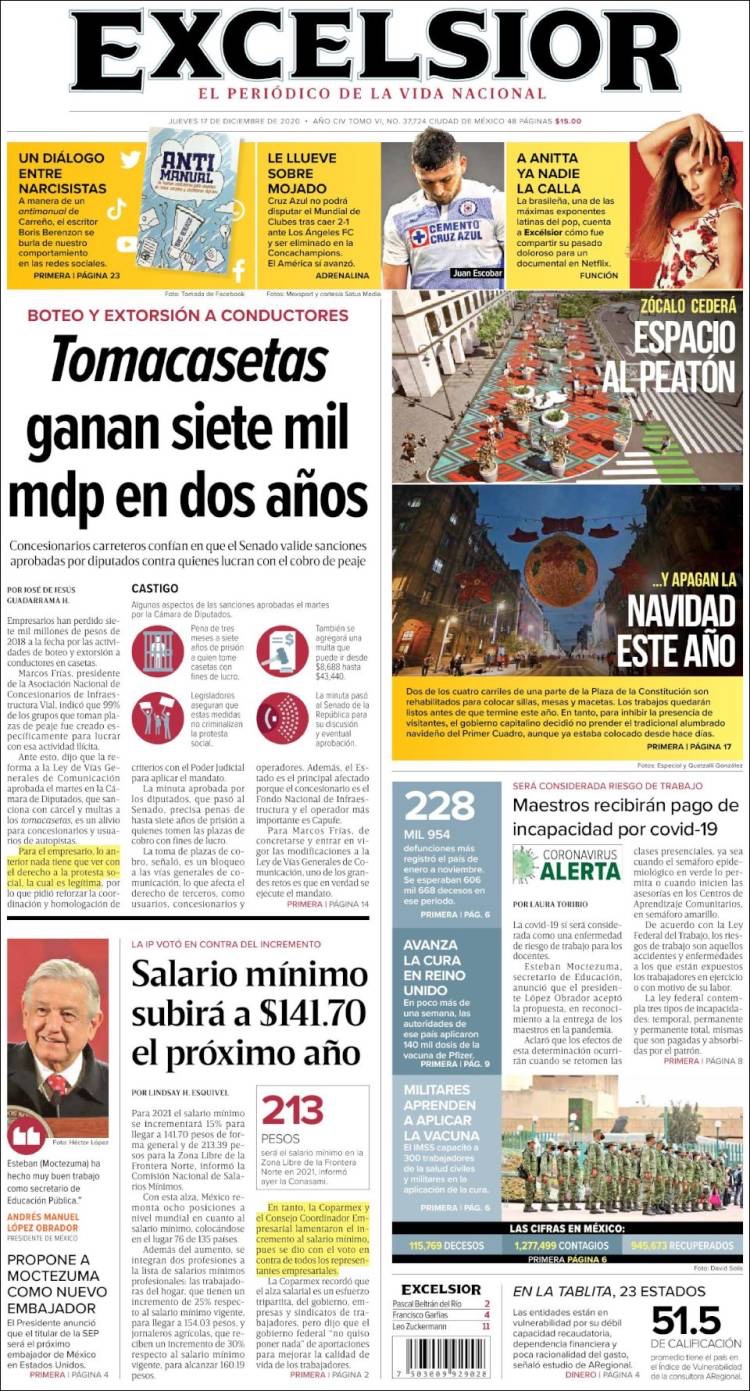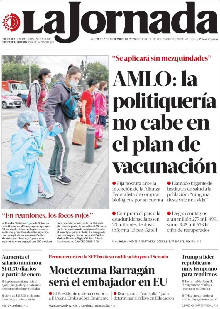PRIMERAS PLANAS EN MEXICO Y EL MUNDO DEL 17 DE DICIEMBRE DE 2020