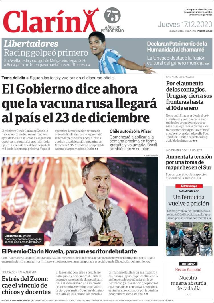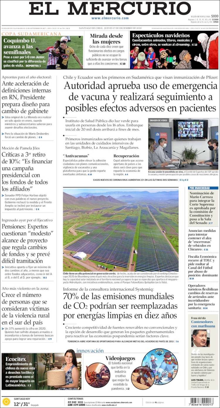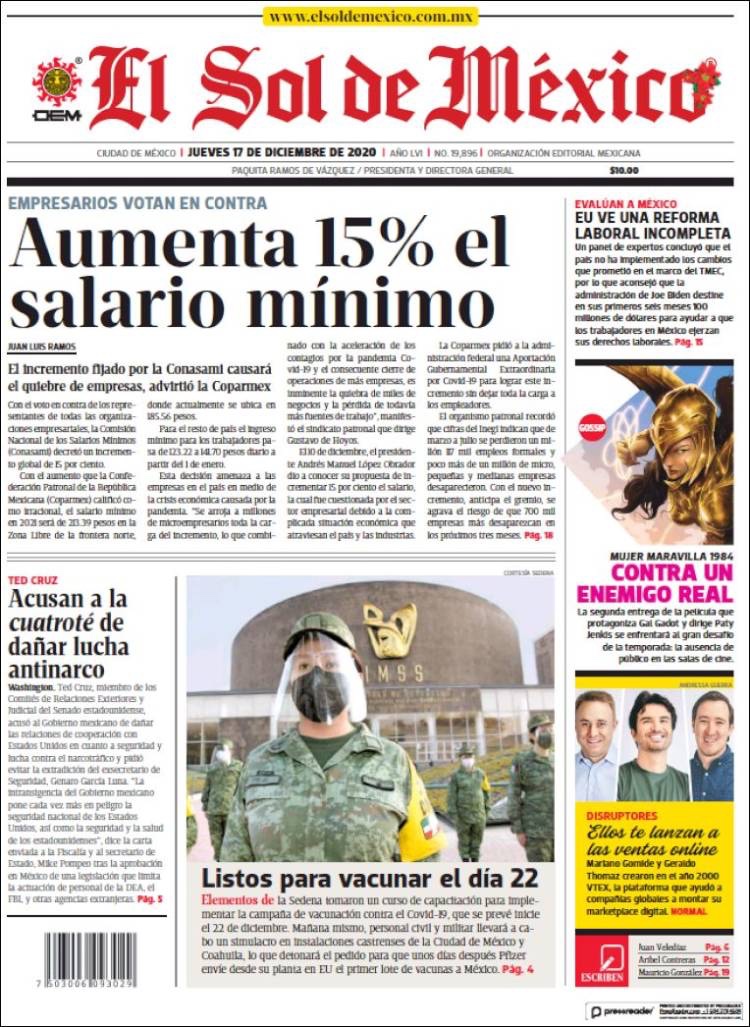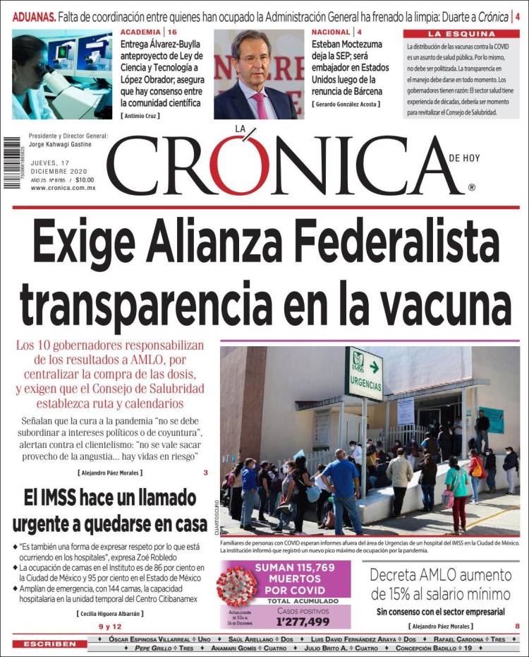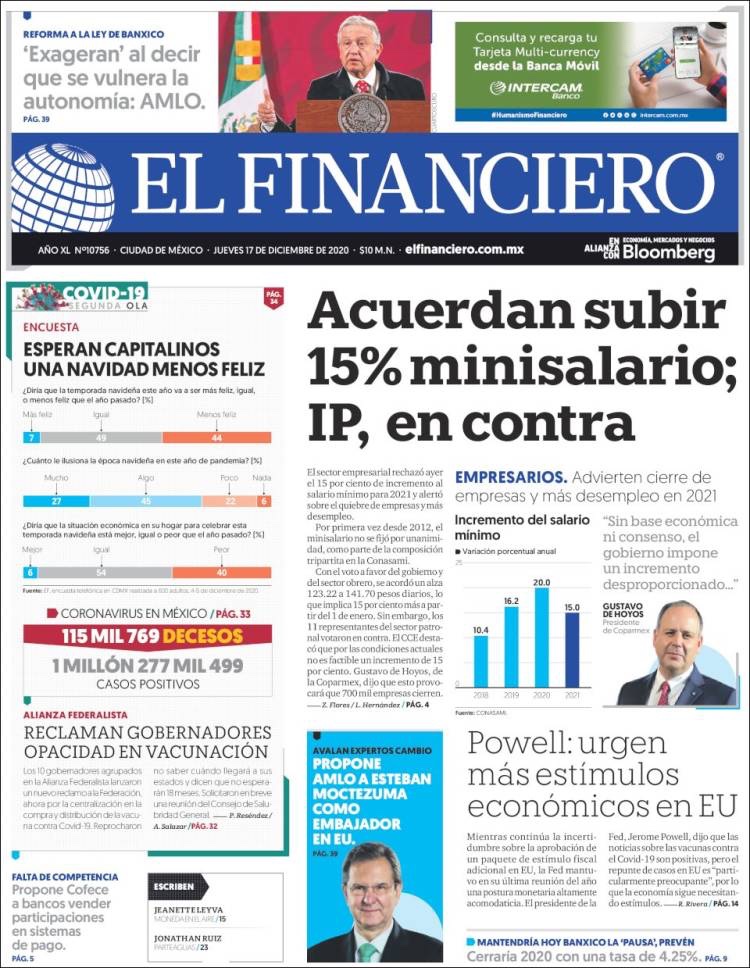 PRIMERAS PLANAS EN MEXICO Y EL MUNDO DEL 17 DE DICIEMBRE DE 2020