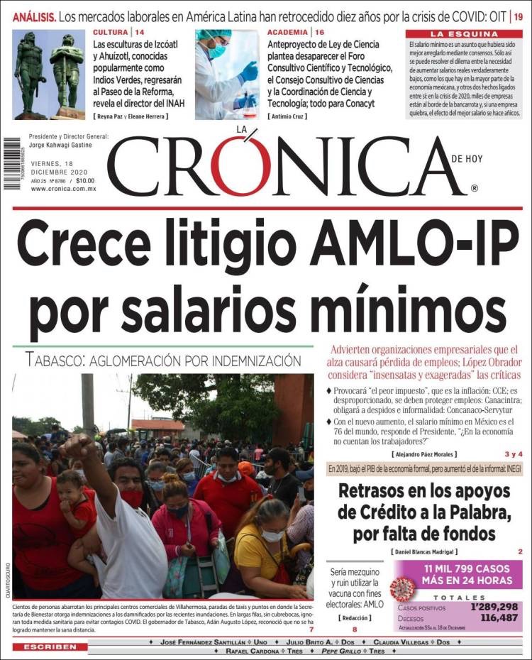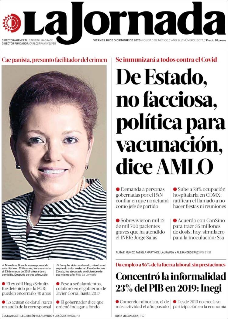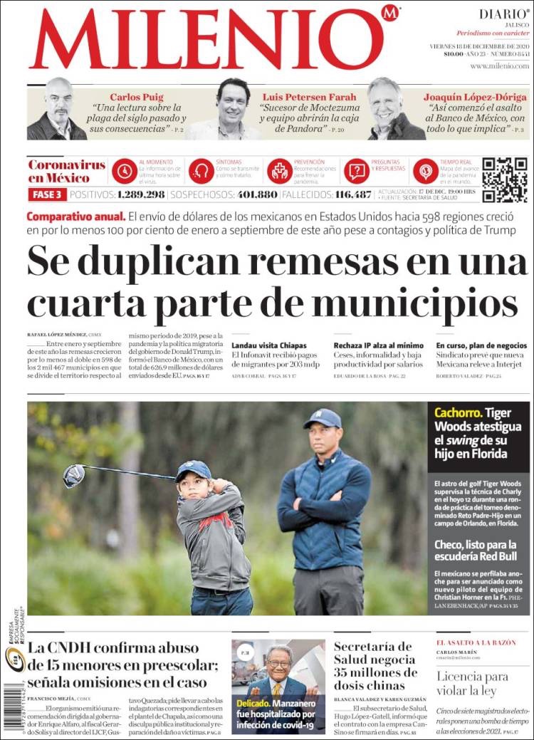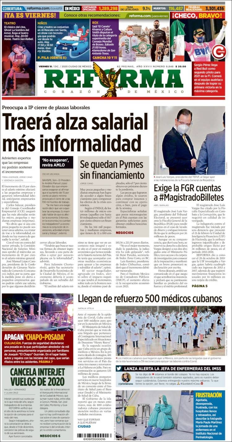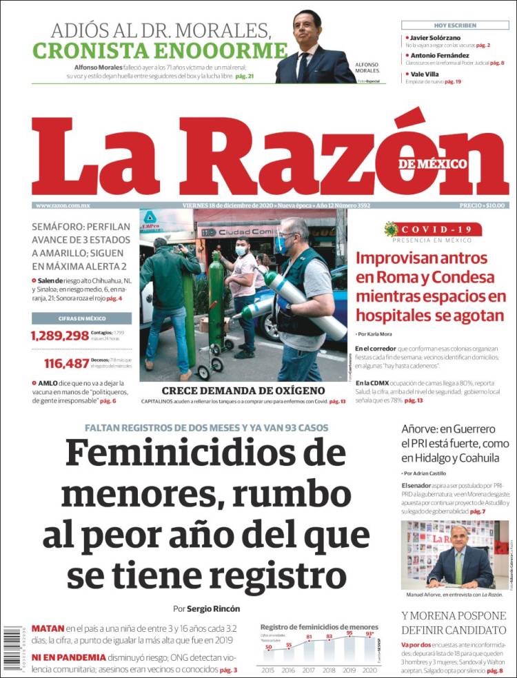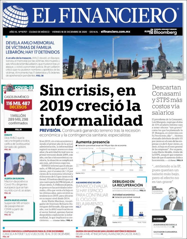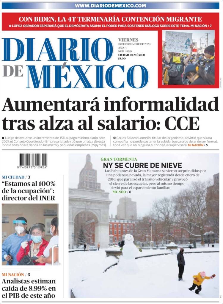 PRIMERAS PLANAS EN MEXICO Y EL MUNDO DEL 18 DE DICIEMBRE DE 2020