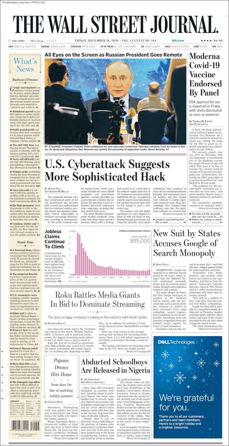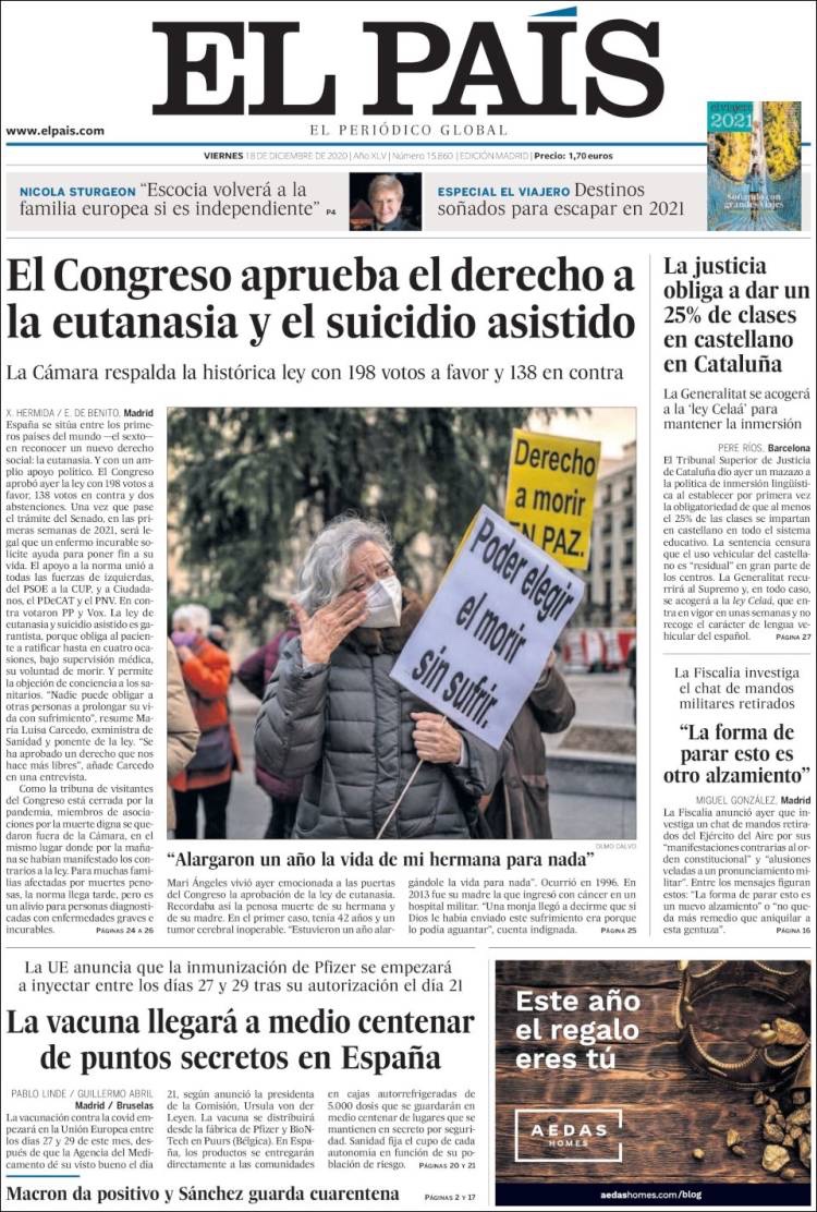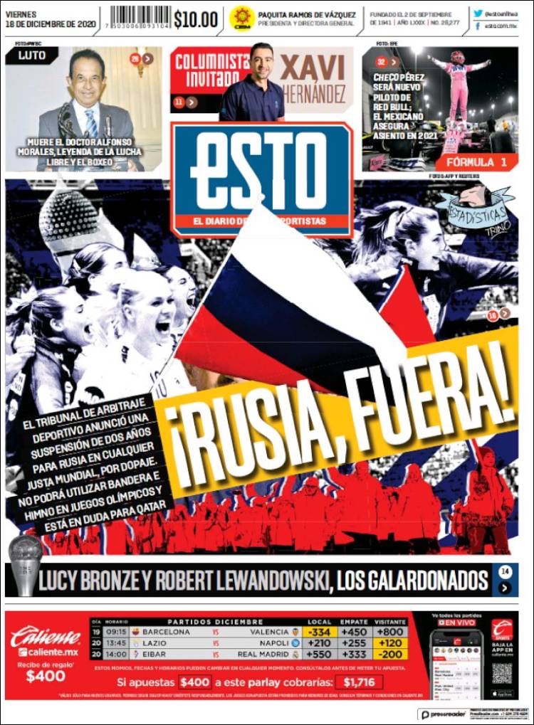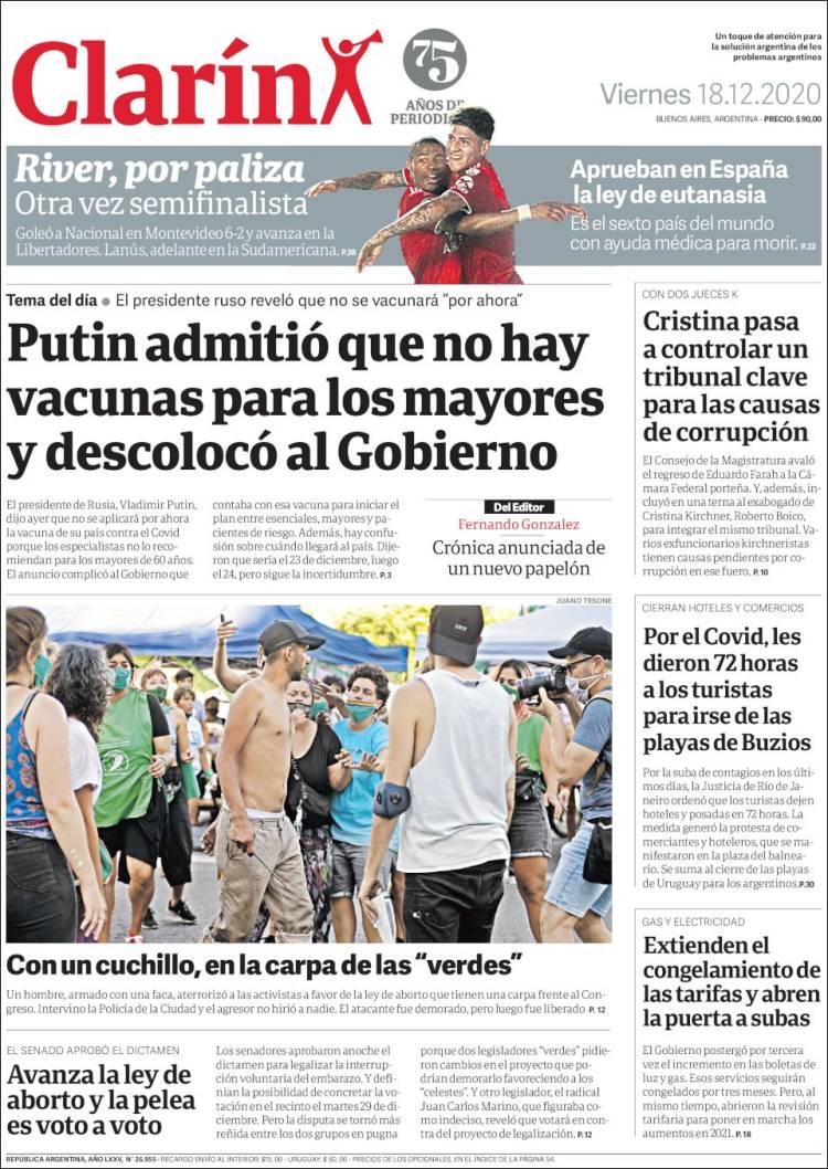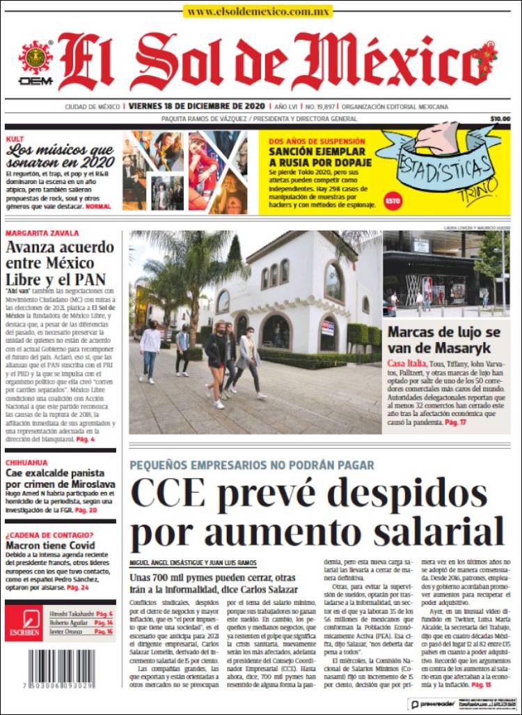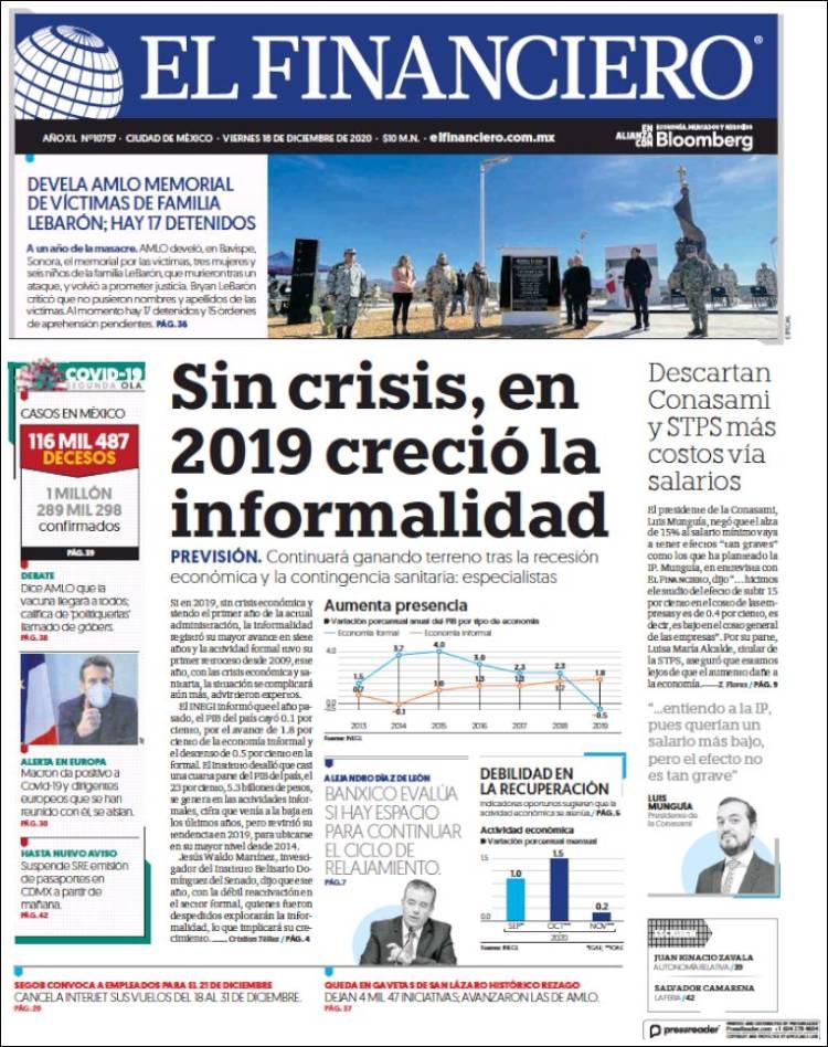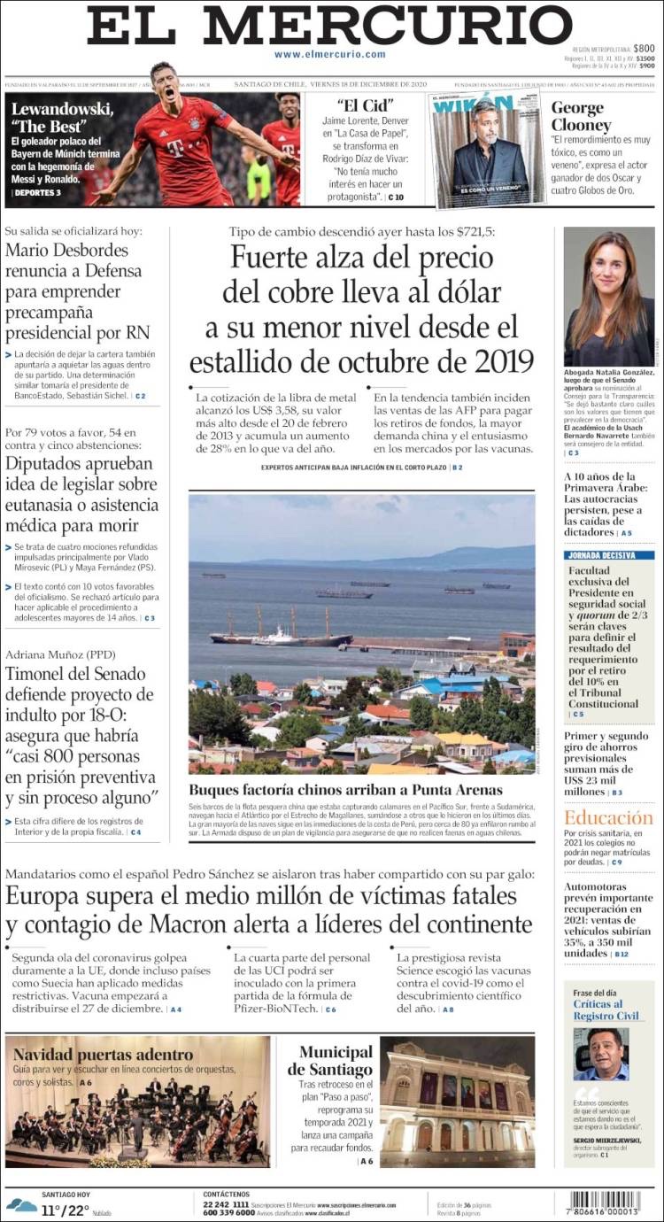 PRIMERAS PLANAS EN MEXICO Y EL MUNDO DEL 18 DE DICIEMBRE DE 2020