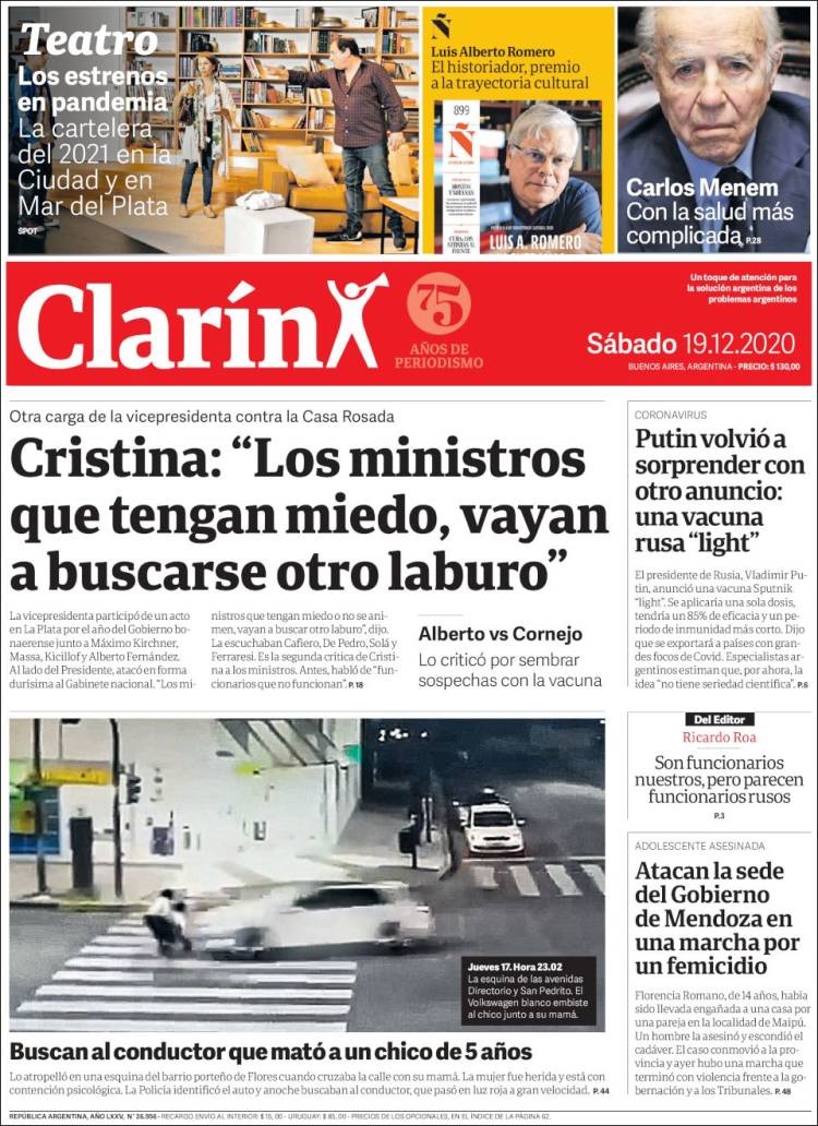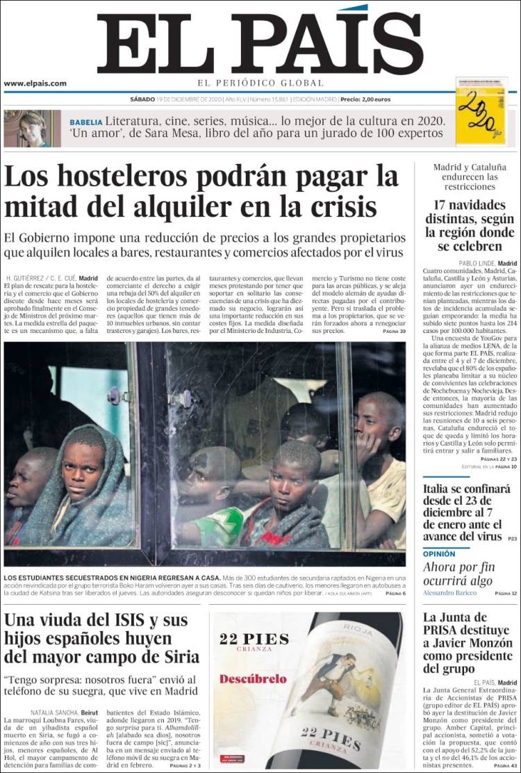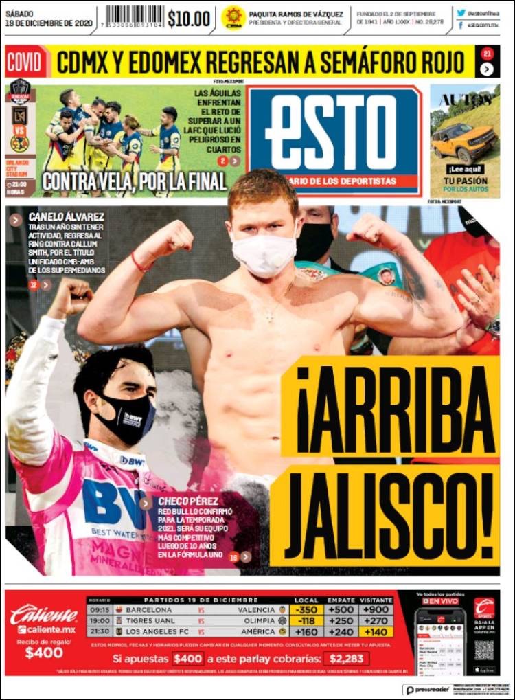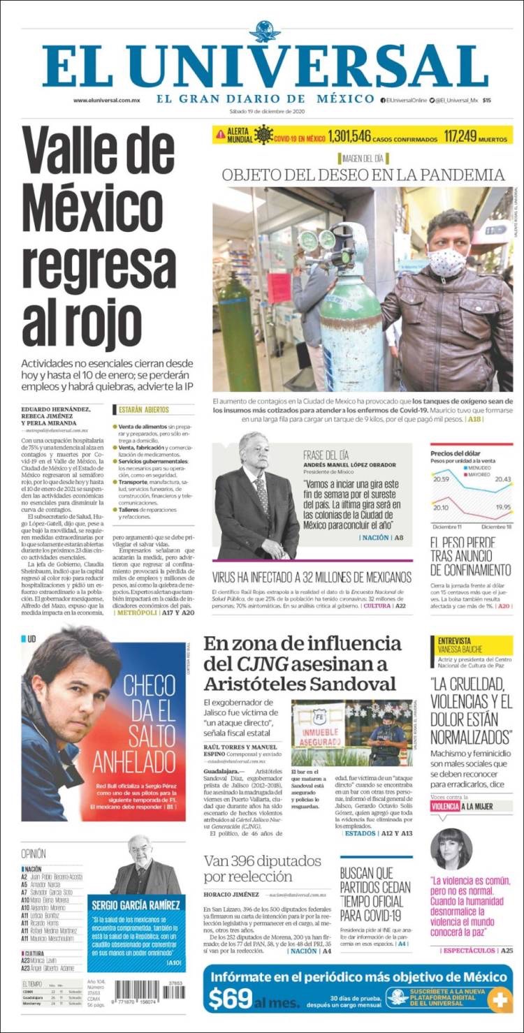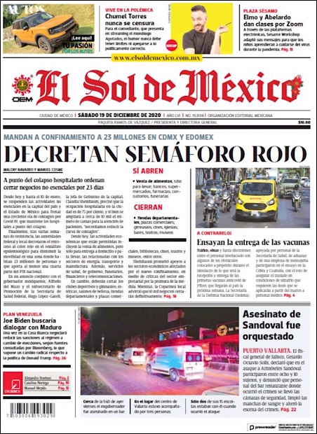 PRIMERAS PLANAS EN MEXICO Y EL MUNDO DEL 19 DE DICIEMBRE DE 2020