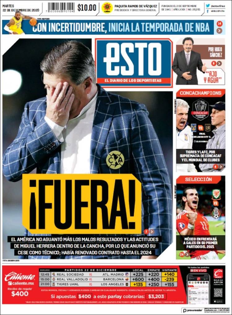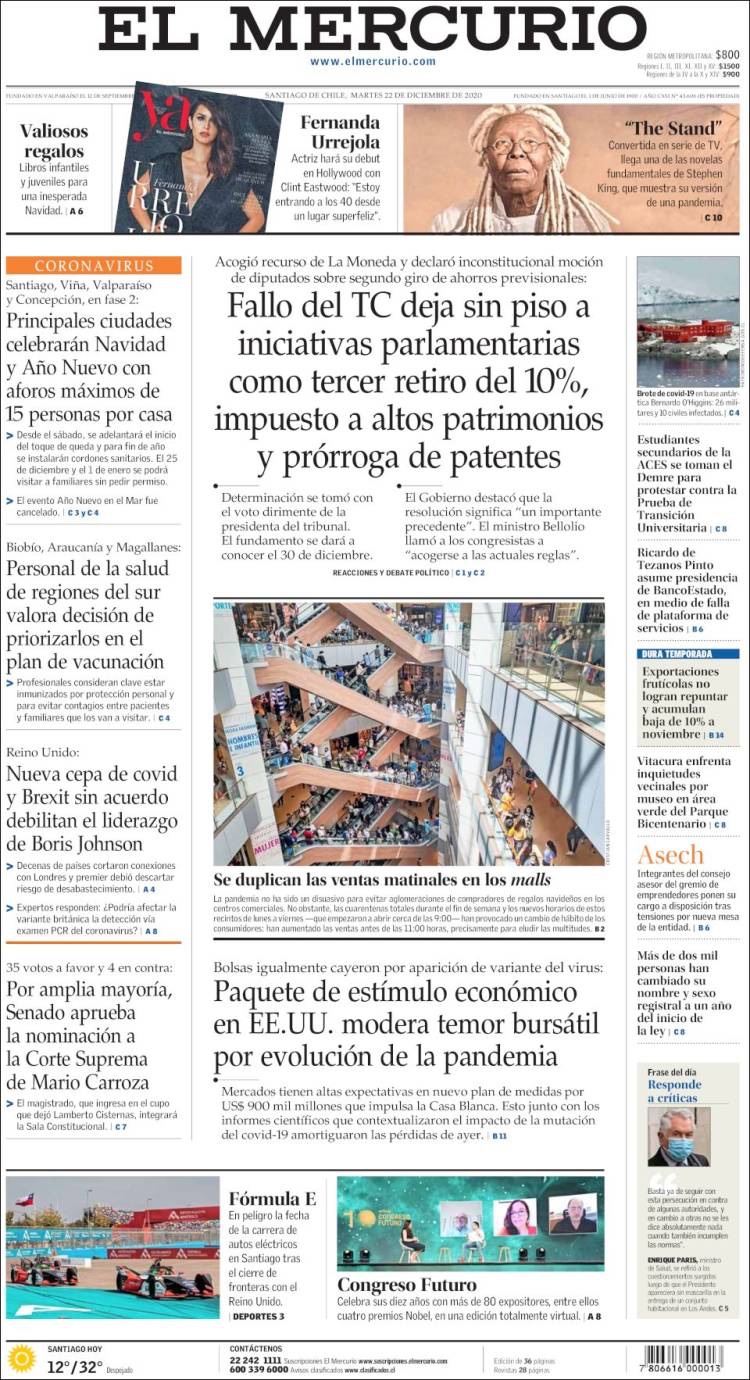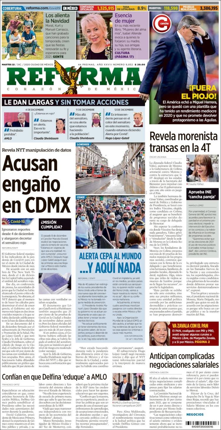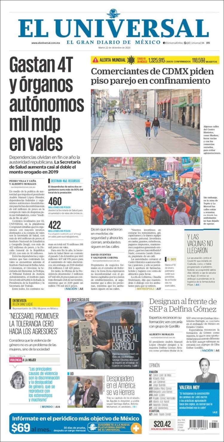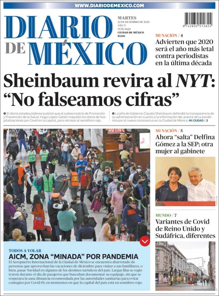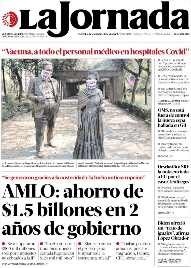 PRIMERAS PLANAS EN MEXUCO Y EL MUNDO DEL 22 DE DICIEMBRE DE 2020
