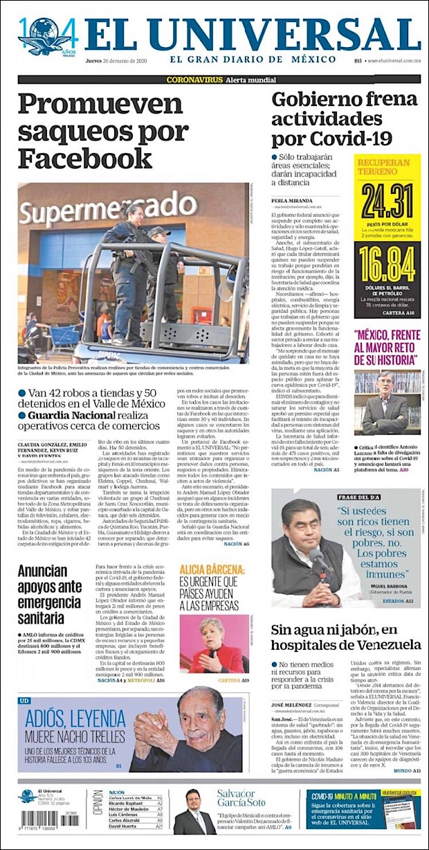 Este fue un día crítico para los países que concentran el mayor número de casos. Por un lado, Estados Unidos rebasó los 100 mil pacientes de coronavirus en su territorio, con Nueva York entre los estados más afectados por la pandemia. Por otro, Italia tuvo hoy su día más mortífero con 919 muertos por el padecimiento en las últimas 24 horas.