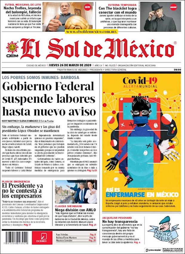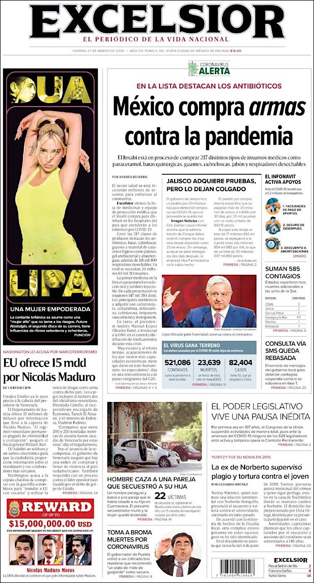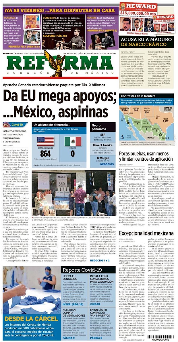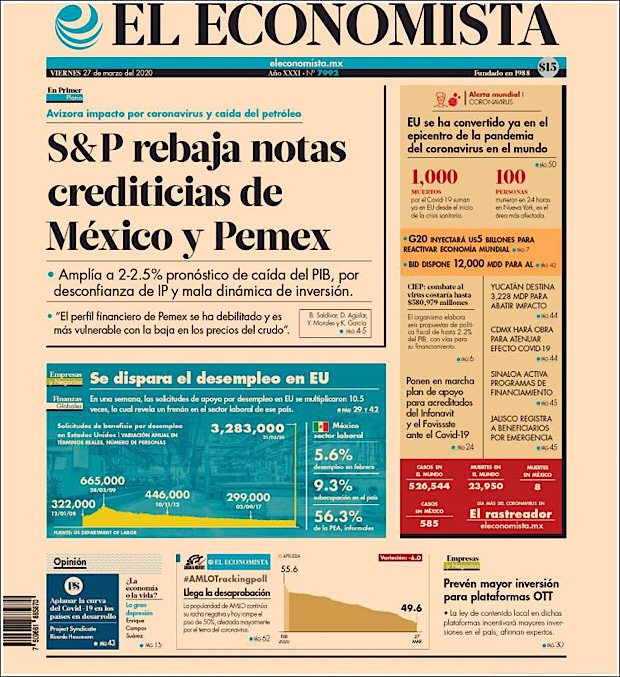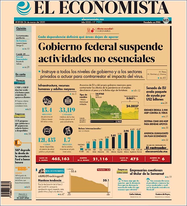 MÉXICO.- La cifra de contagios de coronavirus sigue en aumento, suman los 597 mil 304 casos confirmados en todo el mundo, de los cuales, cerca de una quinta parte fueron registrados en Estados Unidos, el nuevo foco rojo de la pandemia.