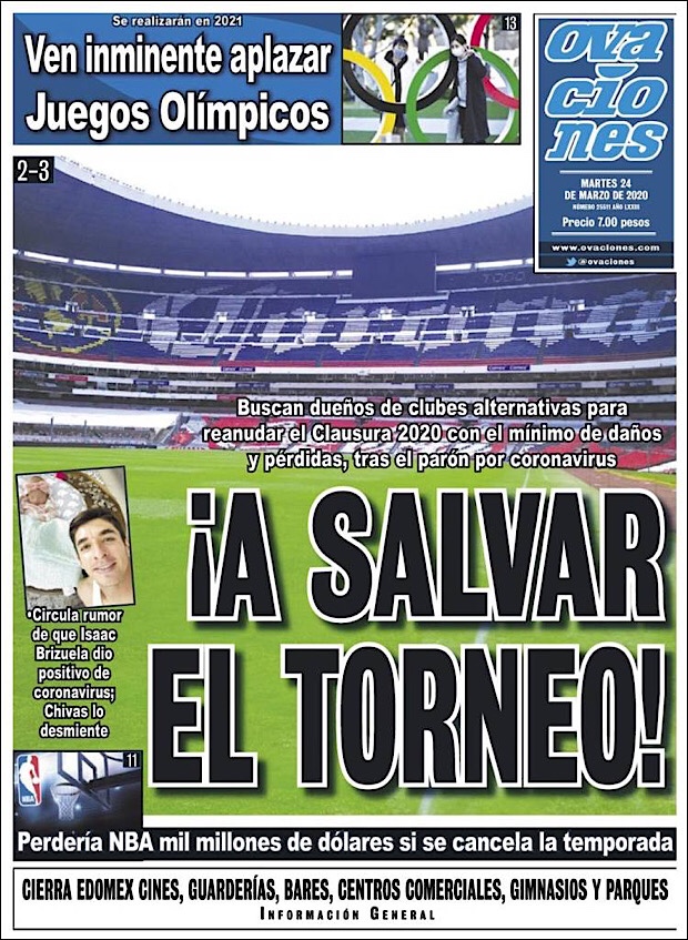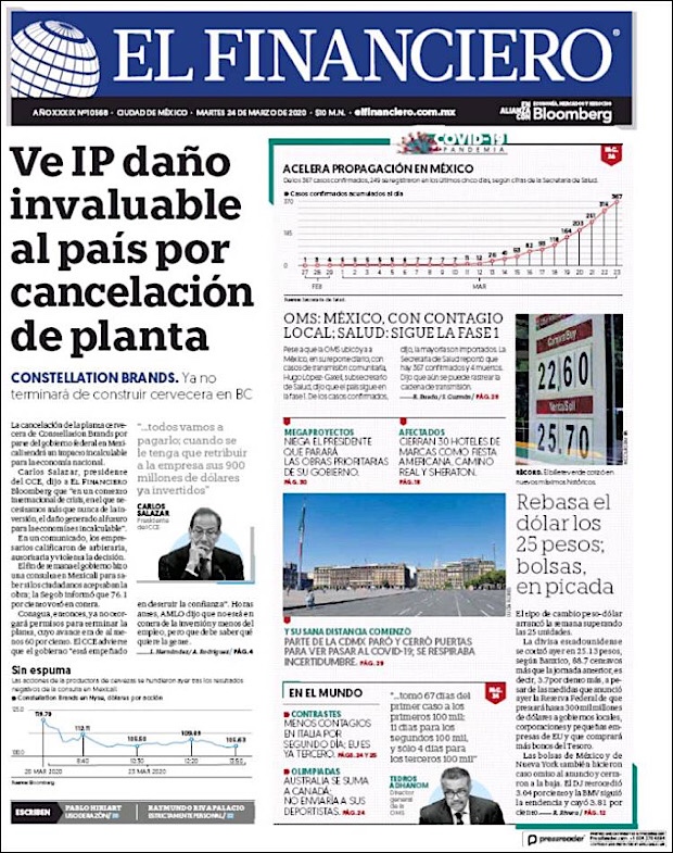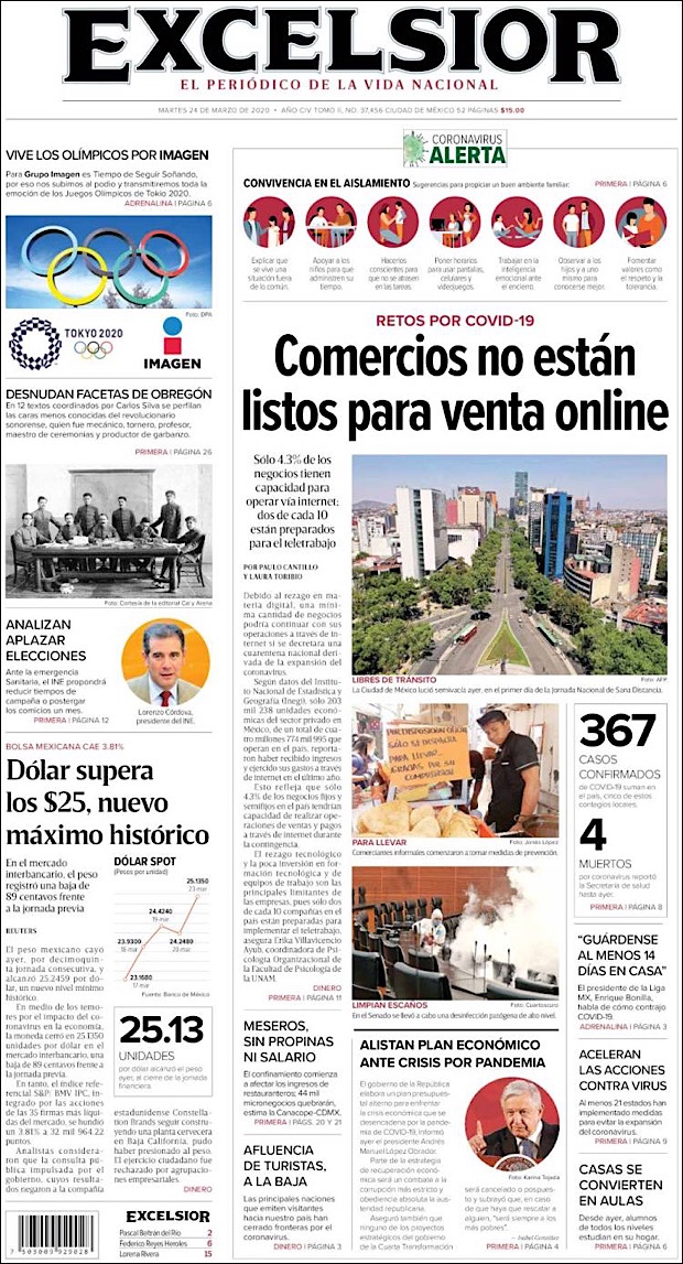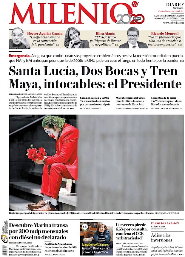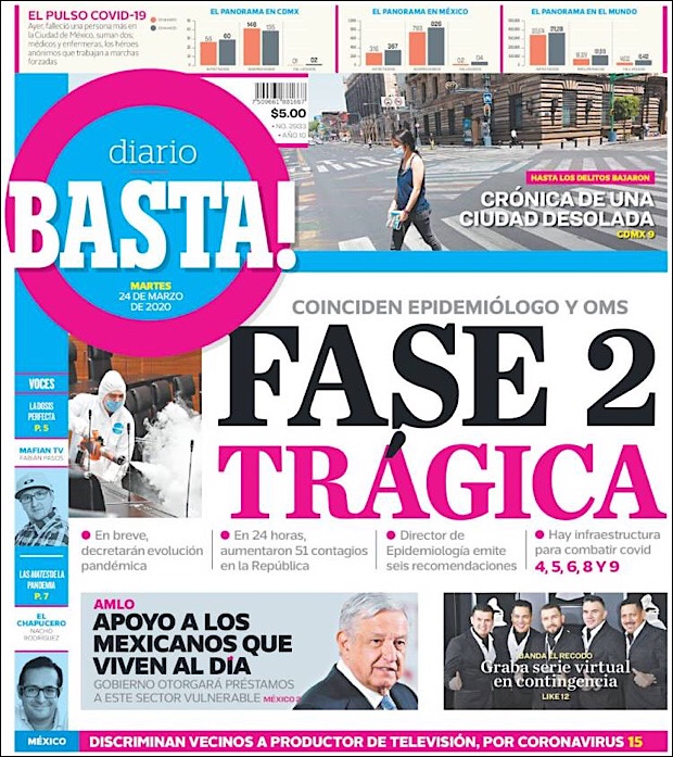 PRIMERAS PLANAS EN MEXICO DEL MARTES 24 DE MARZO DE 2020