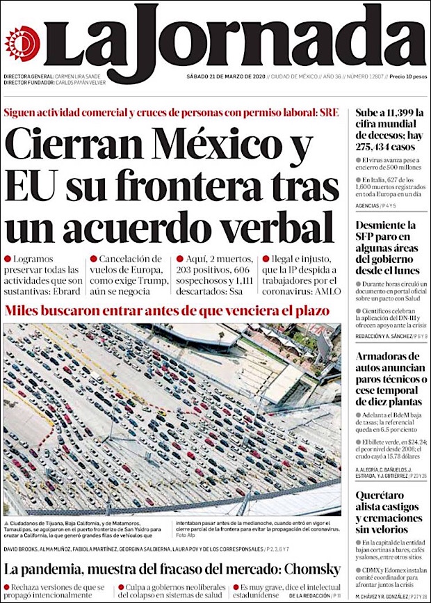 Los Angeles Times también criticó en su diario la respuesta que ha tenido el gobierno mexicano al minimizar el tema del coronavirus. Y es que mientras países como Estados Unidos, Canadá, entre otros, han cerrado fronteras. México todavía no lo hace, además de que «el presidente se aferra a objetos religiosos de la buena suerte como amuleto para la enfermedad», señalan en tono de burla.