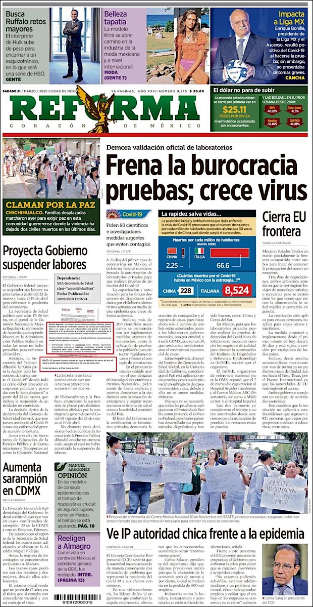 Forbes también se unió a las críticas hacia México en uno de sus artículos, señalando que a pesar de que López Obrador aseguró que tienen los recursos para combatir el COVID-19 «no toma en cuenta que se pueden saturar los hospitales» tal como ocurrió en Italia.