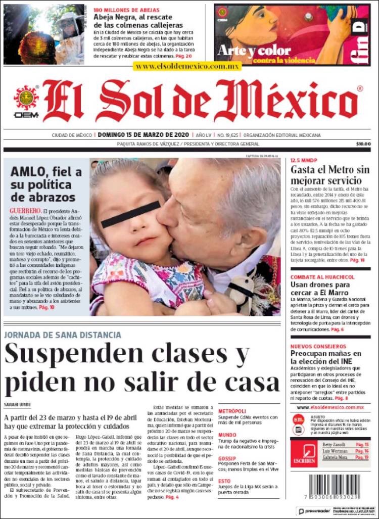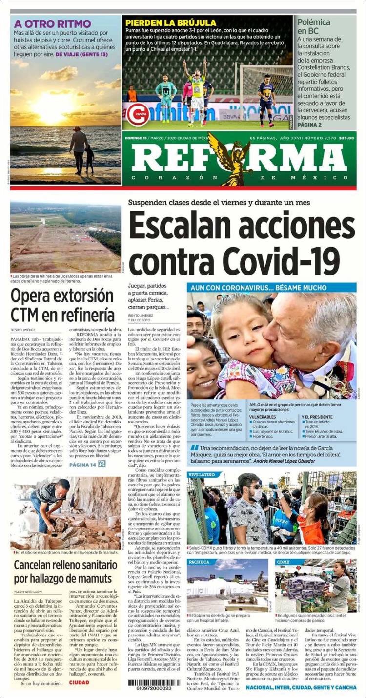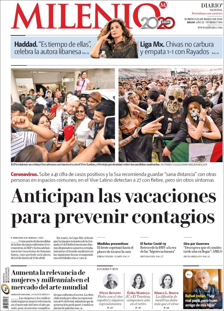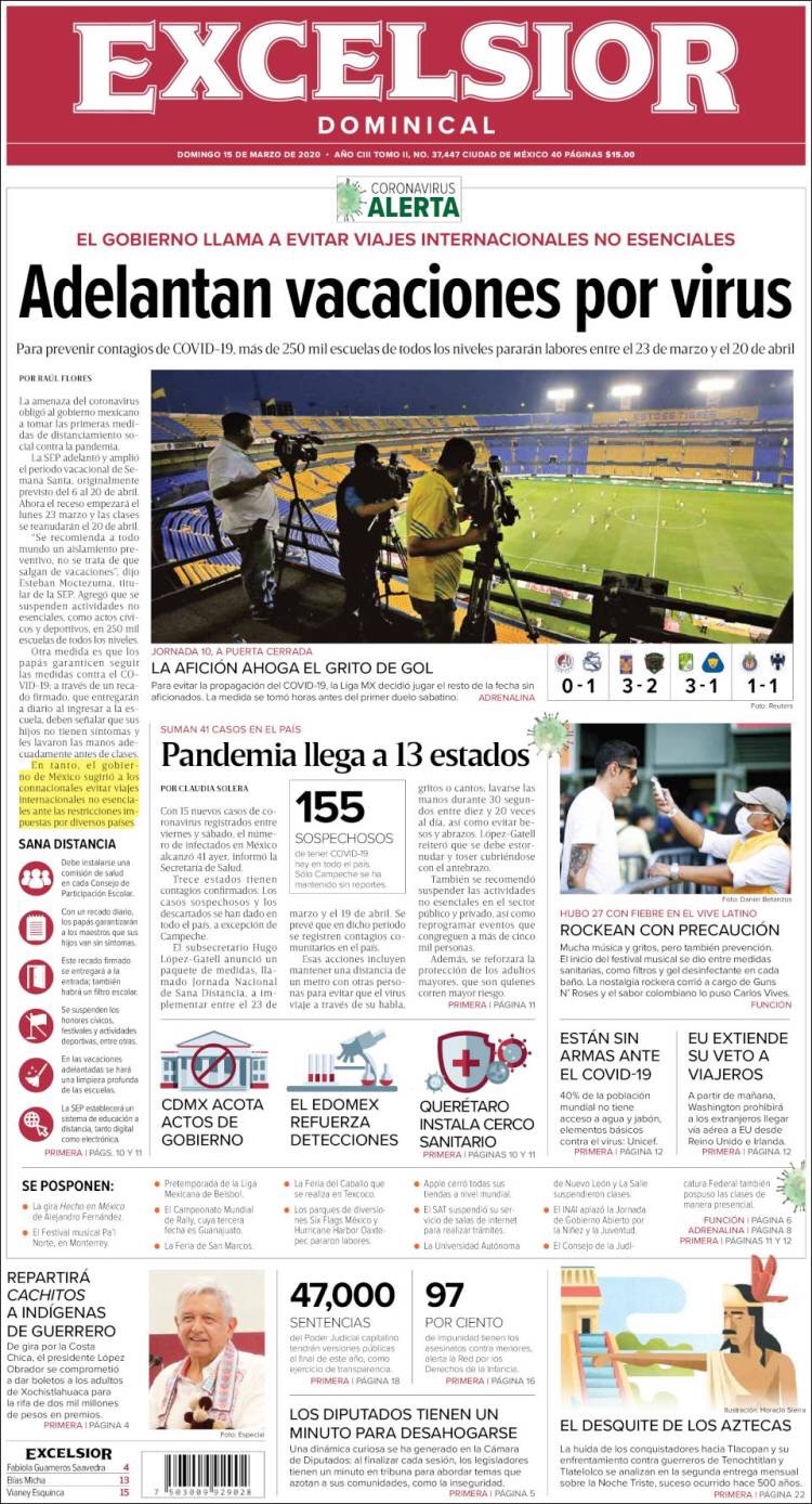PRIMERAS PLANAS EN MEXICO DEL 15 de MARZO DE 2020