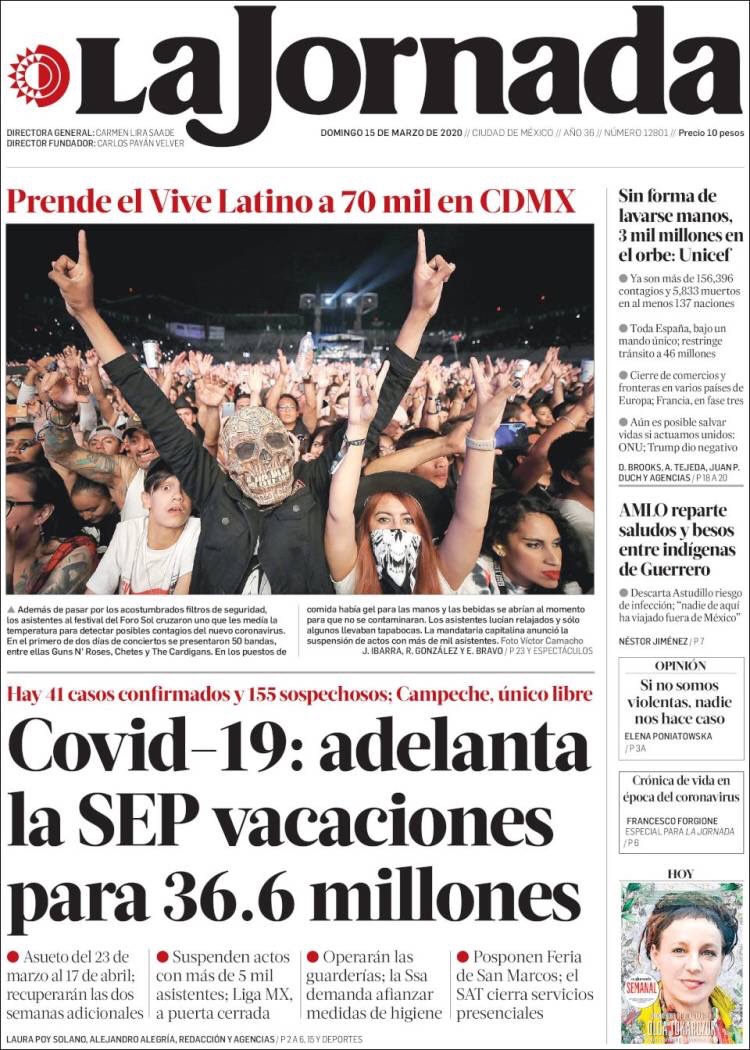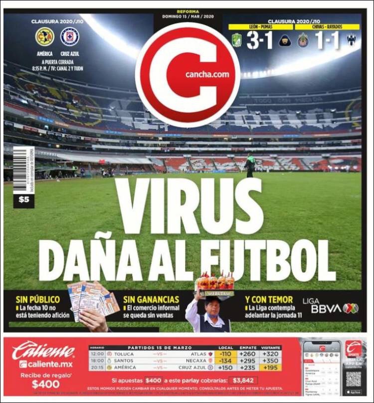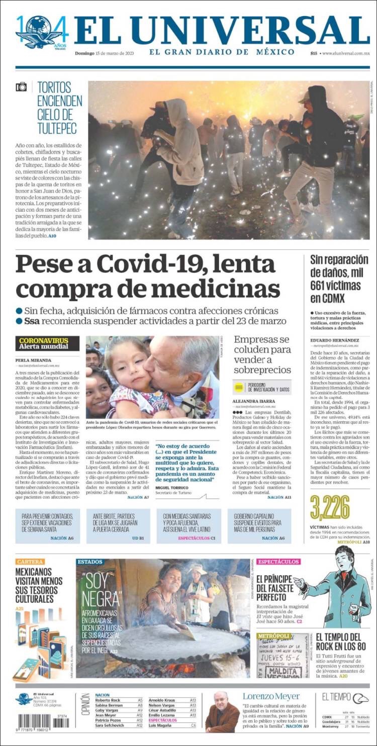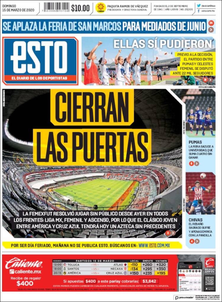 PRIMERAS PLANAS EN MEXICO DEL 15 de MARZO DE 2020