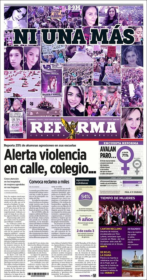 El pasado domingo 8 de marzo, Día Internacional de la Mujer, medios reportaron el asesinato de cinco mujeres en estados como Guanajuato, Coahuila, Veracruz y Quintana Roo.