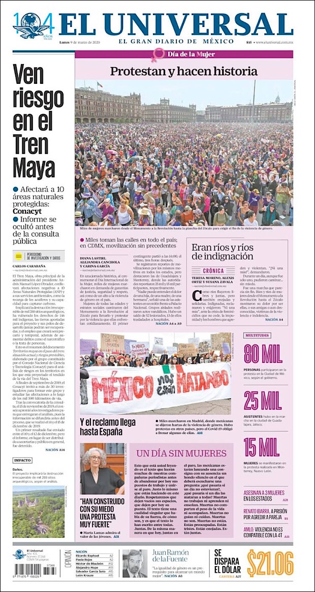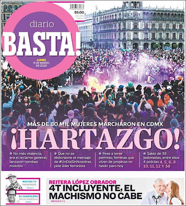 MÉXICO.- El presidente Andrés Manuel López Obrador (AMLO) informó que el 9 de marzo, día en que se llevó a cabo el paro nacional de mujeres, fue uno con una baja en la violencia en general, al registrarse una disminución en los homicidios.