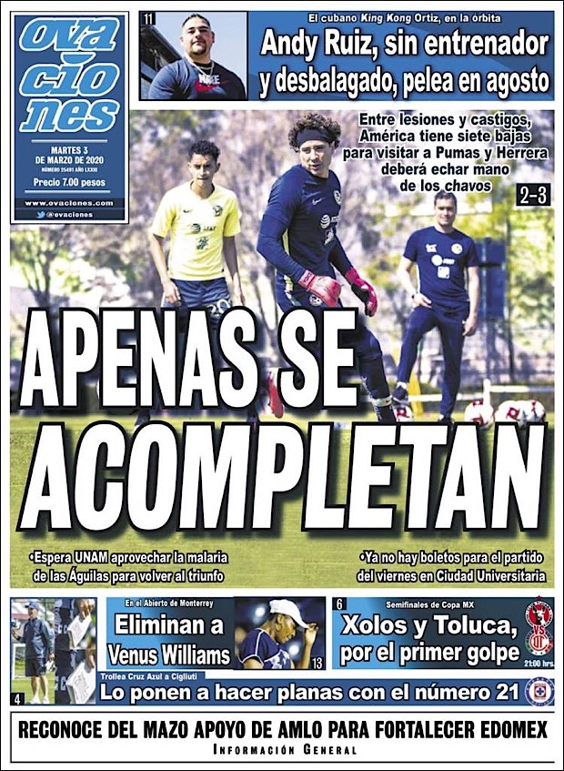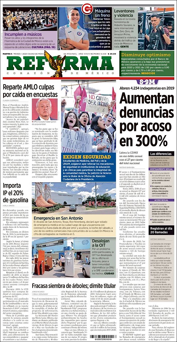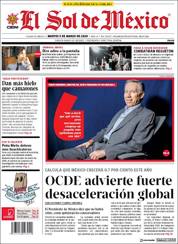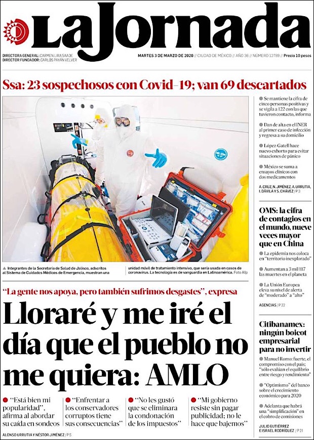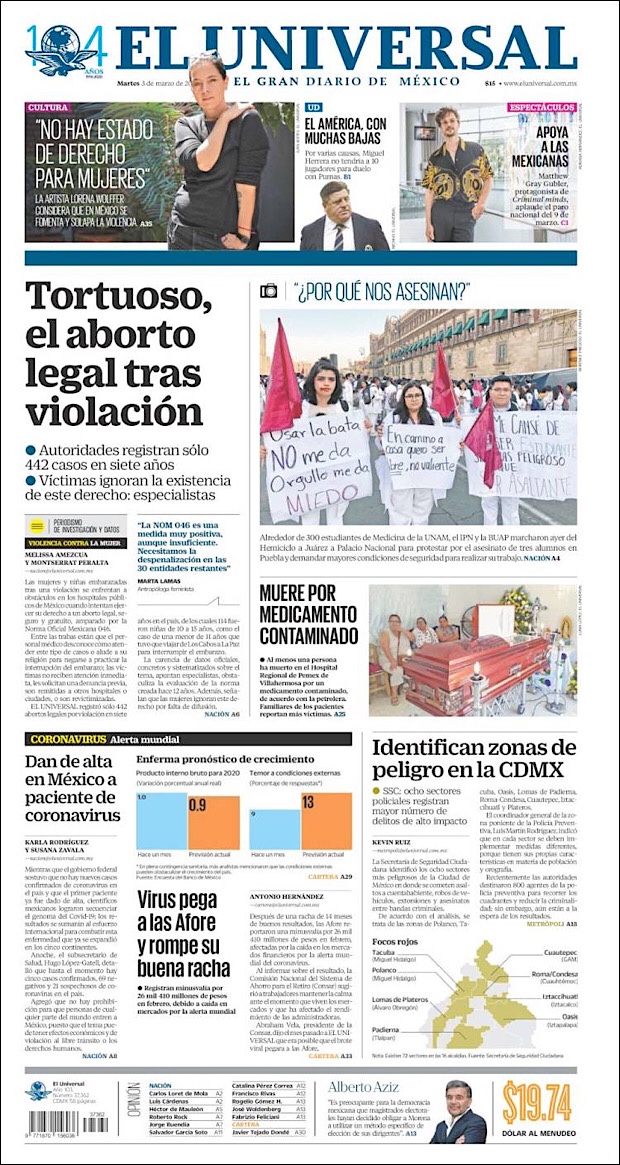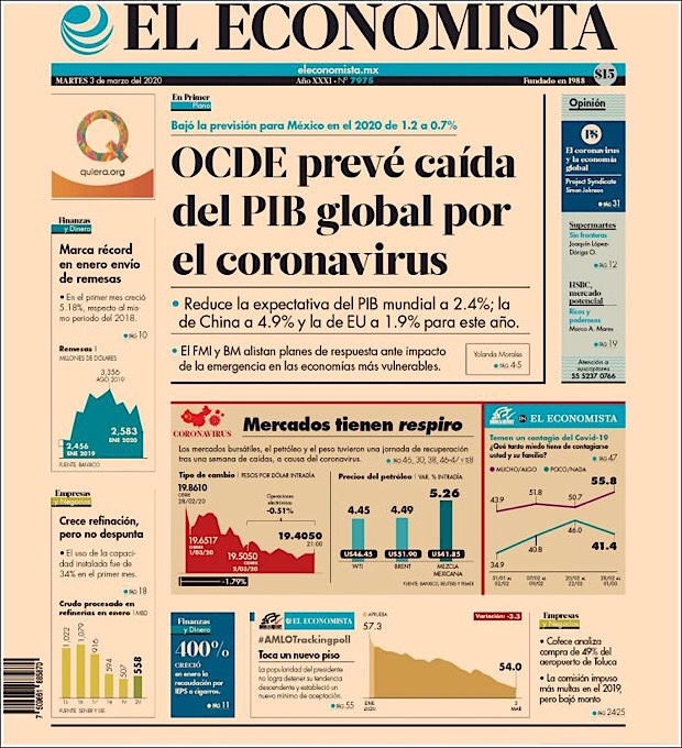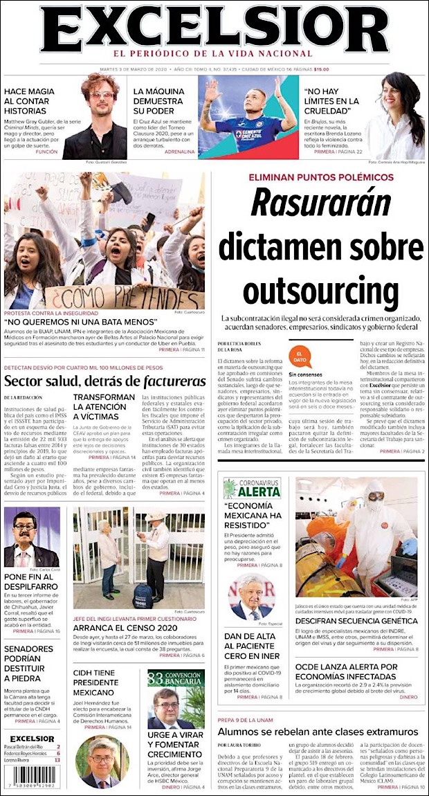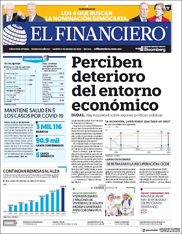 PRIMERAS PLANAS EN MEXICO DEL 2 DE MARZO DE 2020